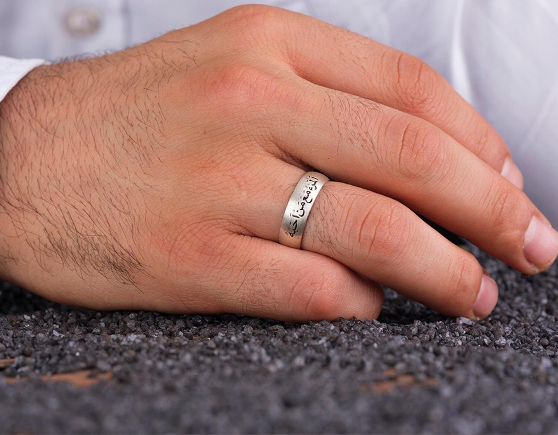Handmade Sterling Silver Wedding Ring Set – Personalized Arabic Inscription – His & Hers Engagement Rings
