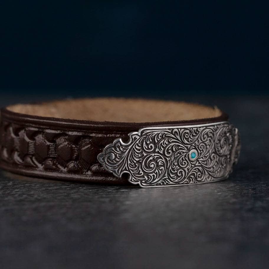 Leather and Silver combination men's bracelet, name logo letter can be written on silver, or zircon stone can be added, please feel free to contact me before ordering, all customers are brothers