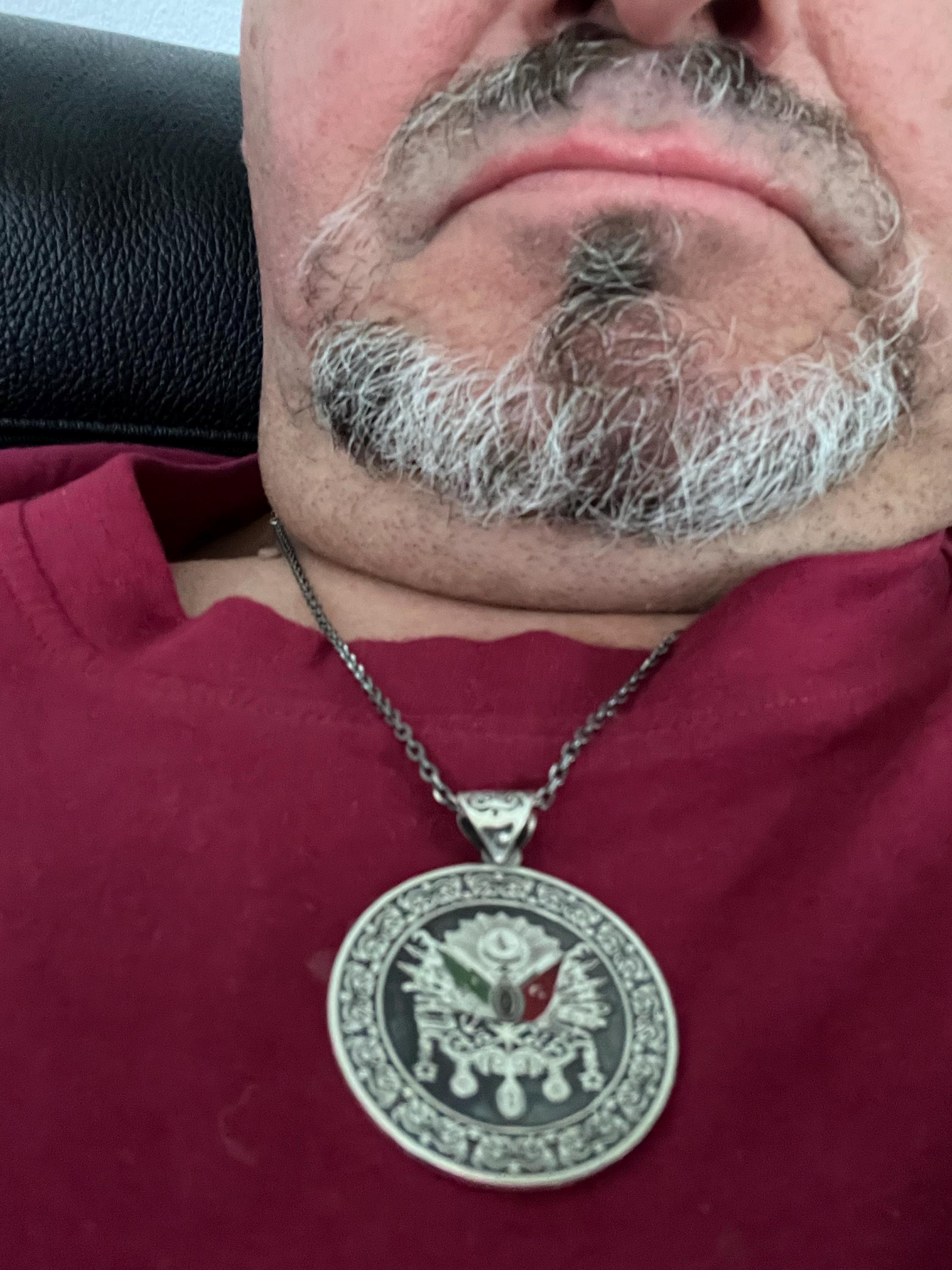 Our product is made of 925 sterling silver and the Ottoman Flag is engraved in the middle and decorated with engravings around it. coin diameter 4 cm, Chain length 60 cm