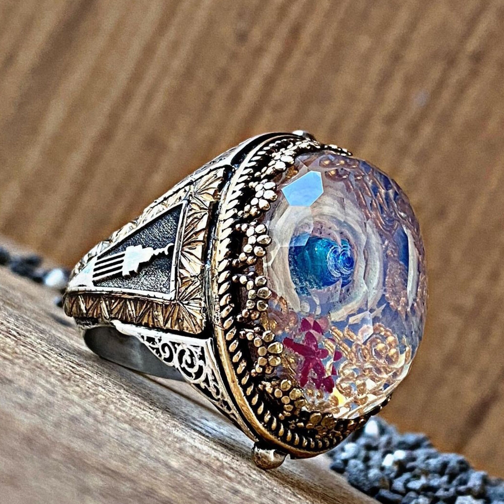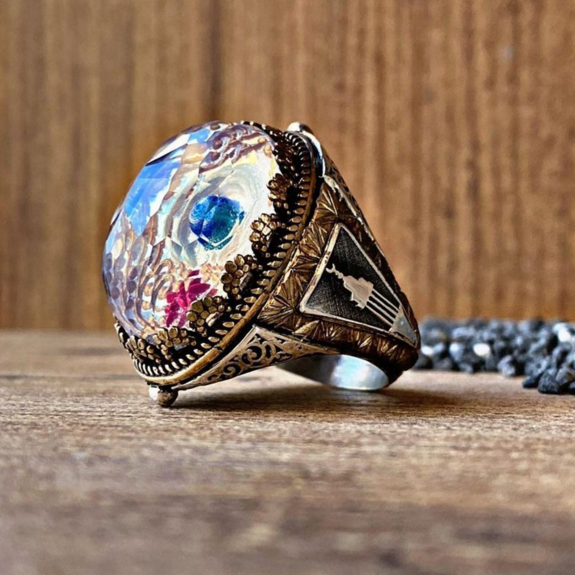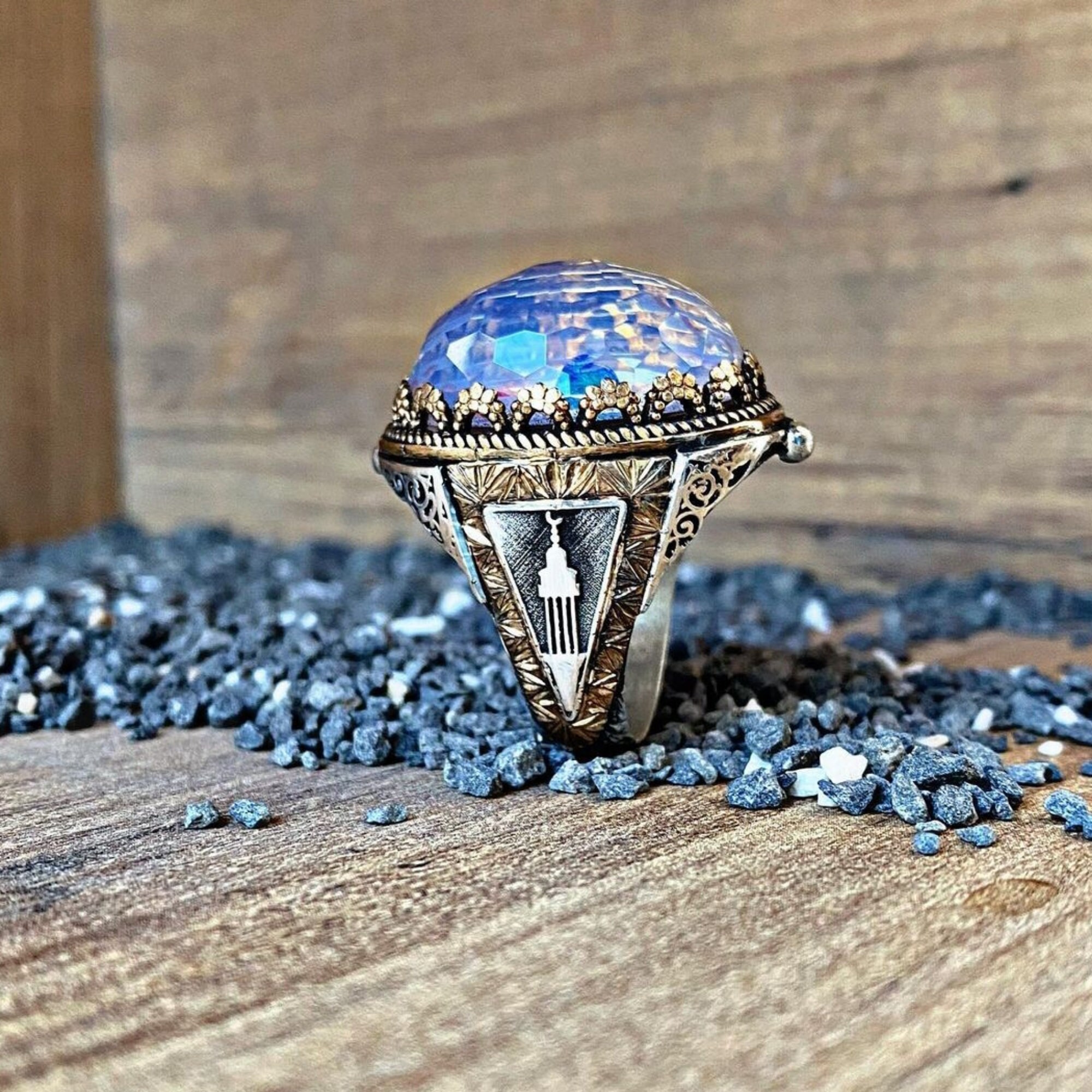 A Crescent star and world figure are engraved in the moonstone, negative carving, minaret is engraved on the side parts...