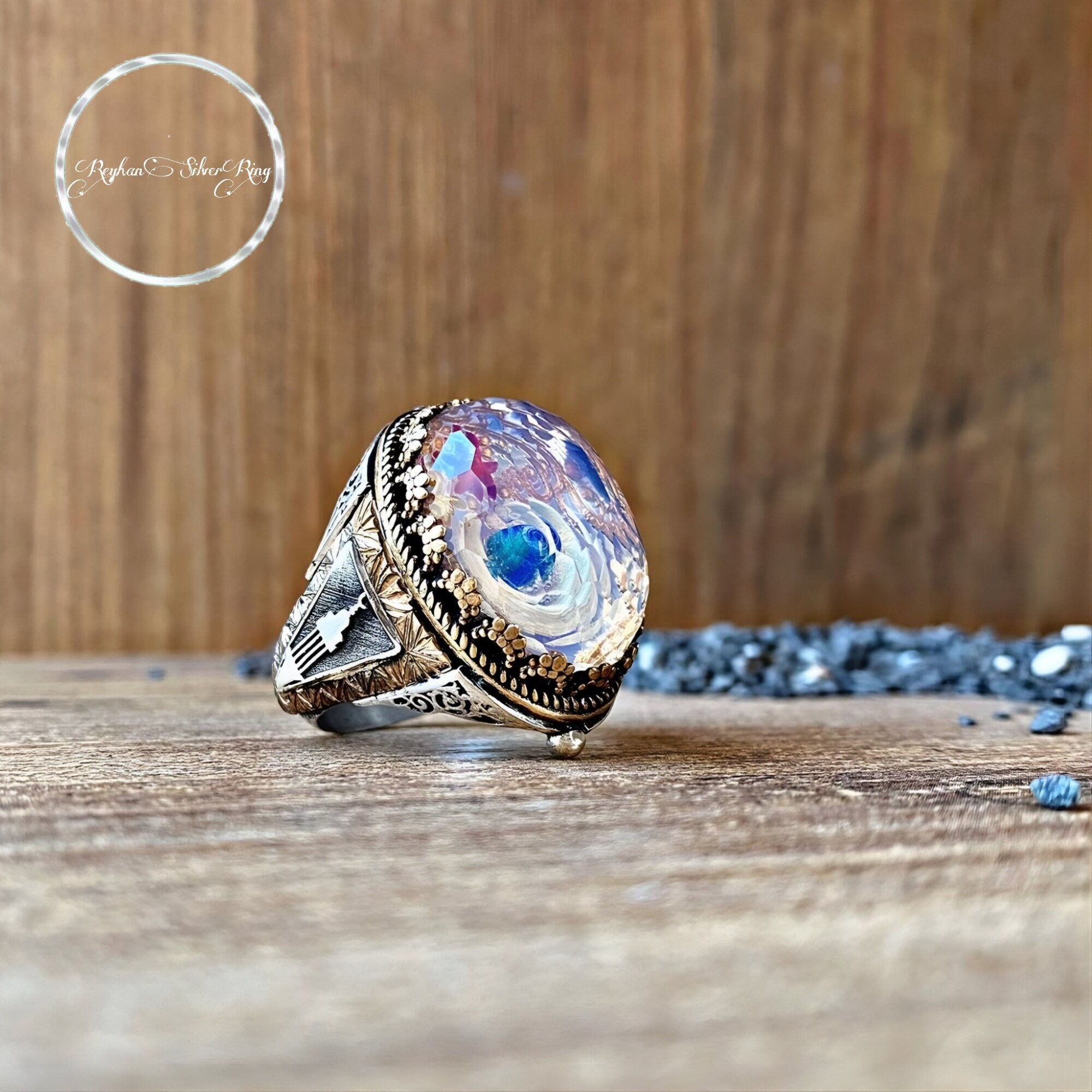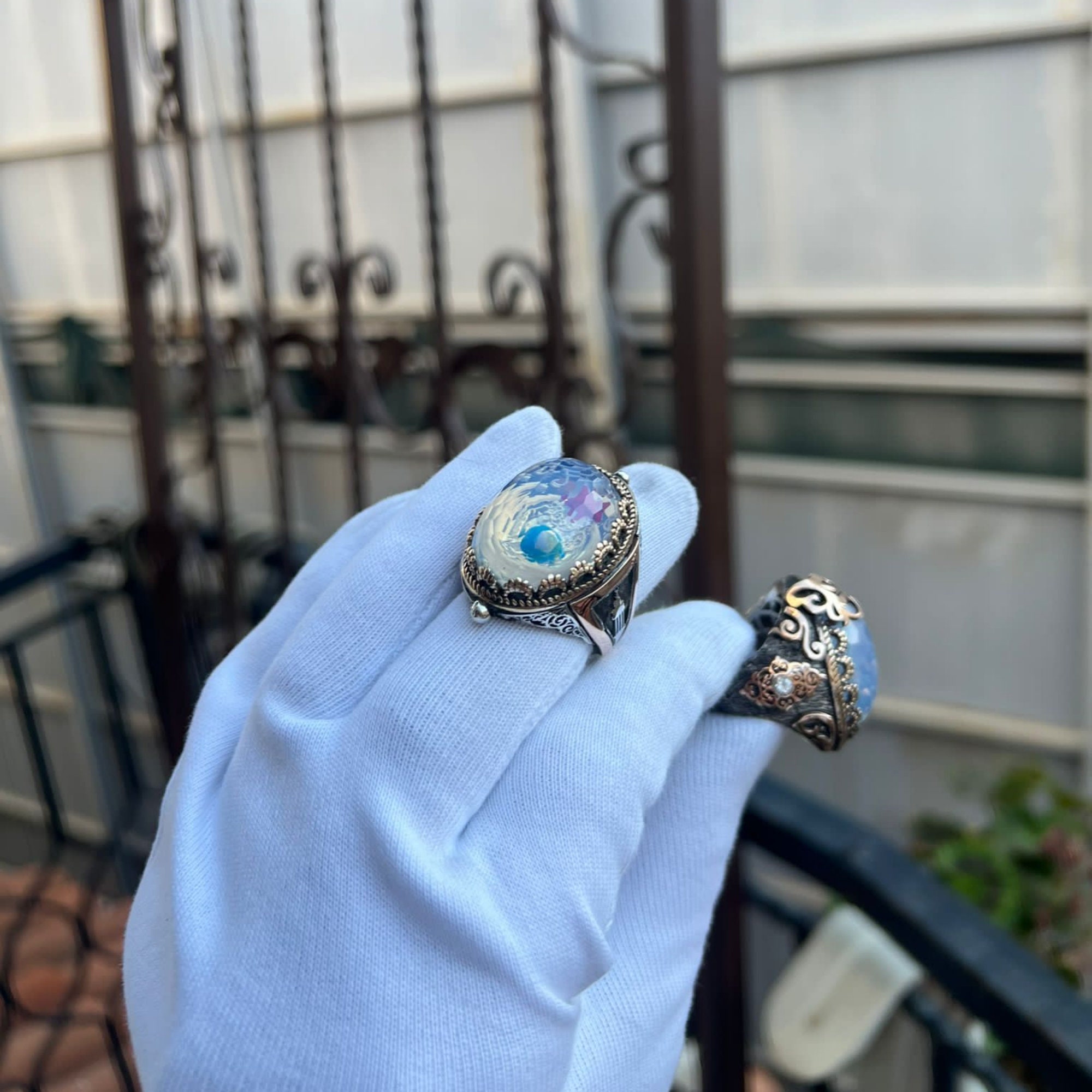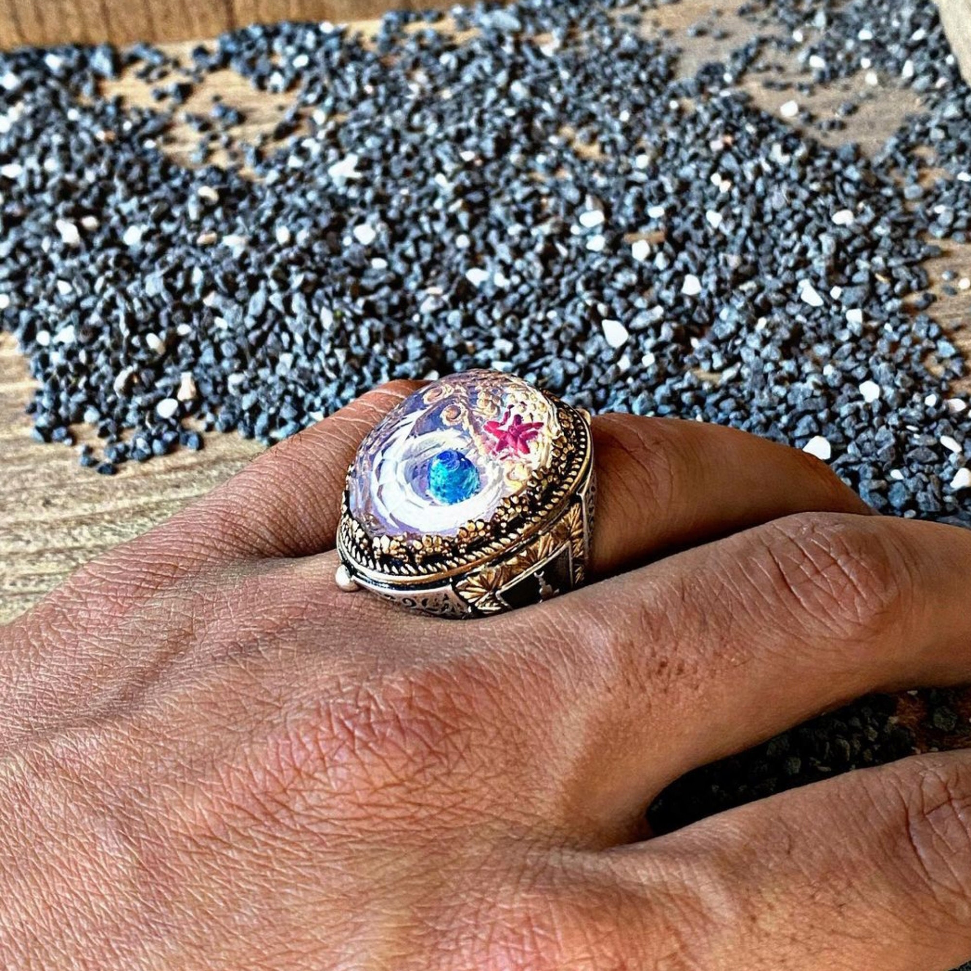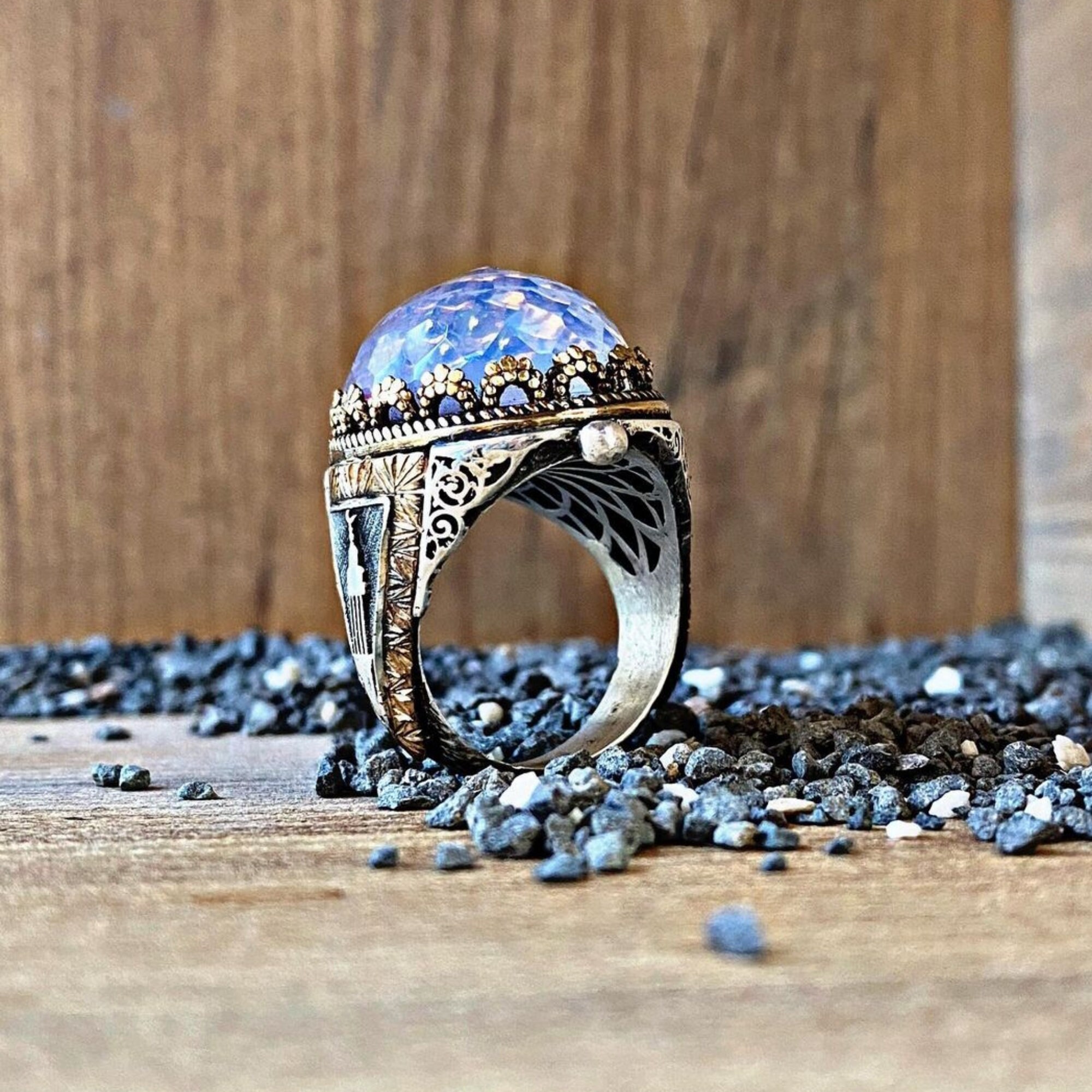 A Crescent star and world figure are engraved in the moonstone, negative carving, minaret is engraved on the side parts...