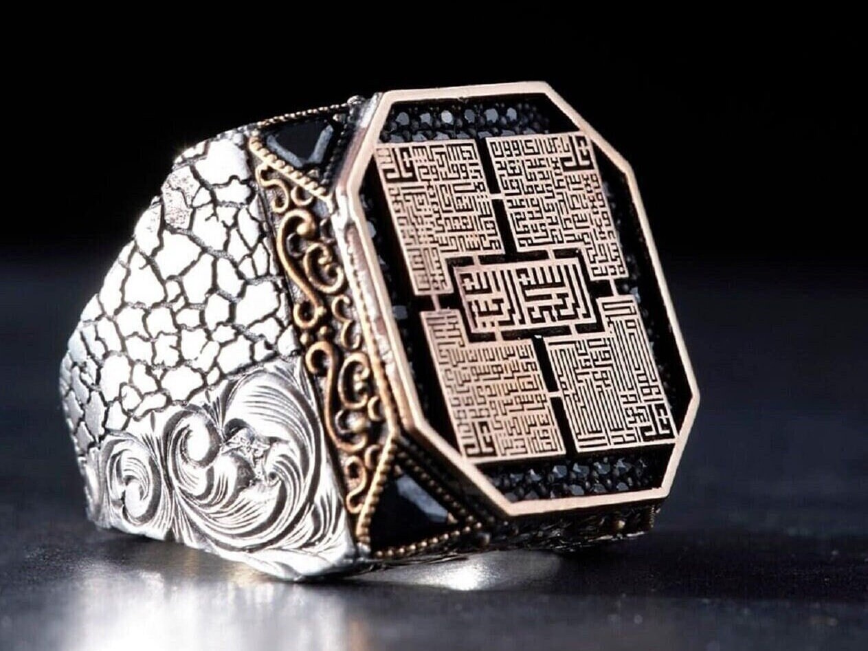 NAS FELAK IHLAS KAFIRUN KUFI CALLIGRAPHY SILVER MEN'S RING