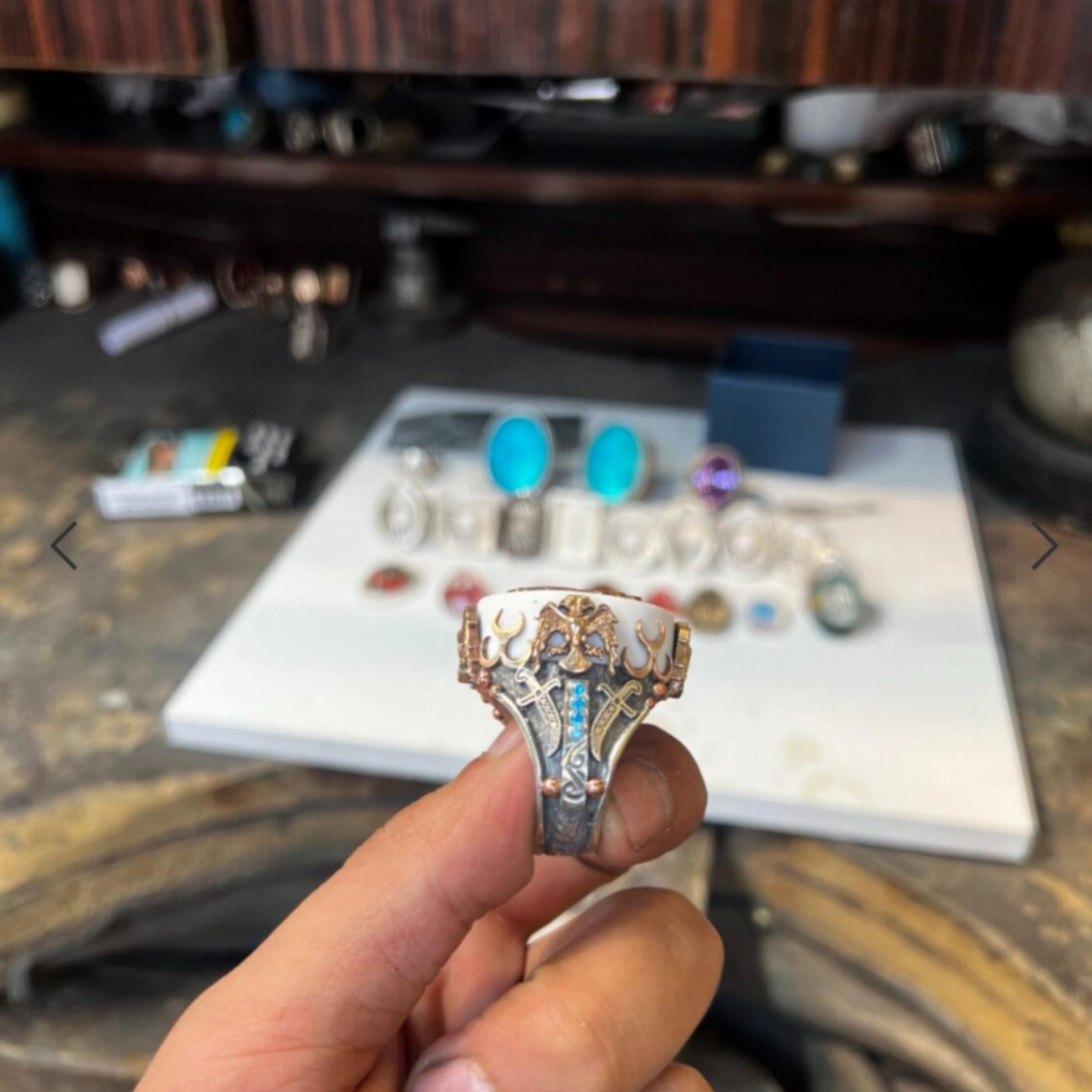 In this specially designed ring, the Double-Headed Eagle, symbolizing the power and justice of the Seljuk Empire, is embossed by hand. The eagle's two heads, facing in opposite directions, represent ruling from the past to the future, wisdom, and protection.