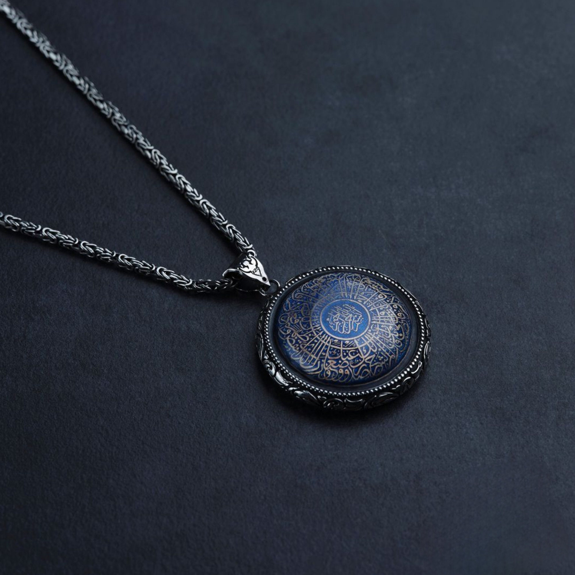Inshirah period medallion necklace with engraving patterned stone.