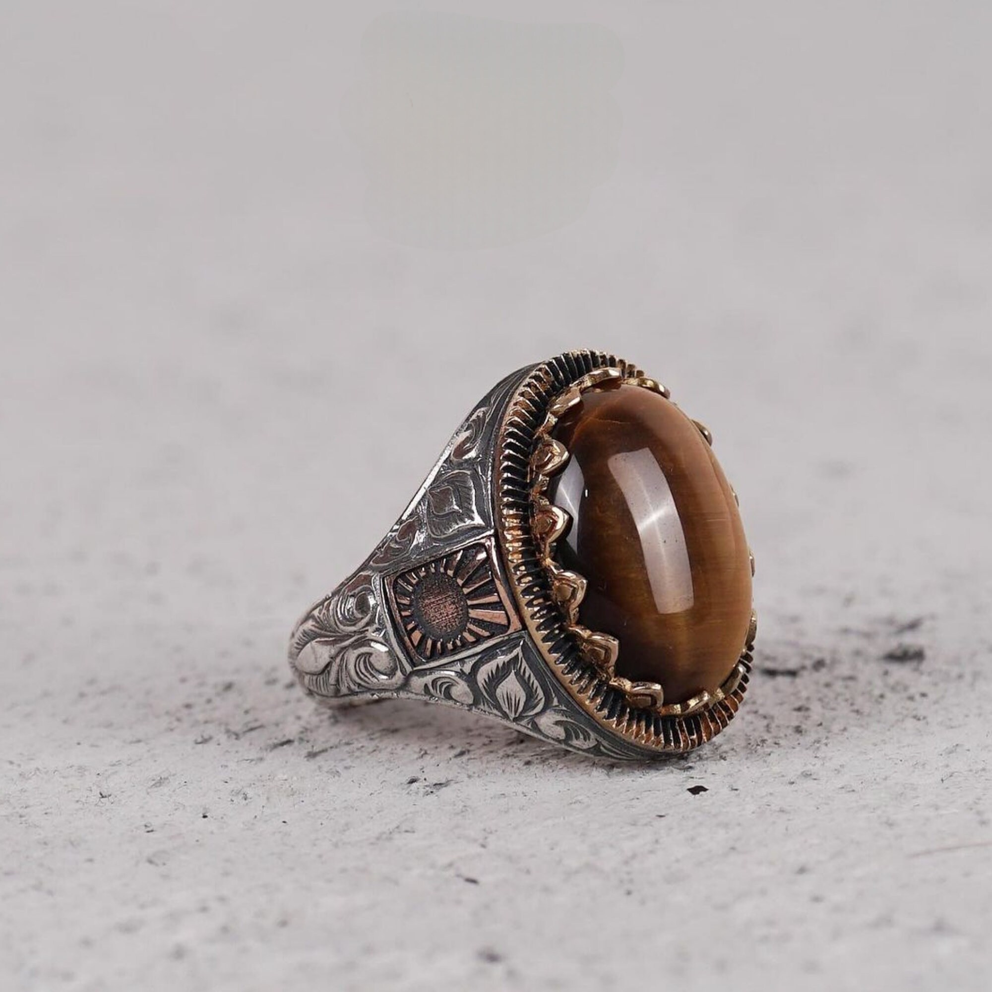 Tiger eye stone ring is a unique piece that reflects the power and elegance of nature. The stone of the ring, the tiger eye, carries a strong and noble energy and gives confidence and determination to its wearer.