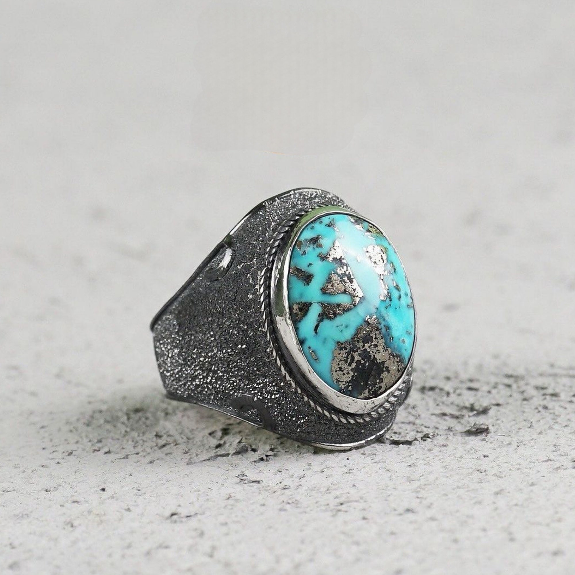 This ring is completely handmade and produced with fine workmanship by adding an Arizona turquoise stone onto 925 sterling silver. The ring makes a great gift and is shipped with a jewelry box, bag and ring polishing cloth.