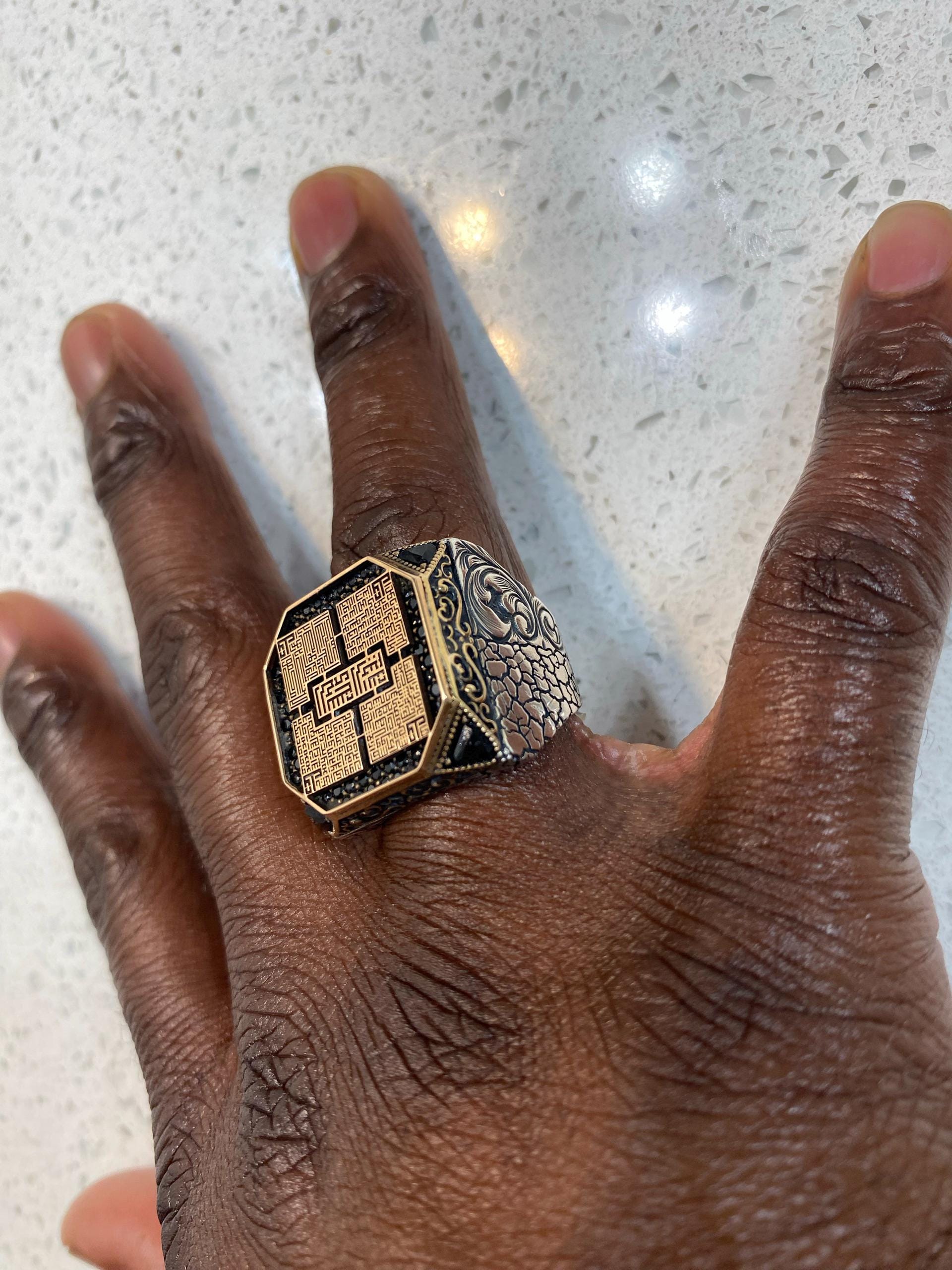 ReyhanSilverRing's handmade 925 sterling silver is engraved with atomic stones and memories are engraved with engraving, you can give this ring as a gift to yourself or to a man you love, you can be unforgettable for a lifetime, do not hesitate to write to me to get information and ask the ring size, I will be kindest to you. and I will reply politely as soon as possible
