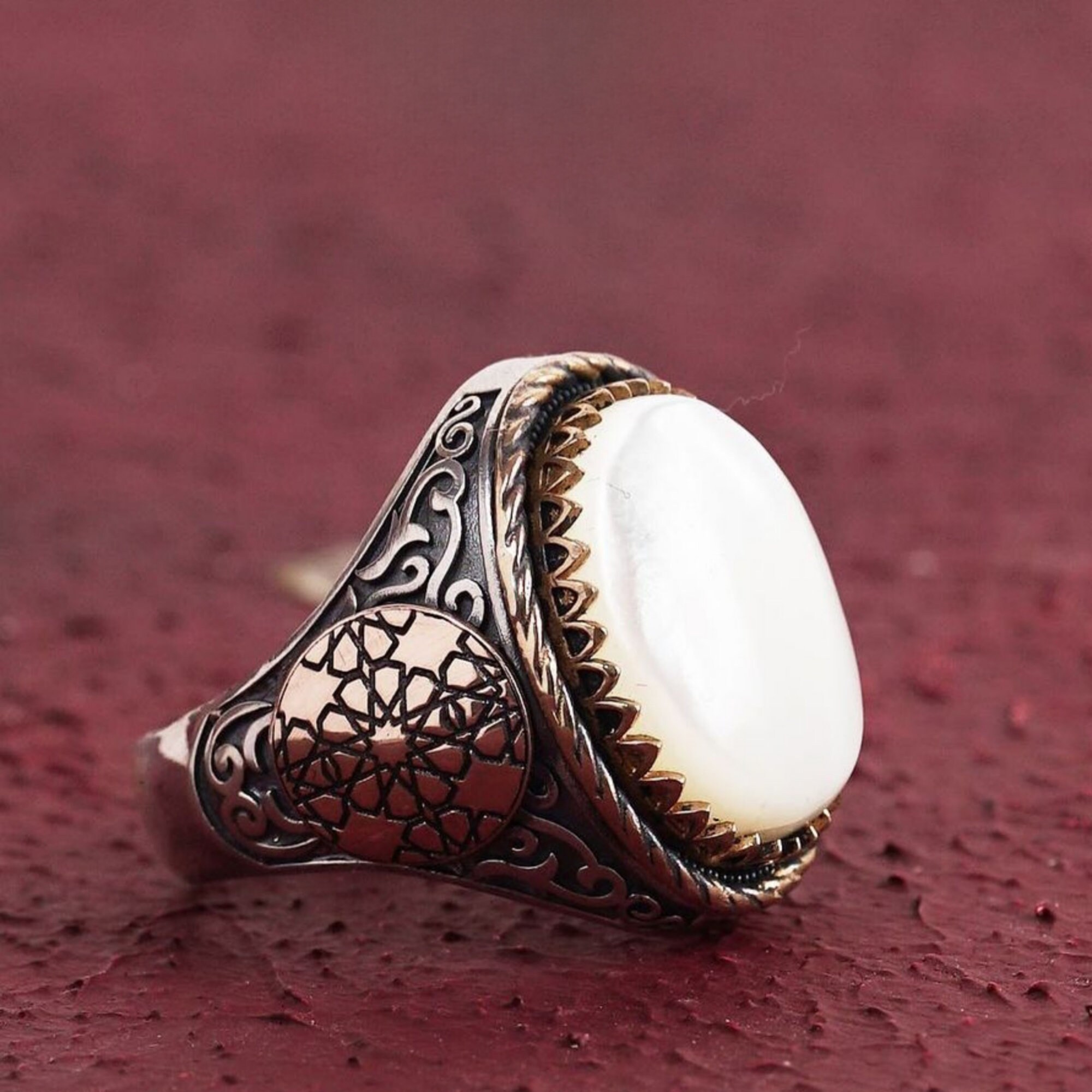 The mother-of-pearl stones reflect the elegance of nature and add an elegant touch to your fingers, while meeting with the nobility of silver to create a unique harmony.