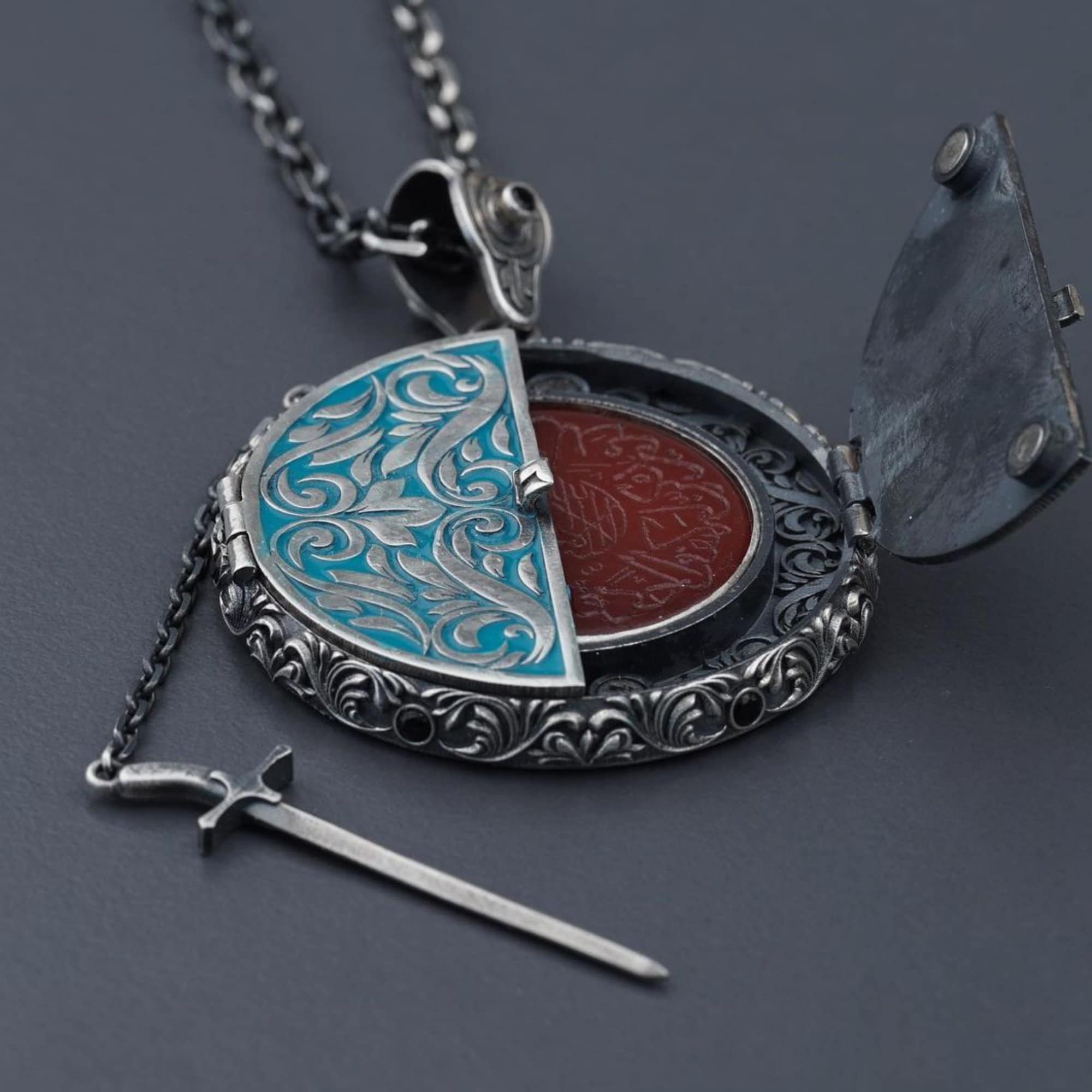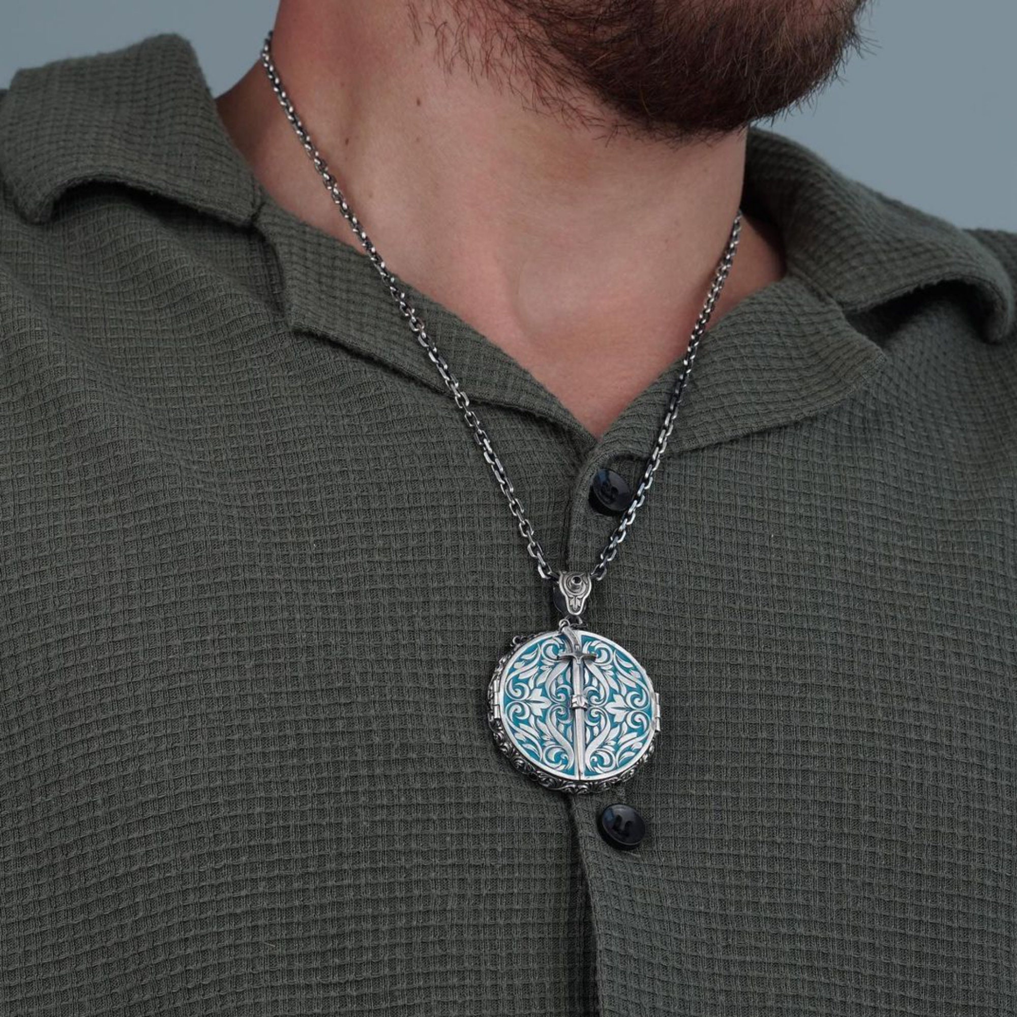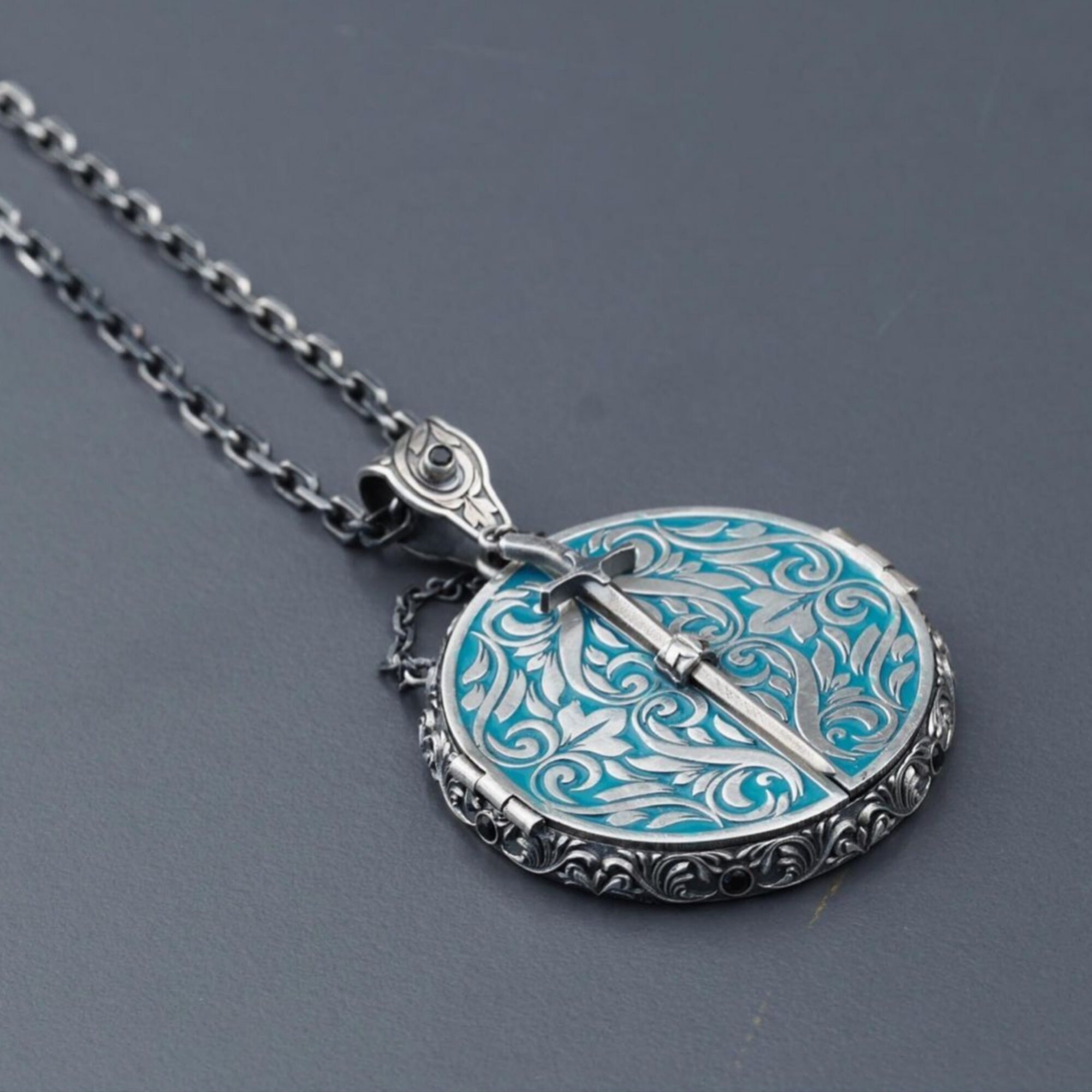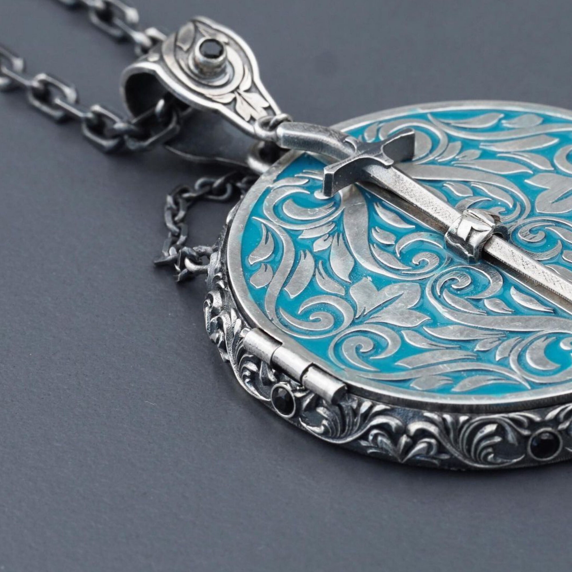 Introducing our exquisite Sword Covered Silver Necklace, handcrafted with enamel on top for a touch of elegance.