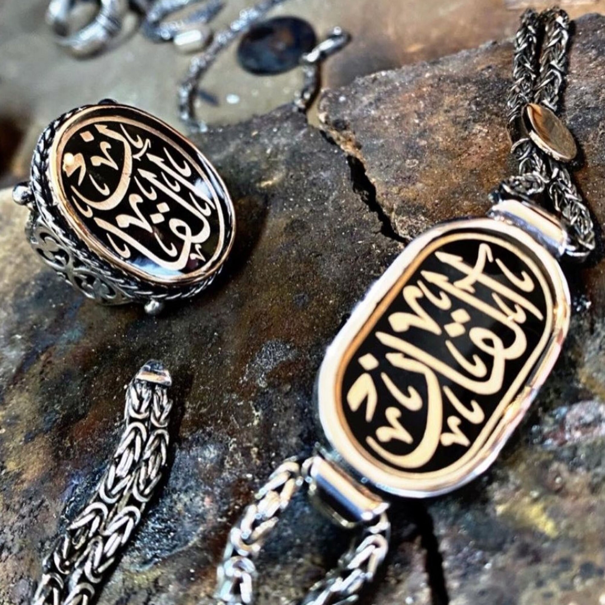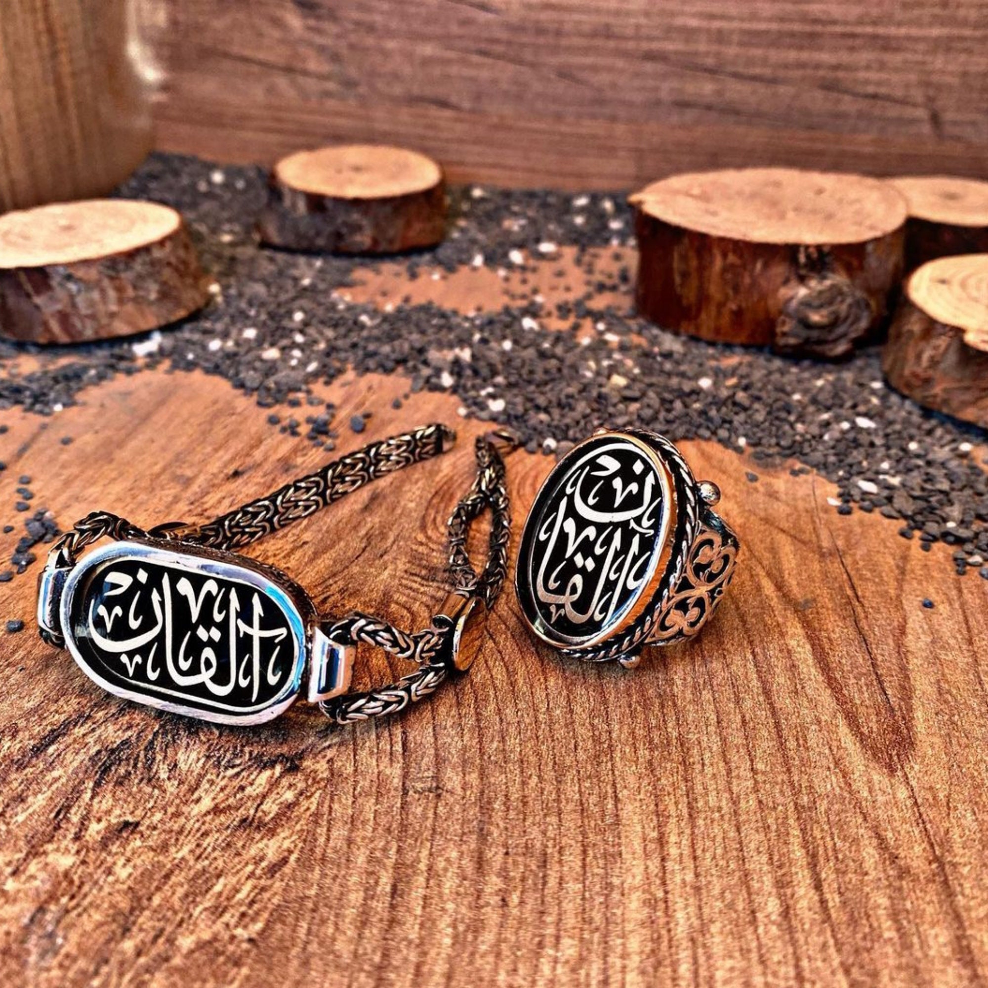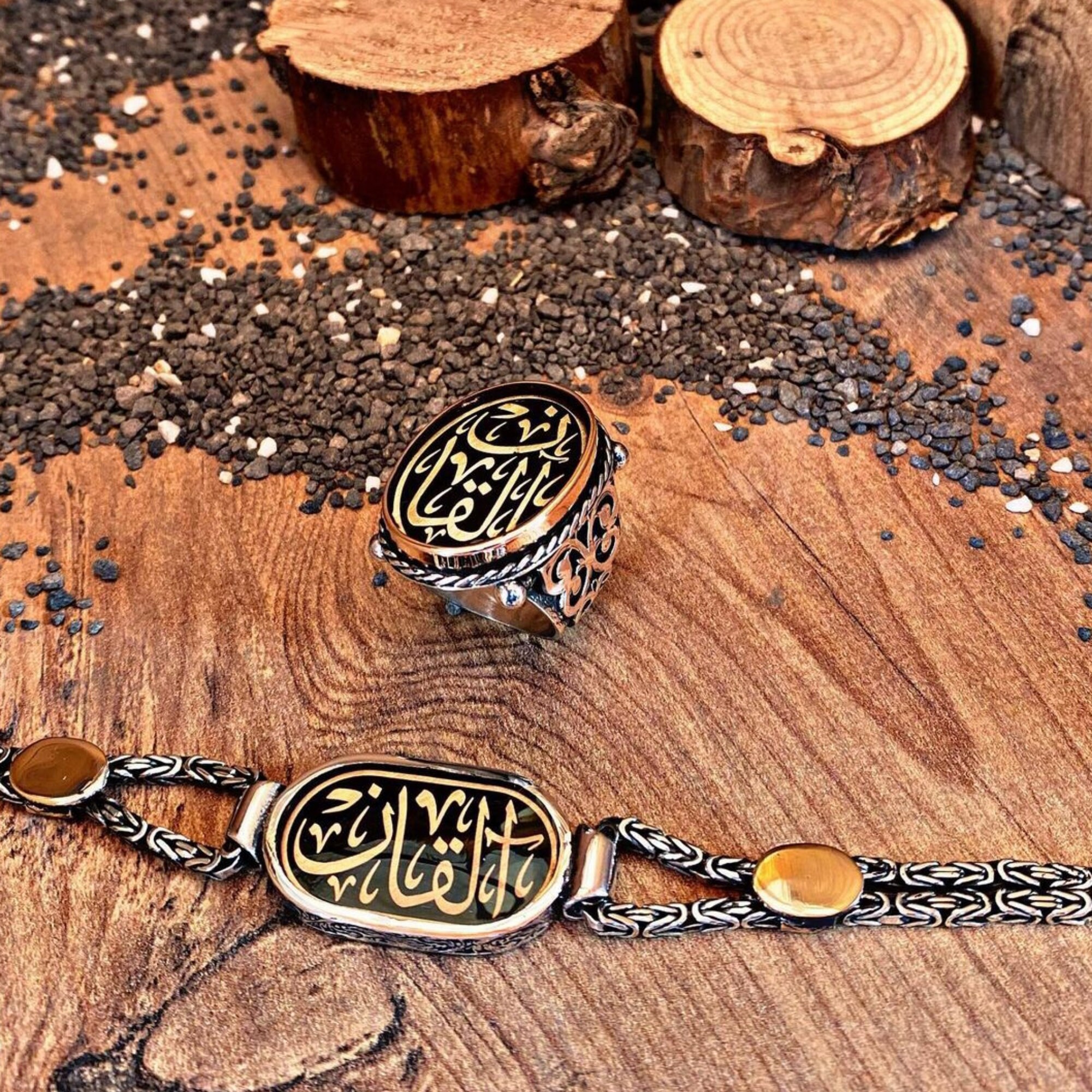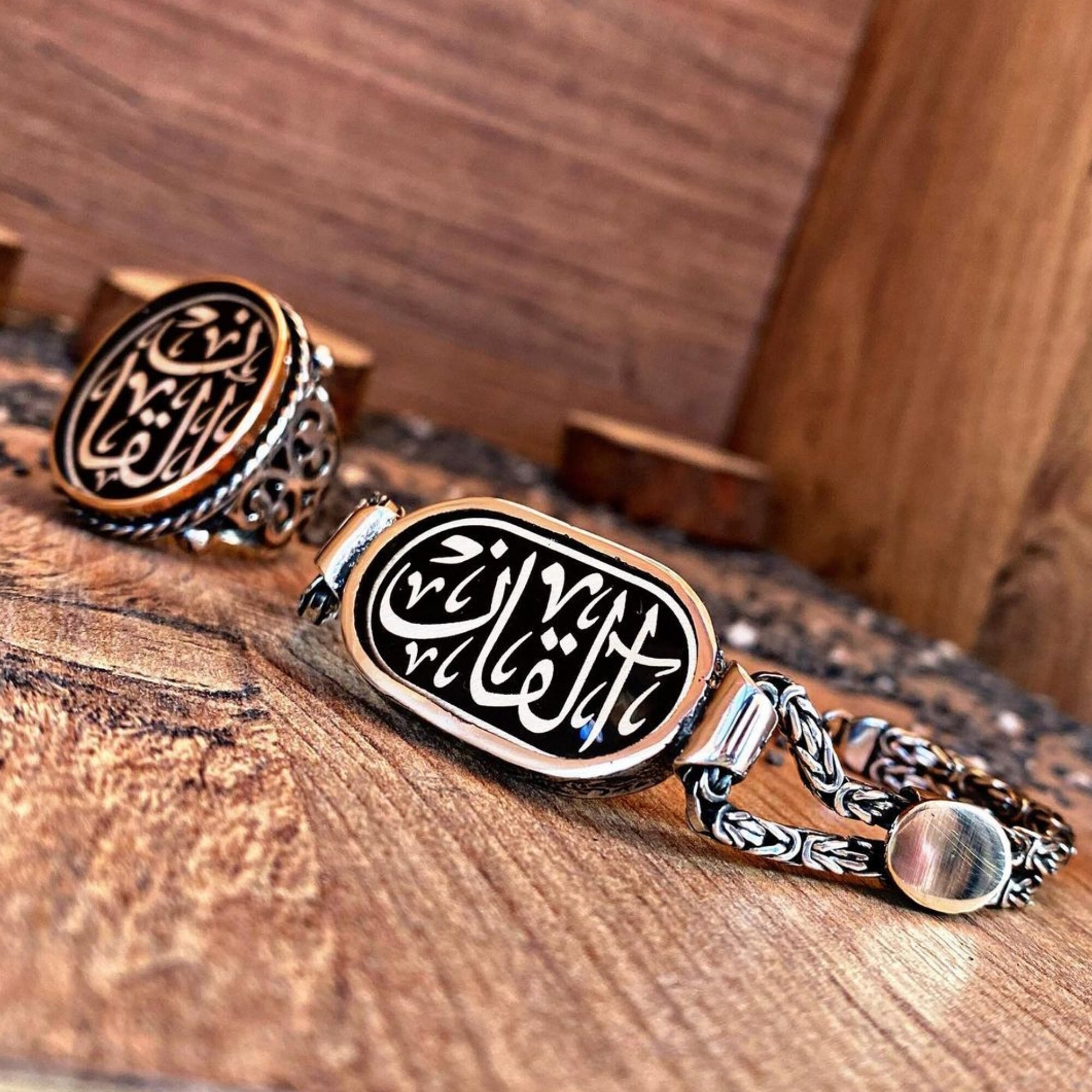 Handmade Silver Men Ring And Bracelet, Adjustable Jewelry, 925 Sterling Silver, Turkish Jewelry, HasbiAllah Written Bracelet