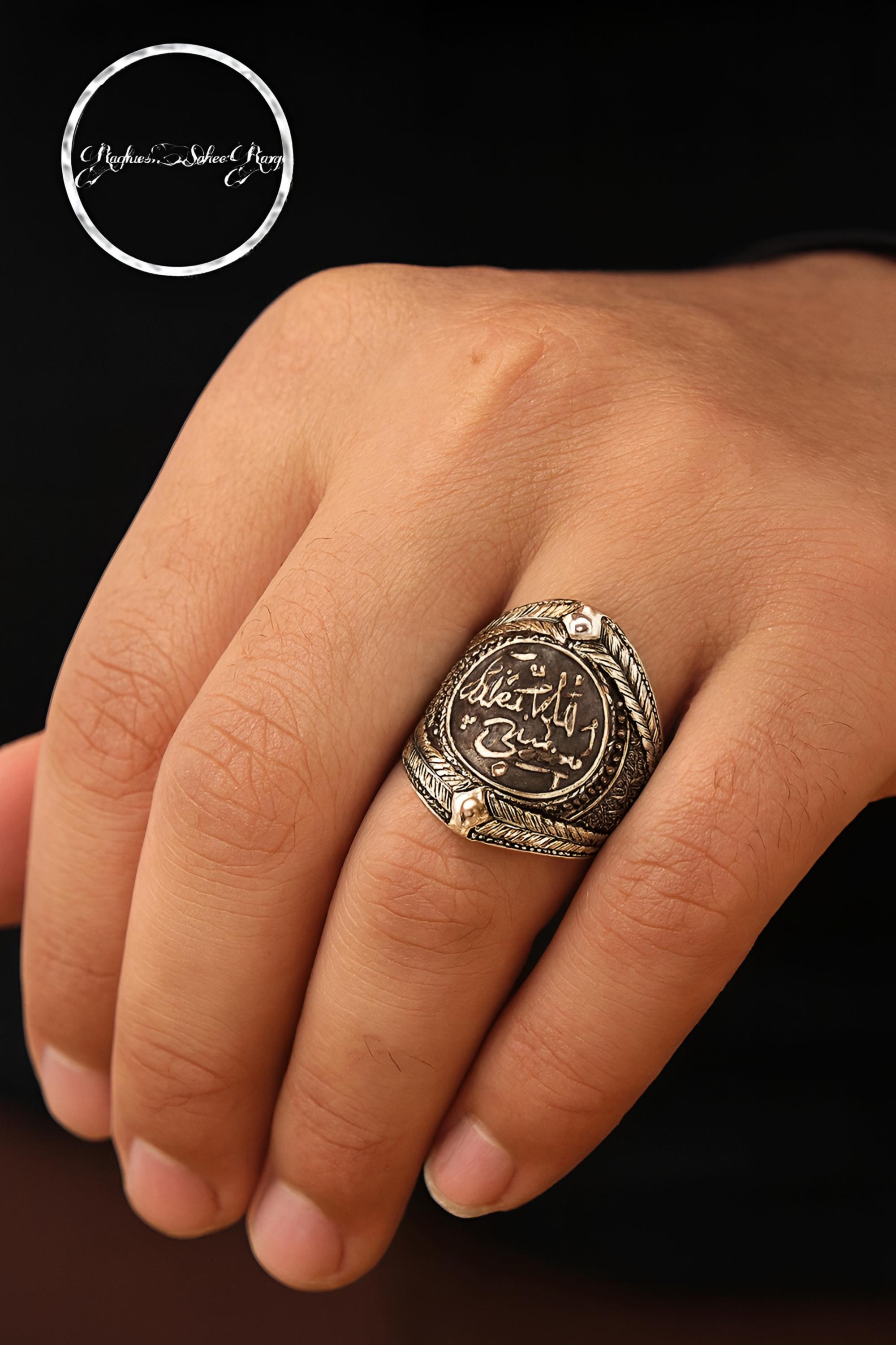 The new model Hasbiyallah Silver Ring made of 925 sterling silver from ReyhanSilverRing attracts attention with the inscription "Hasbiyallah wa nimel vekil". It is decorated with black micro zircon stones and the side parts are engraved.