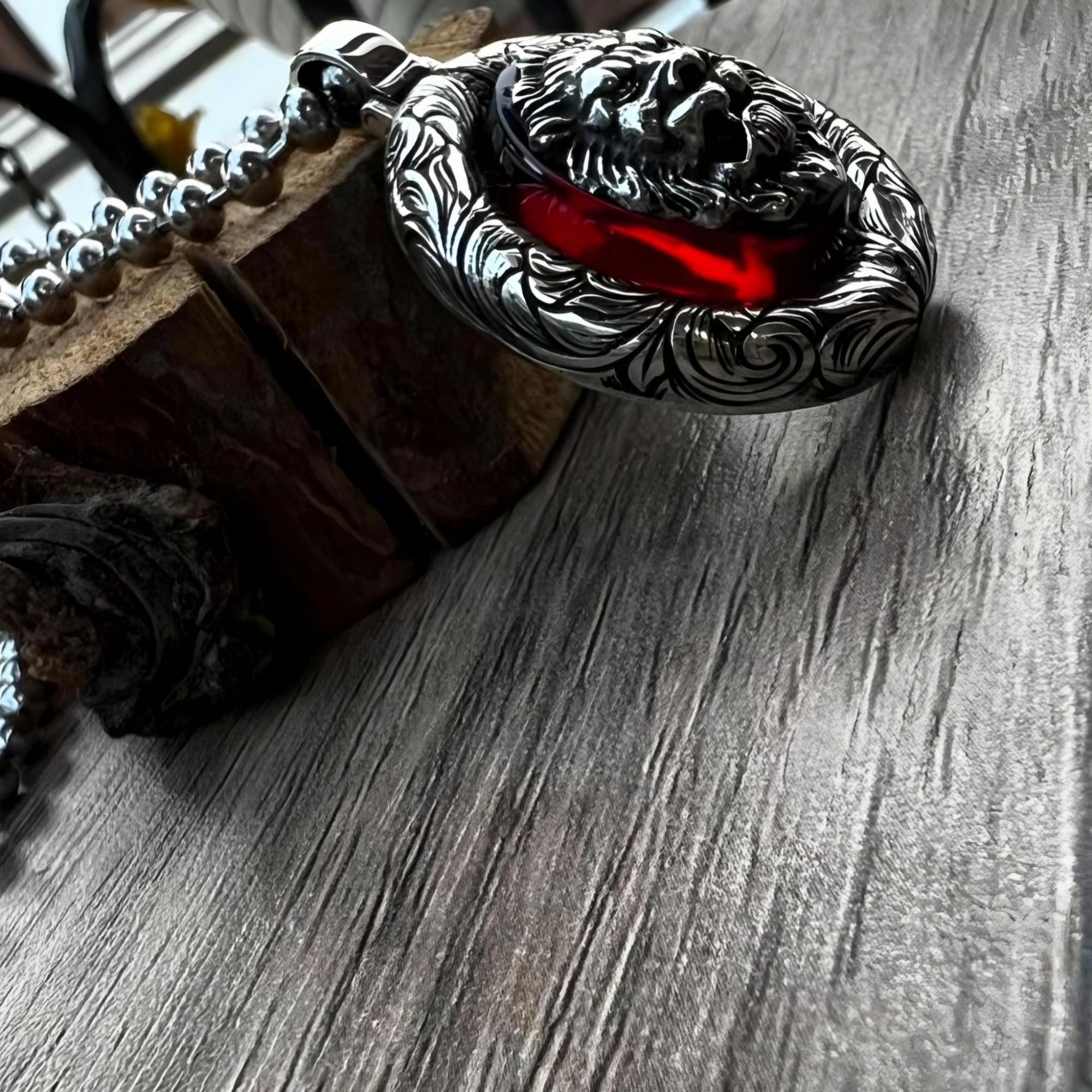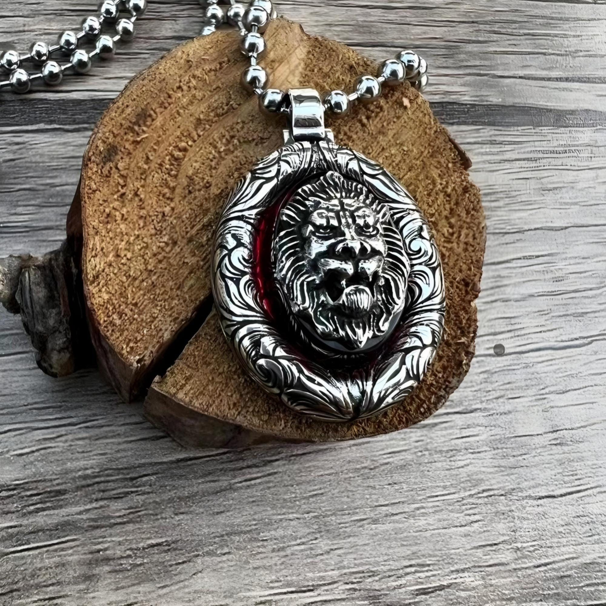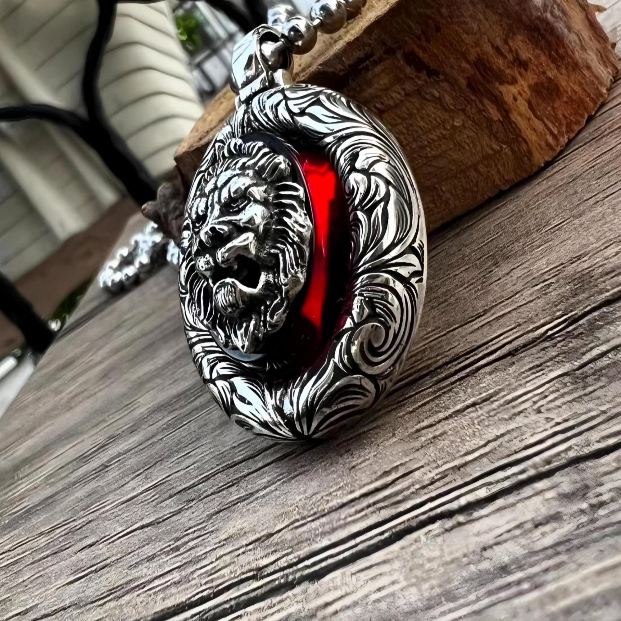 The lion symbolizes strength, leadership and protection — wearing this pendant speaks of your bold spirit. With the deep red amber glow, this piece becomes a beacon of confidence and elegance.