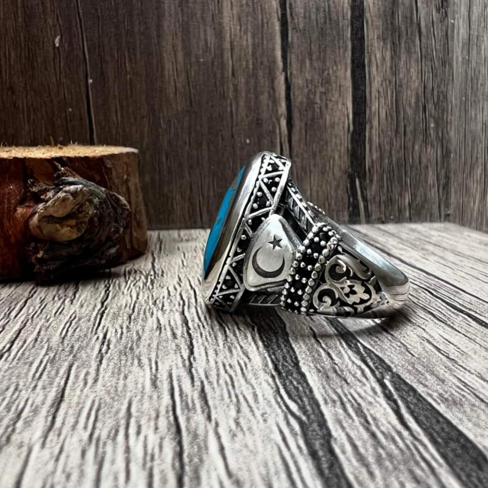 Experience the enchanting beauty of the Bru Model Turquoise Colored Top Surface Turkish Ring.