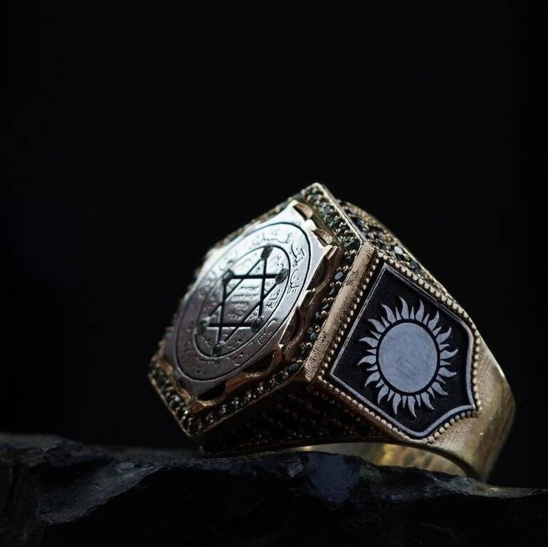Noble Silver Men's Ring, Hz. Solomon Seal Ring, 925 Sterling Silver, Charm Ring, Protective Ring, Unique Ring, Handmade Jewelry Ring.