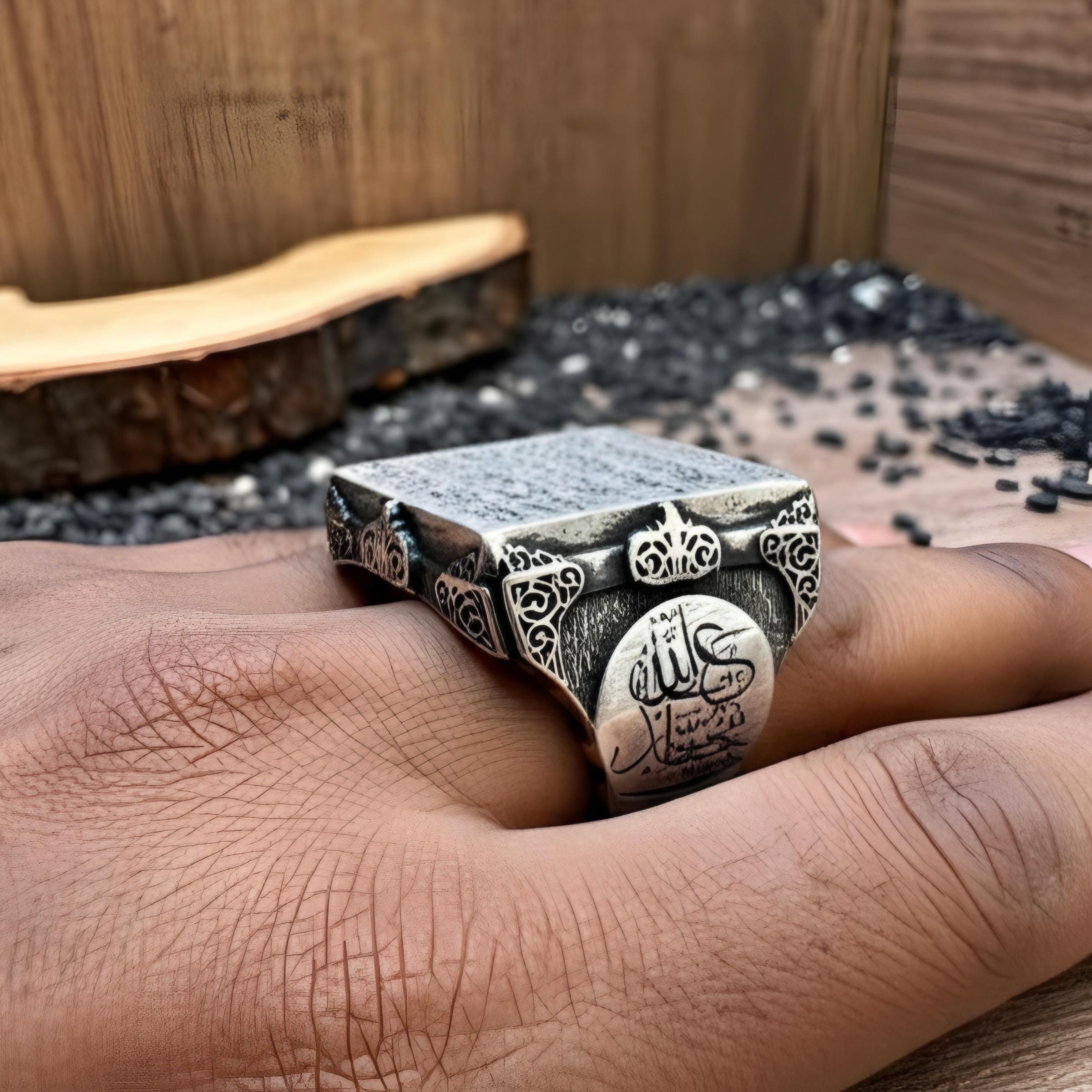 Customizable to your preference, this bold Islamic ring is a perfect statement piece for anyone seeking meaningful and big jewelry.