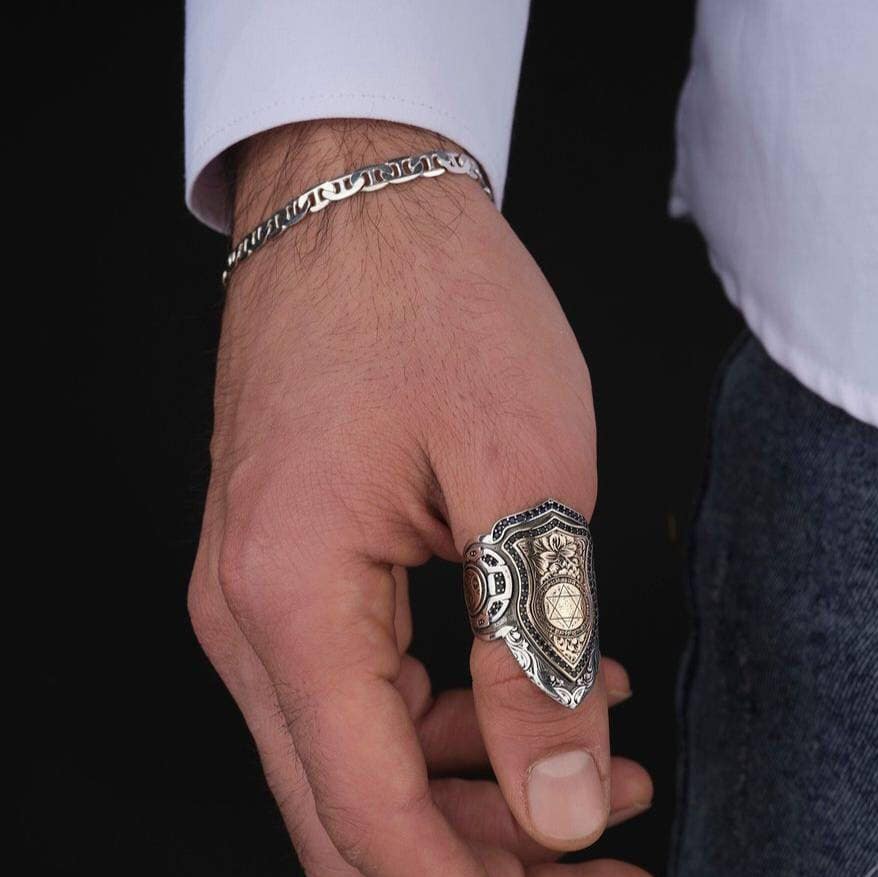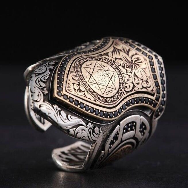 Talisman Silver Men Ring, Silver Ring Men, Personalized Gift, Solomon Ring, Seal Of Solomon Ring, Gift For Men, Adjustable Turkish Jewelry, Handmade Thumb Ring Zihgir, Turkish Handcrafted Thumb Ring Adjustable 925 Sterling Silver Ring, Seal Of Solomon, Ottoman Zihgir,Archery Gift