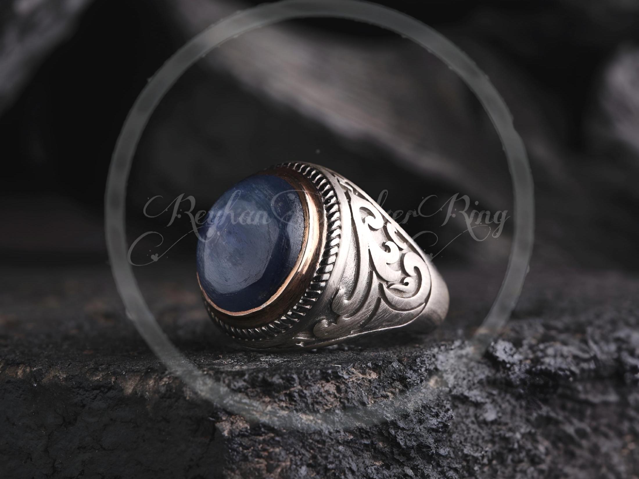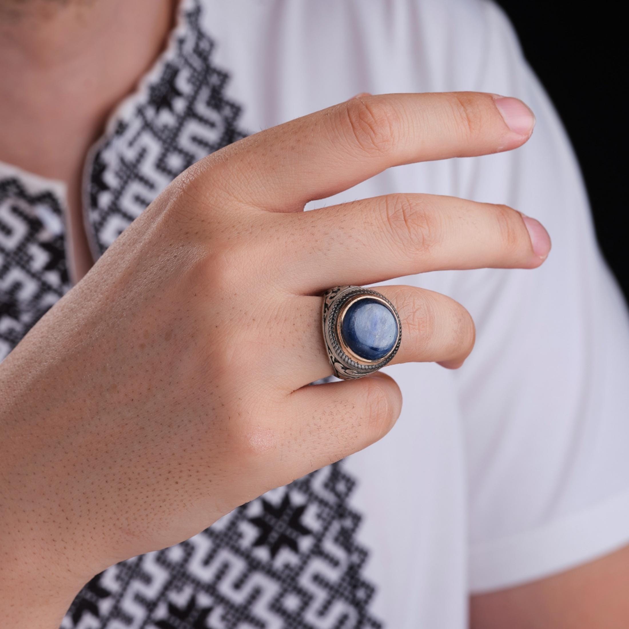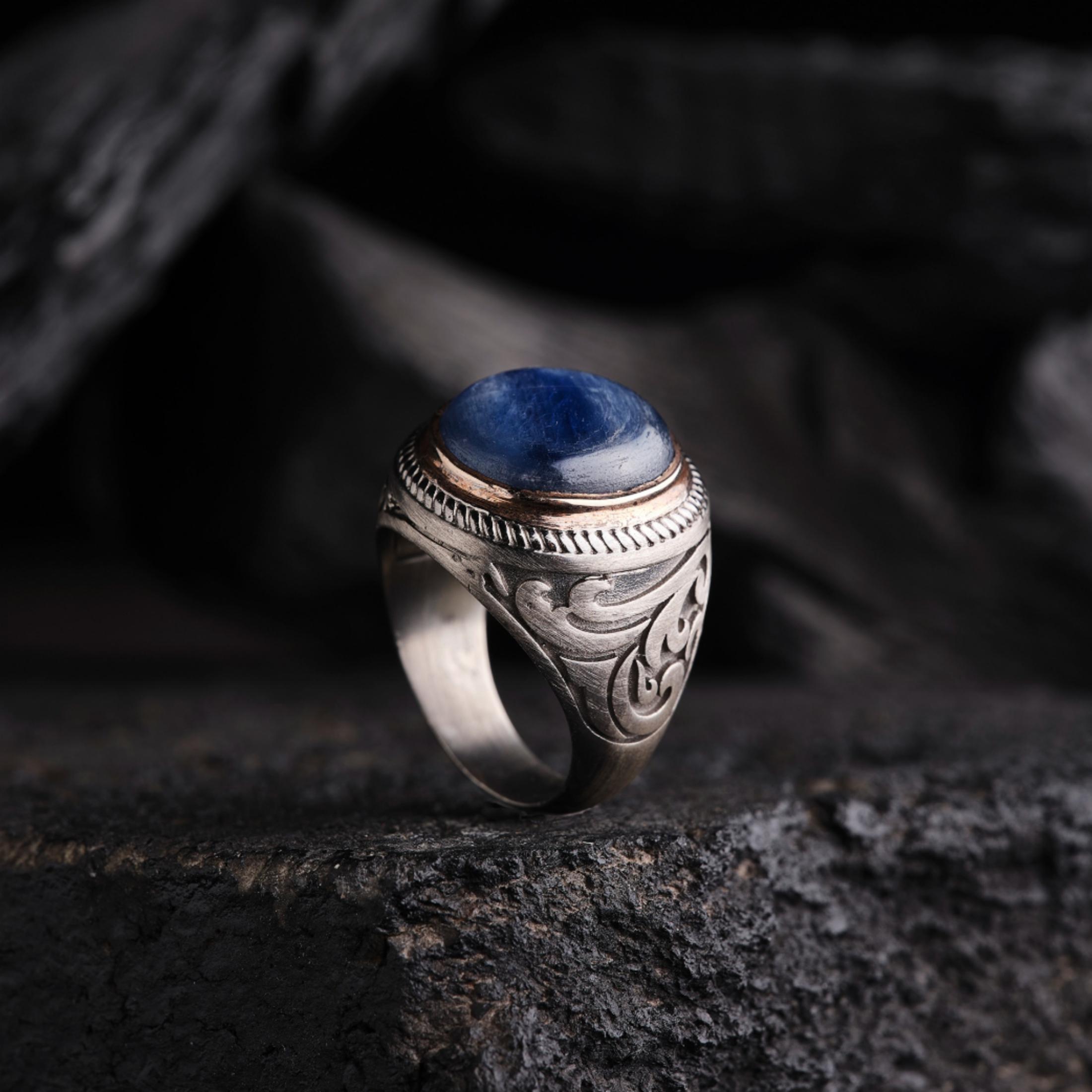 Bring timeless elegance to your style with this handcrafted Lapis Lazuli men's ring, featuring delicately engraved Ottoman-style patterns on both sides. The deep blue stone symbolizes wisdom and protection, making this a meaningful gift for yourself or a loved one.