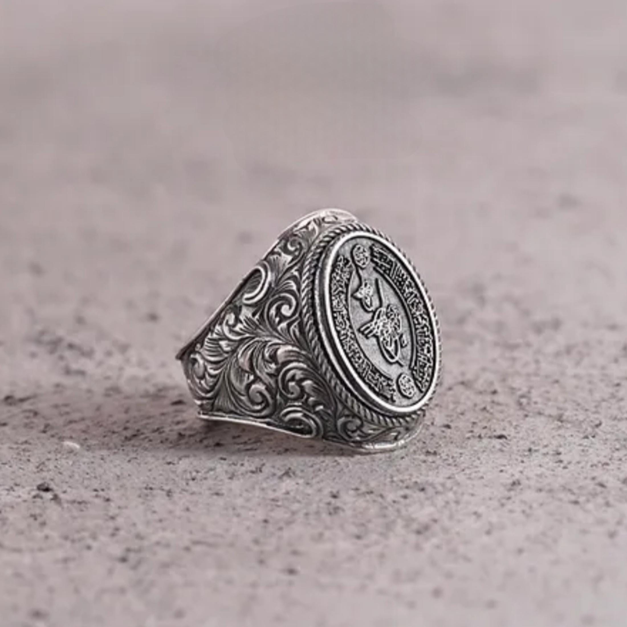 “Allah Bize Yeter! O Ne Güzel Vekildir!” Engraved Islamic Silver Ring – Handcrafted with Ottoman Tughra & Arabic Duas