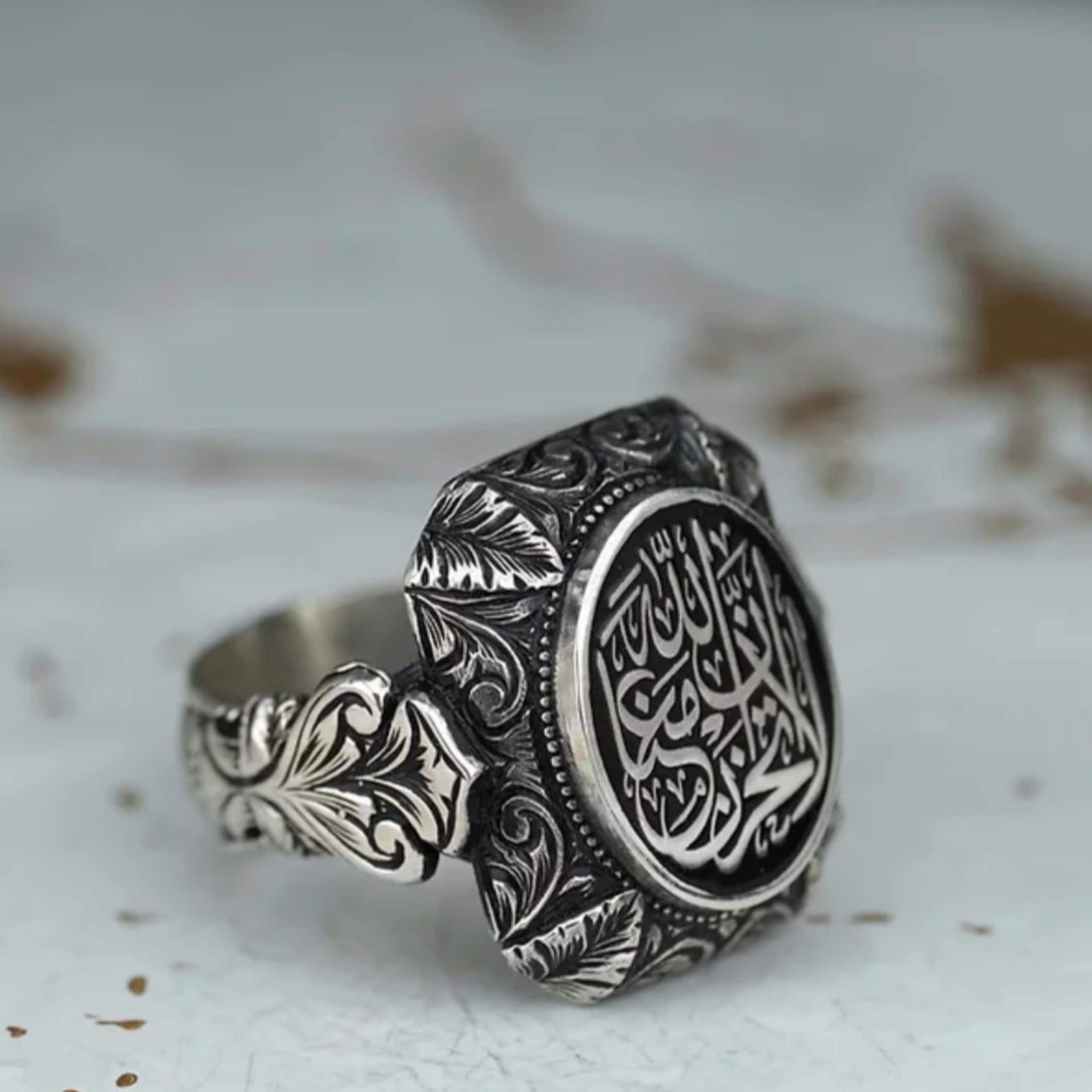 Crafted with fine engraved details and ornamental carving patterns, this ring carries both aesthetic beauty and deep spiritual meaning.