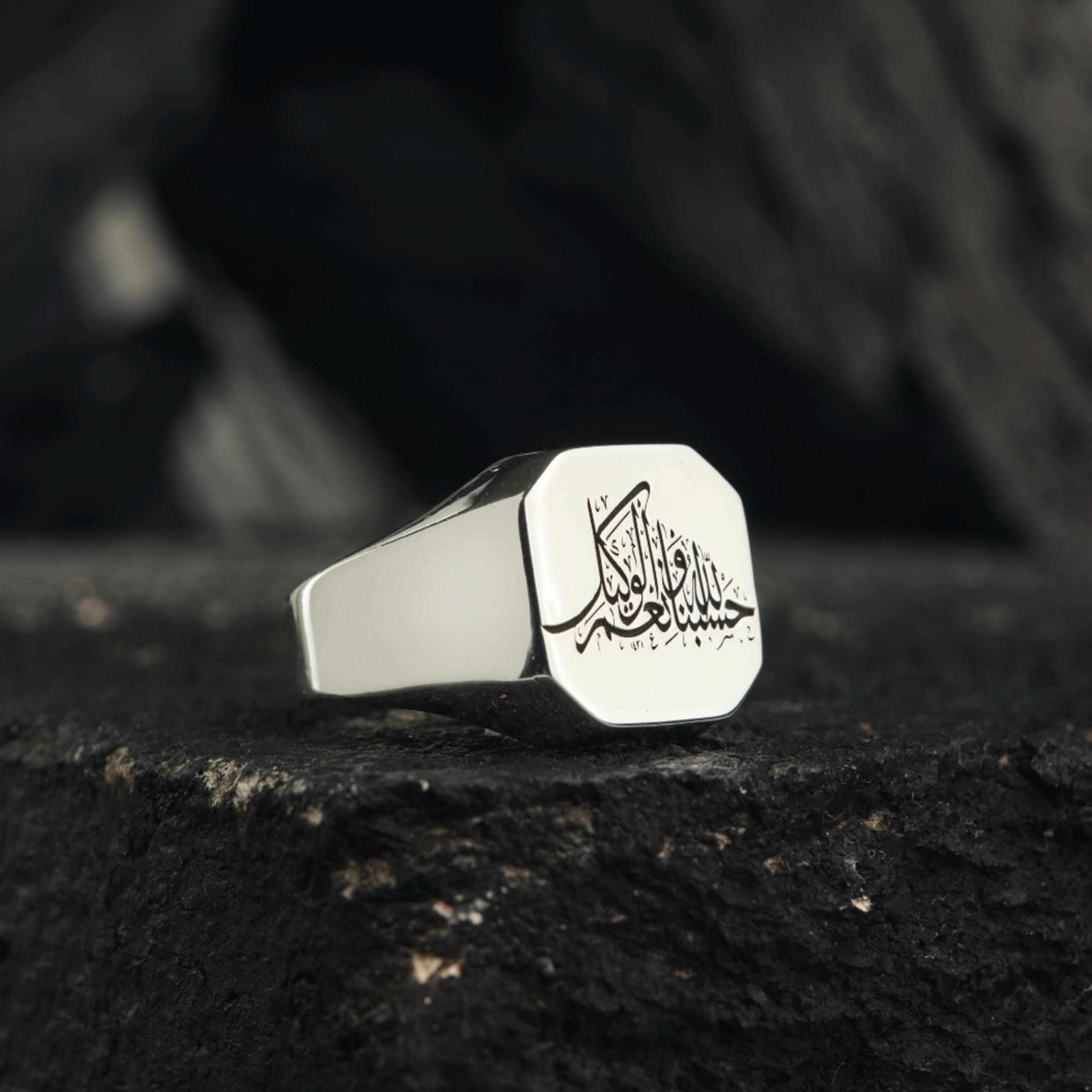 This specially designed silver ring is engraved with the prayer "Hasbiyallahu wa ni'mel vekîl" (Allah is sufficient for us, He is the best representative) in elegant calligraphy.