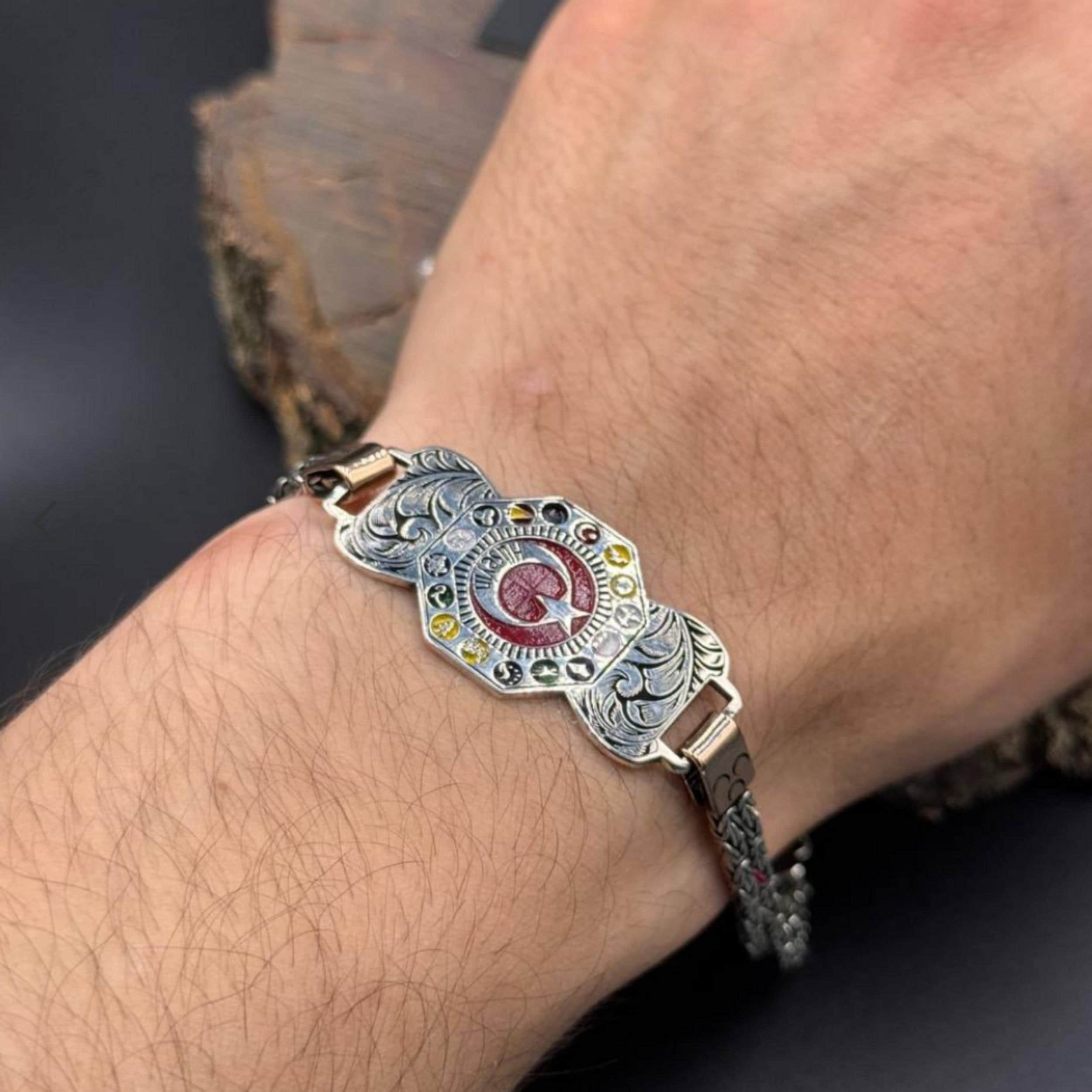 Handmade from 925 sterling silver, this men’s bracelet features the 16 Great Turkish States symbols, making it a powerful statement of heritage and identity.
