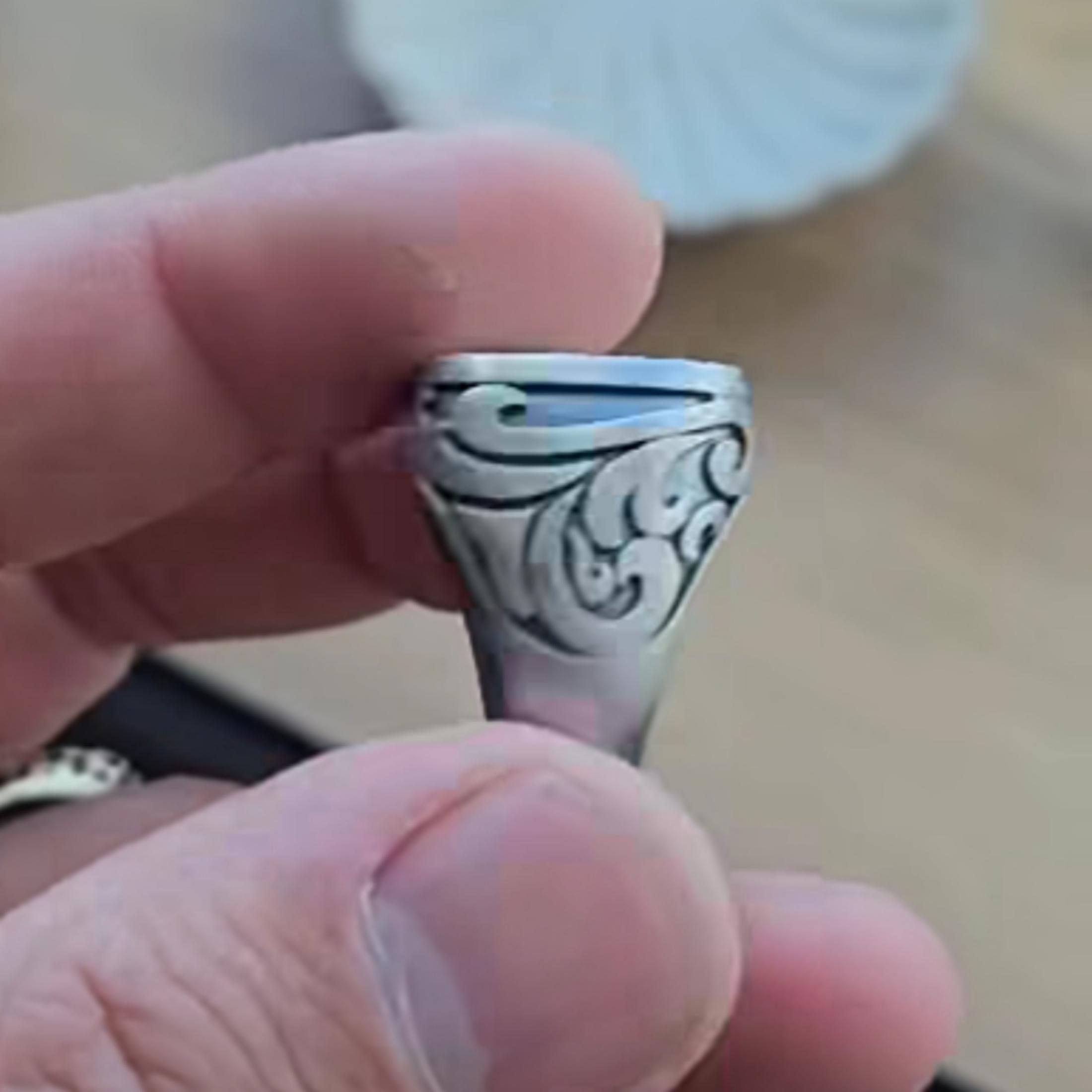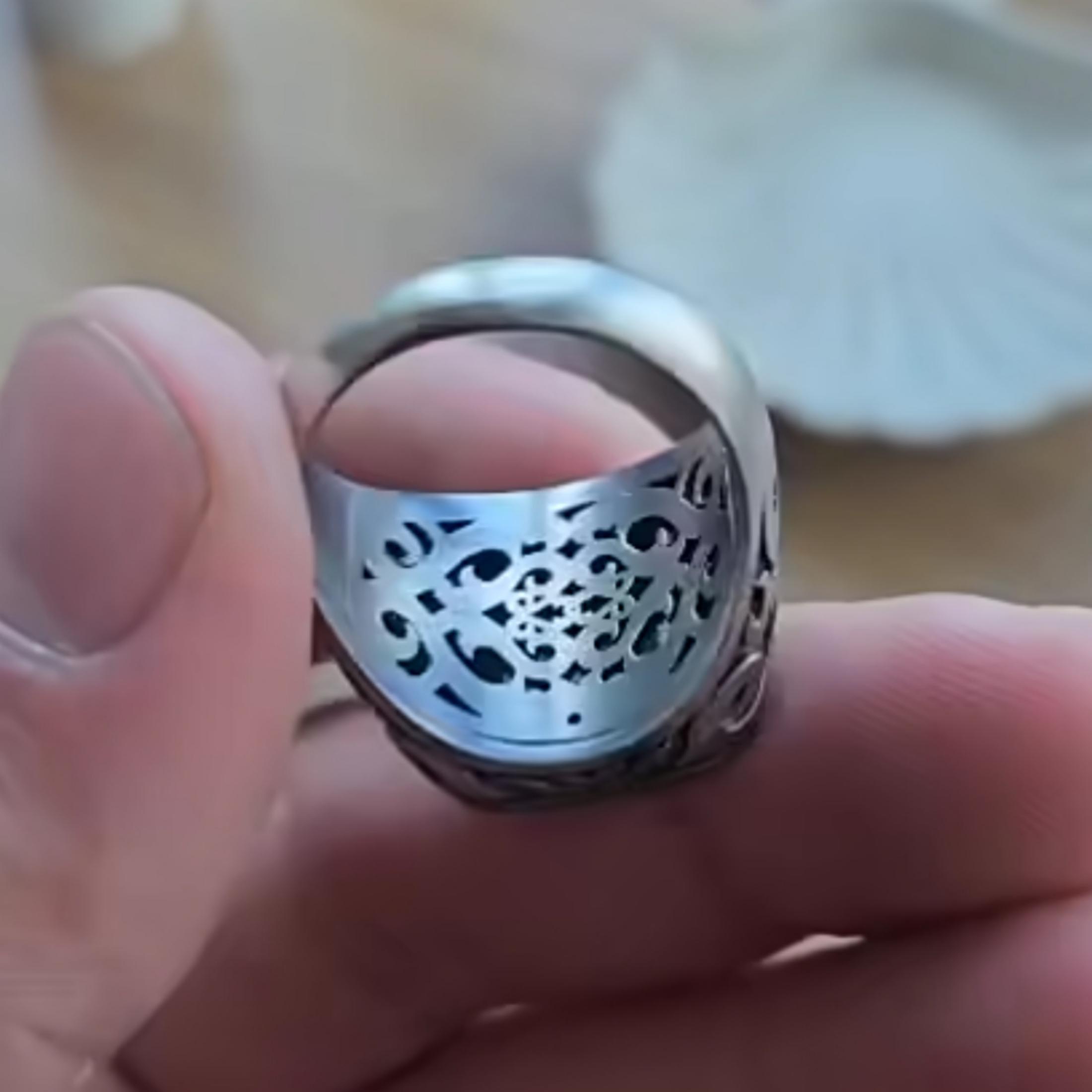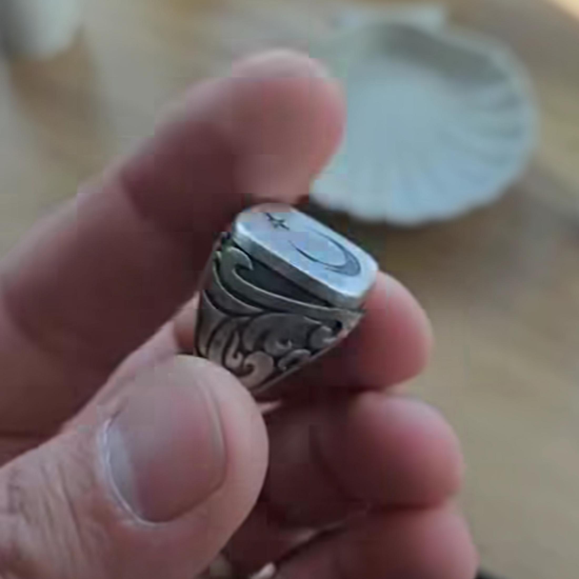 The crescent and moon design sides are engraved and made of 925 sterling silver. A Turkish handmade and customizable special ring.