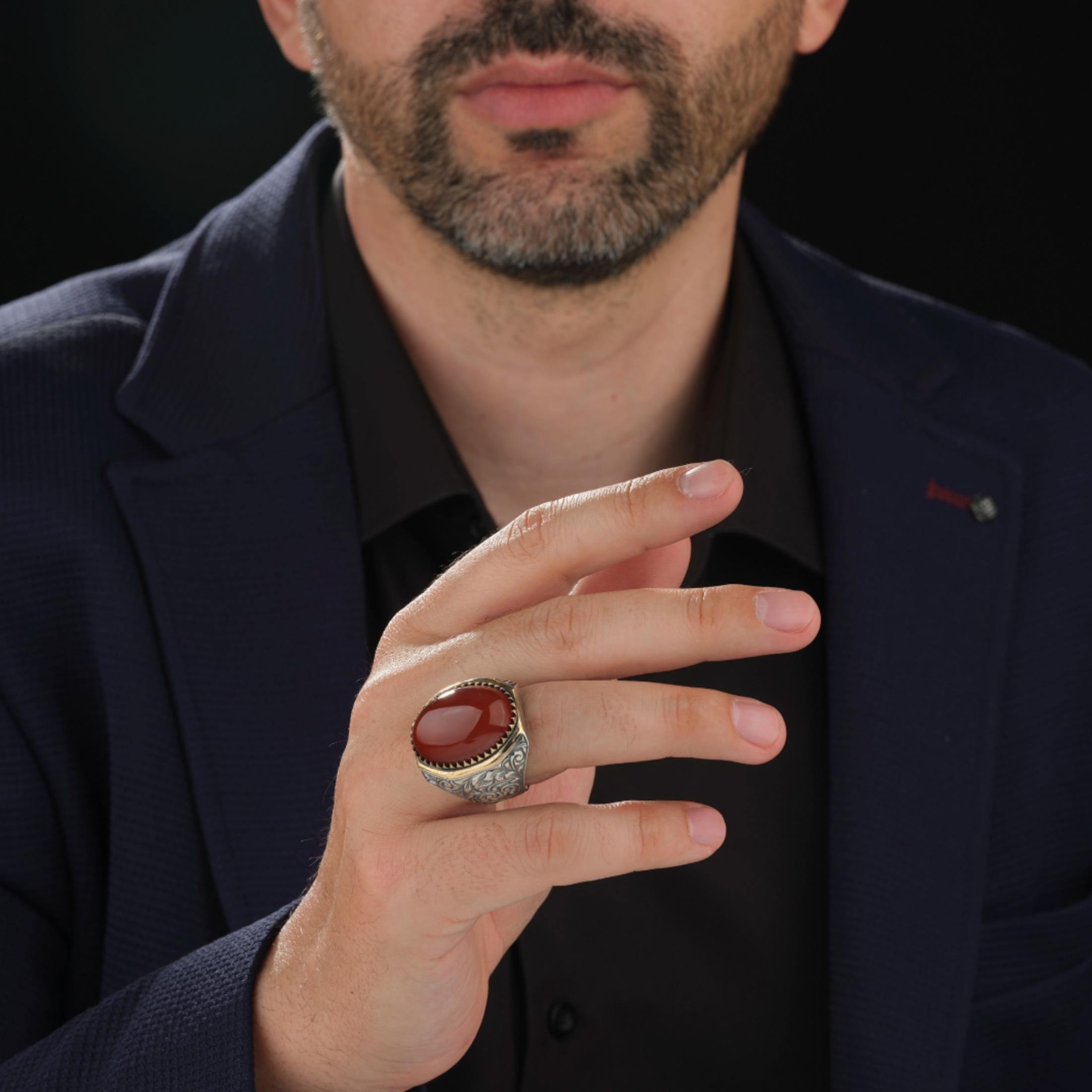 This elegant men’s ring is crafted from 925 sterling silver and features a natural brown agate stone.