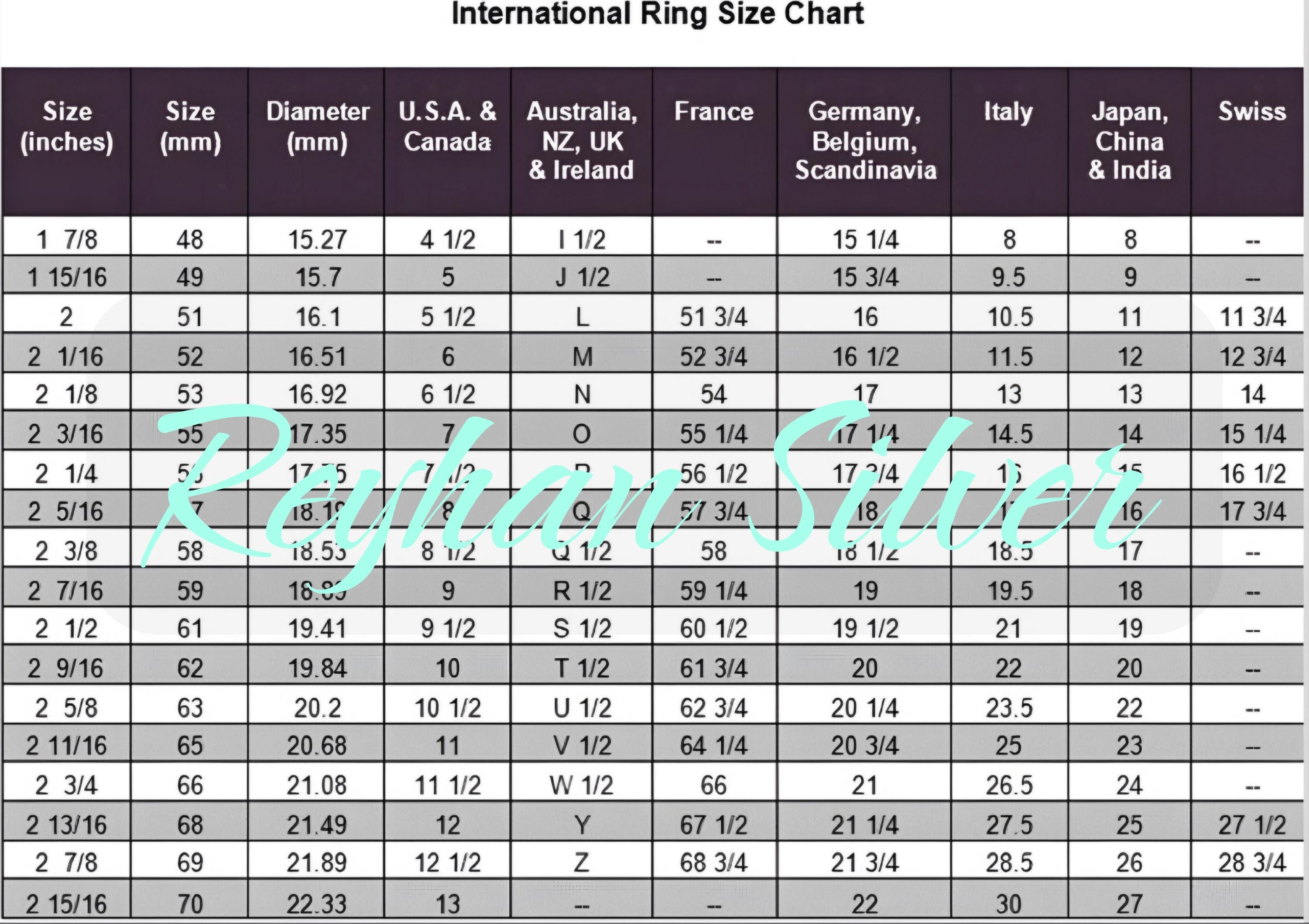 *The best way to find out your finger size is to see a jeweler. However, if this is not possible, please refer to our ring size chart in the last picture. There you can learn how to measure it yourself, as well as the conversion chart. If you're still having problems, please let us know so we can try to help you.