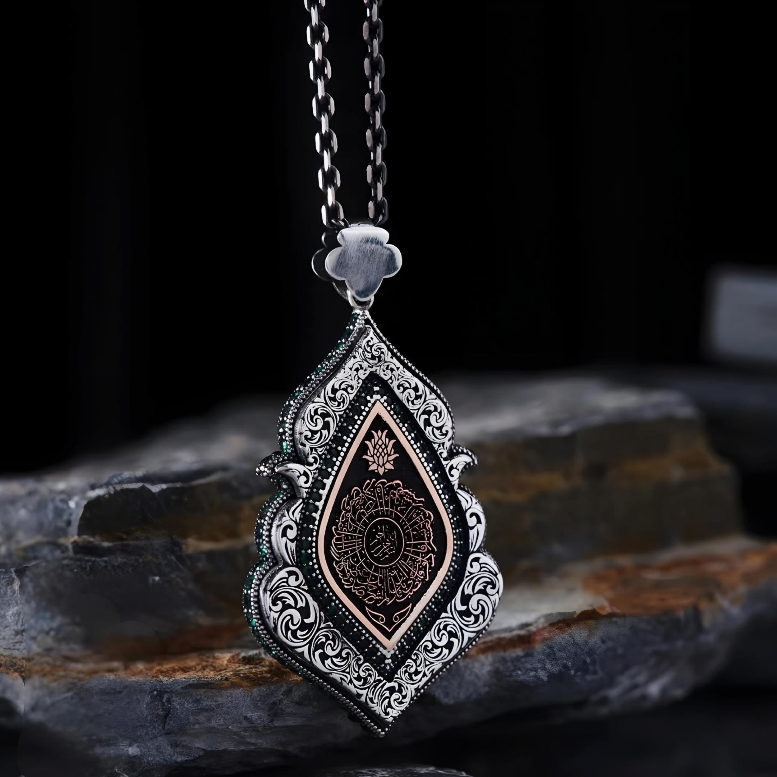 Crafted from high-quality sterling silver (925), this unique pendant blends Islamic art and modern design, creating a timeless accessory for everyday wear or special occasions.