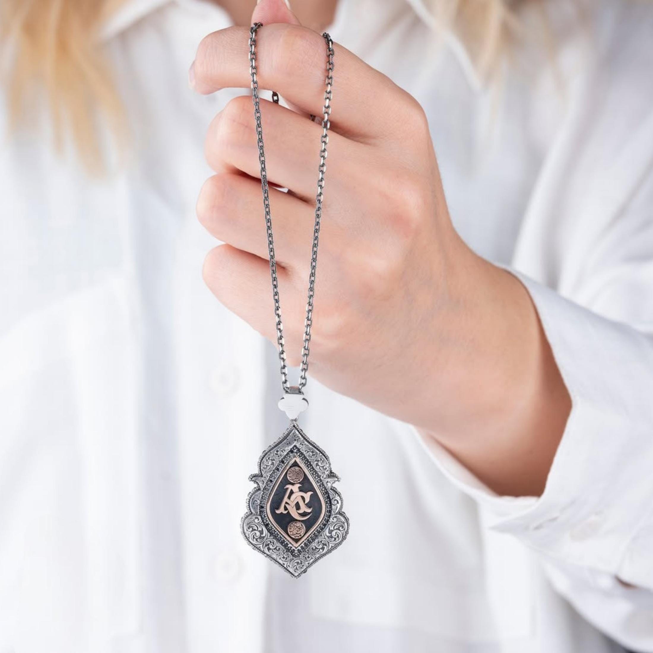 This beautiful sterling silver necklace is inspired by authentic Seljuk motifs and surrounded by black micro zircon stones, adding a touch of timeless elegance.