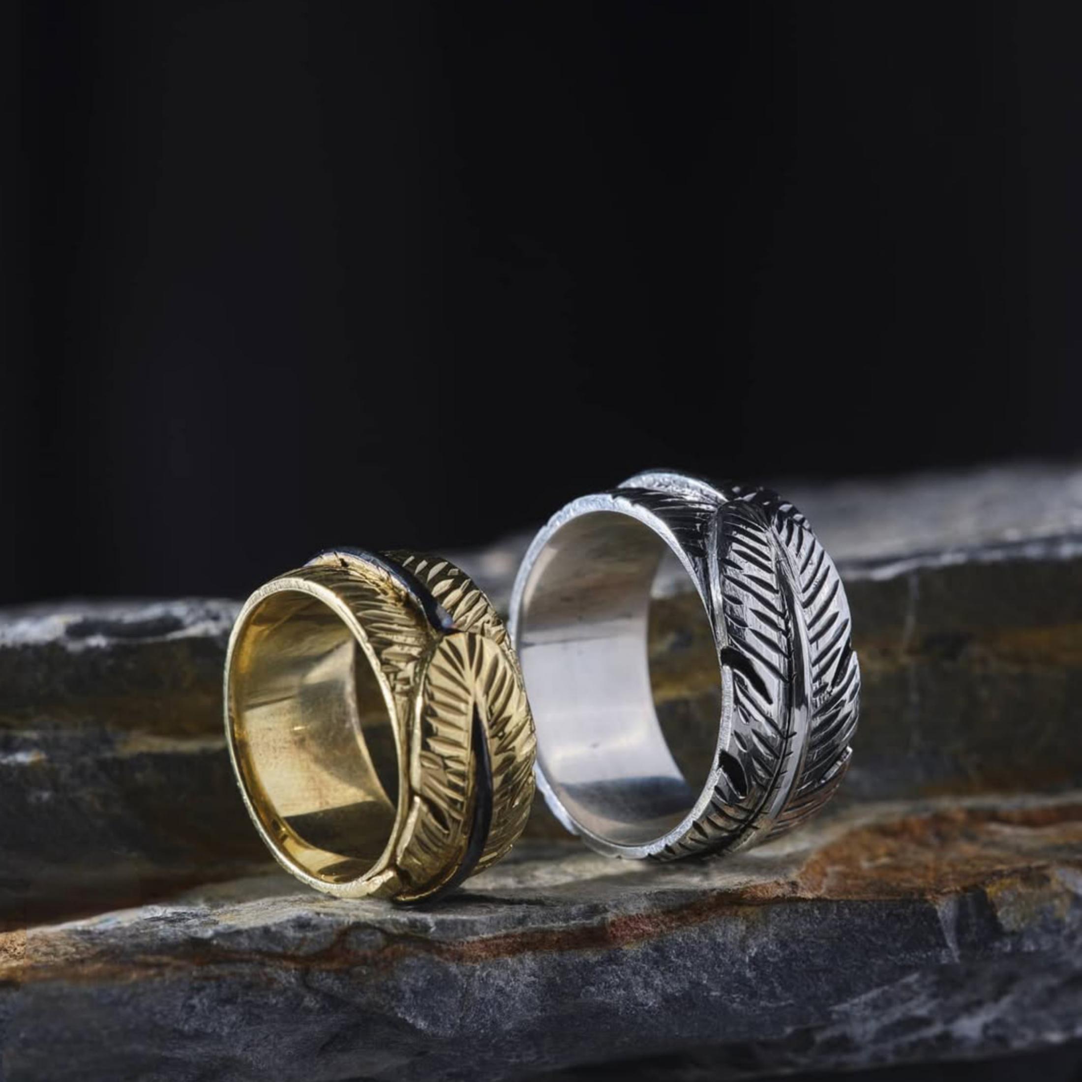 Each ring is handcrafted from genuine sterling silver, adorned with delicate feather motifs symbolizing freedom, unity, and the soft touch of love.