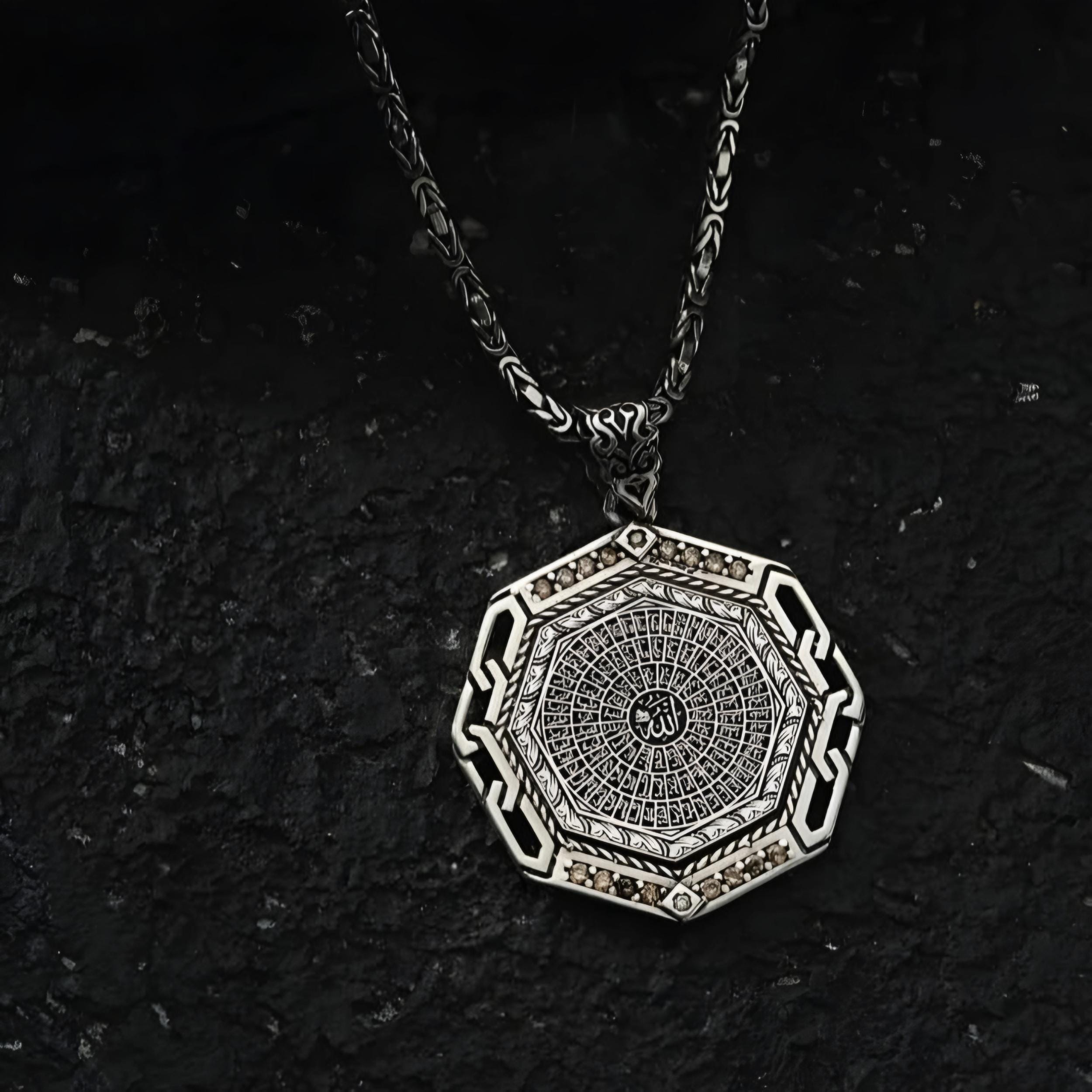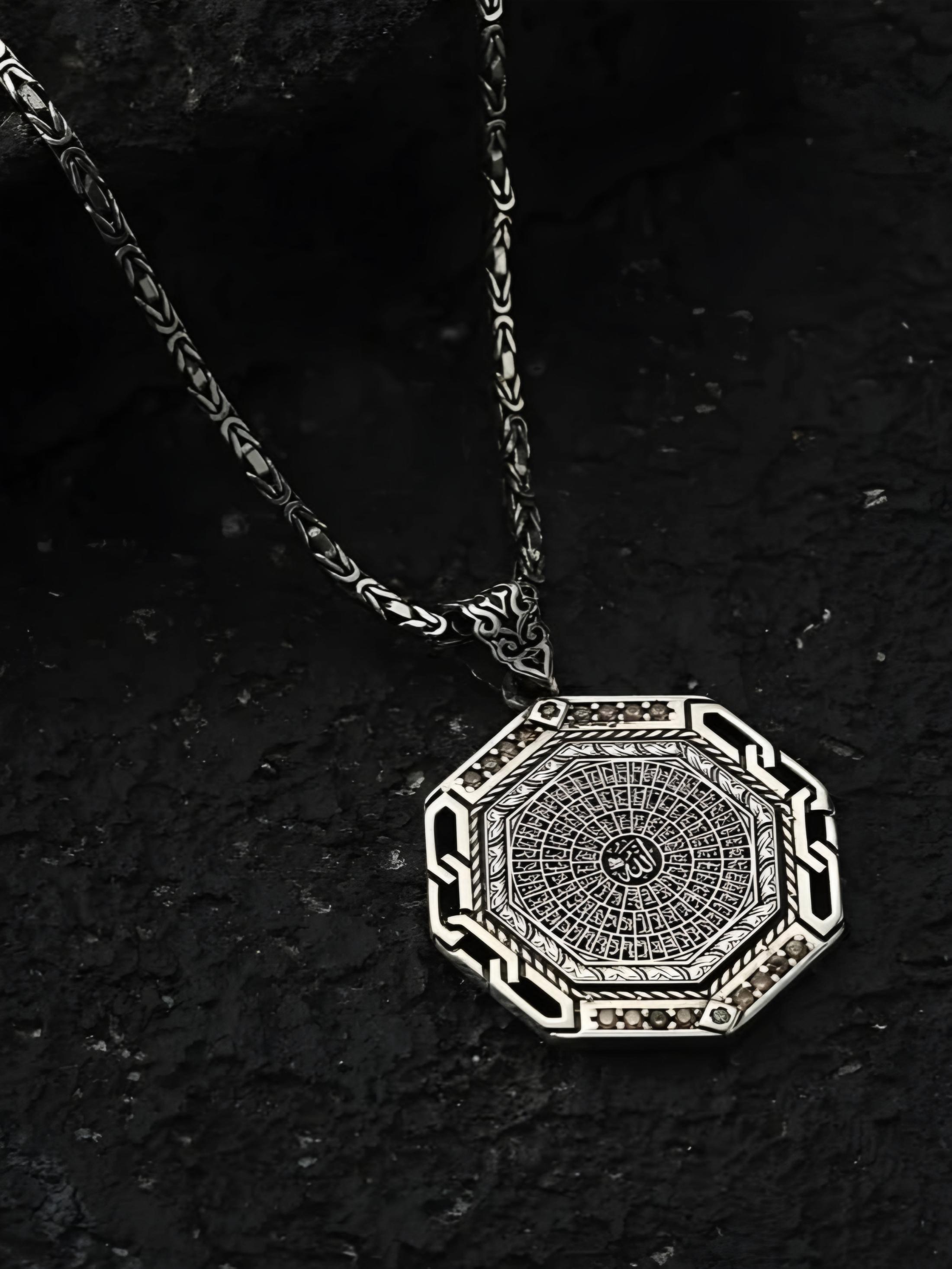 This specially designed octagonal medallion is not merely a piece of jewellery; it is a symbol of spiritual energy, protection and elegance.
