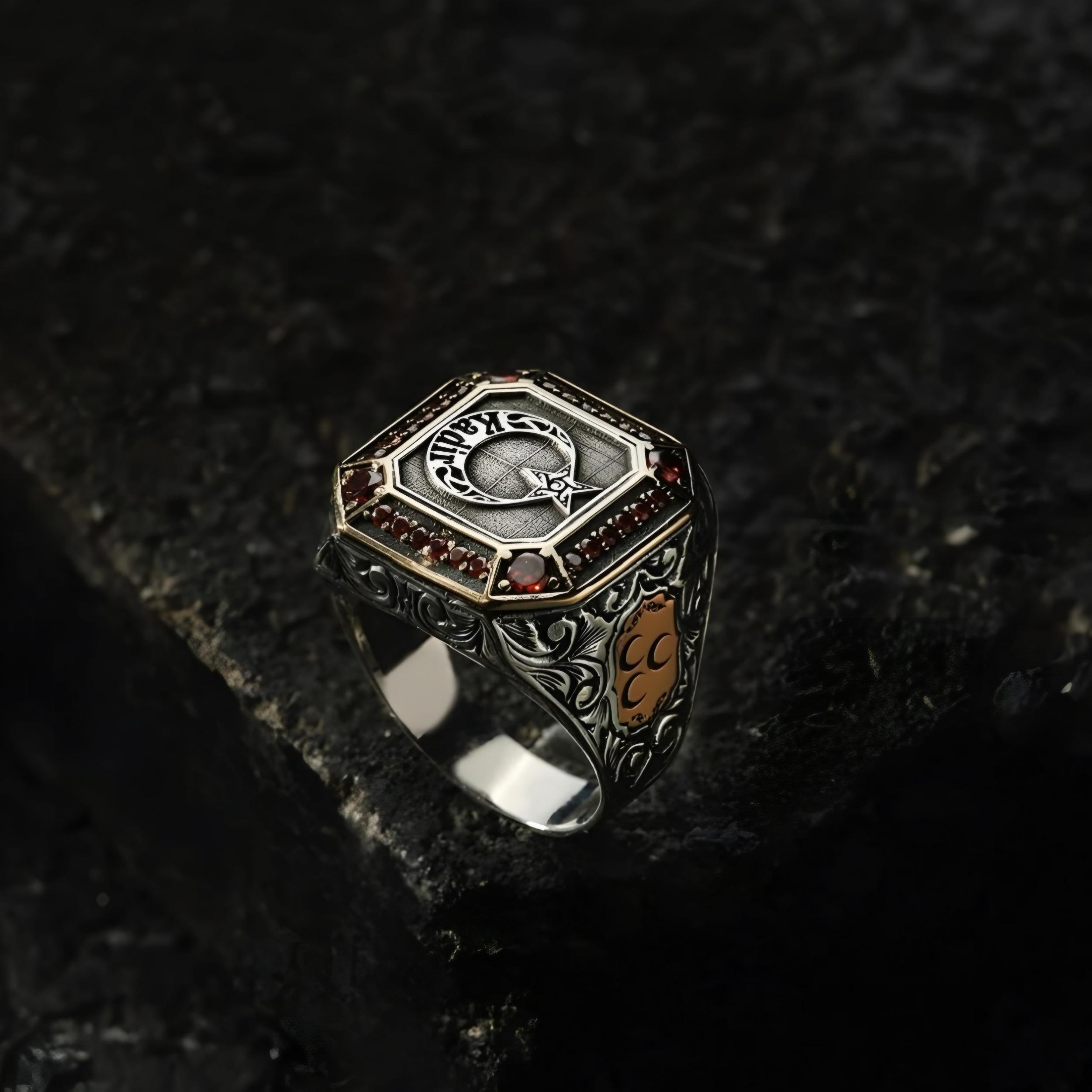A special gift necklace with your name engraved between the moon and star, featuring Turkish and Ottoman motifs with red zircon details and flawless handcrafted workmanship.