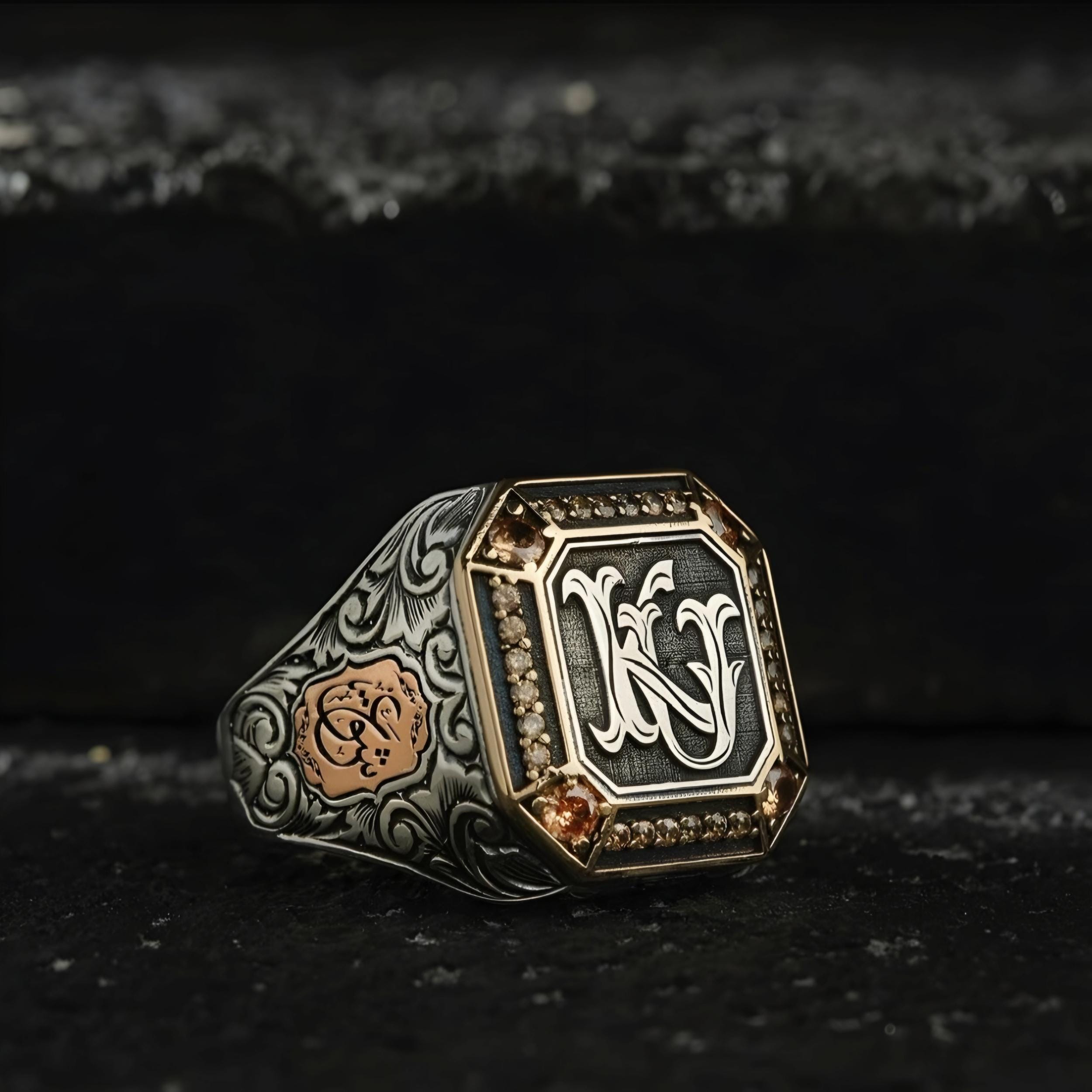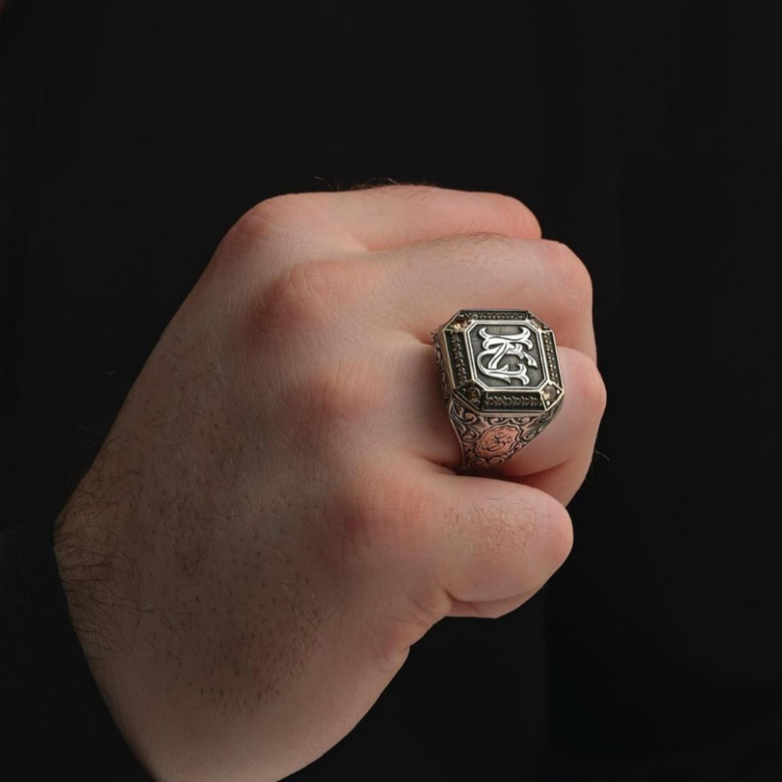 925 sterling silver double letter personalised handcrafted silver ring