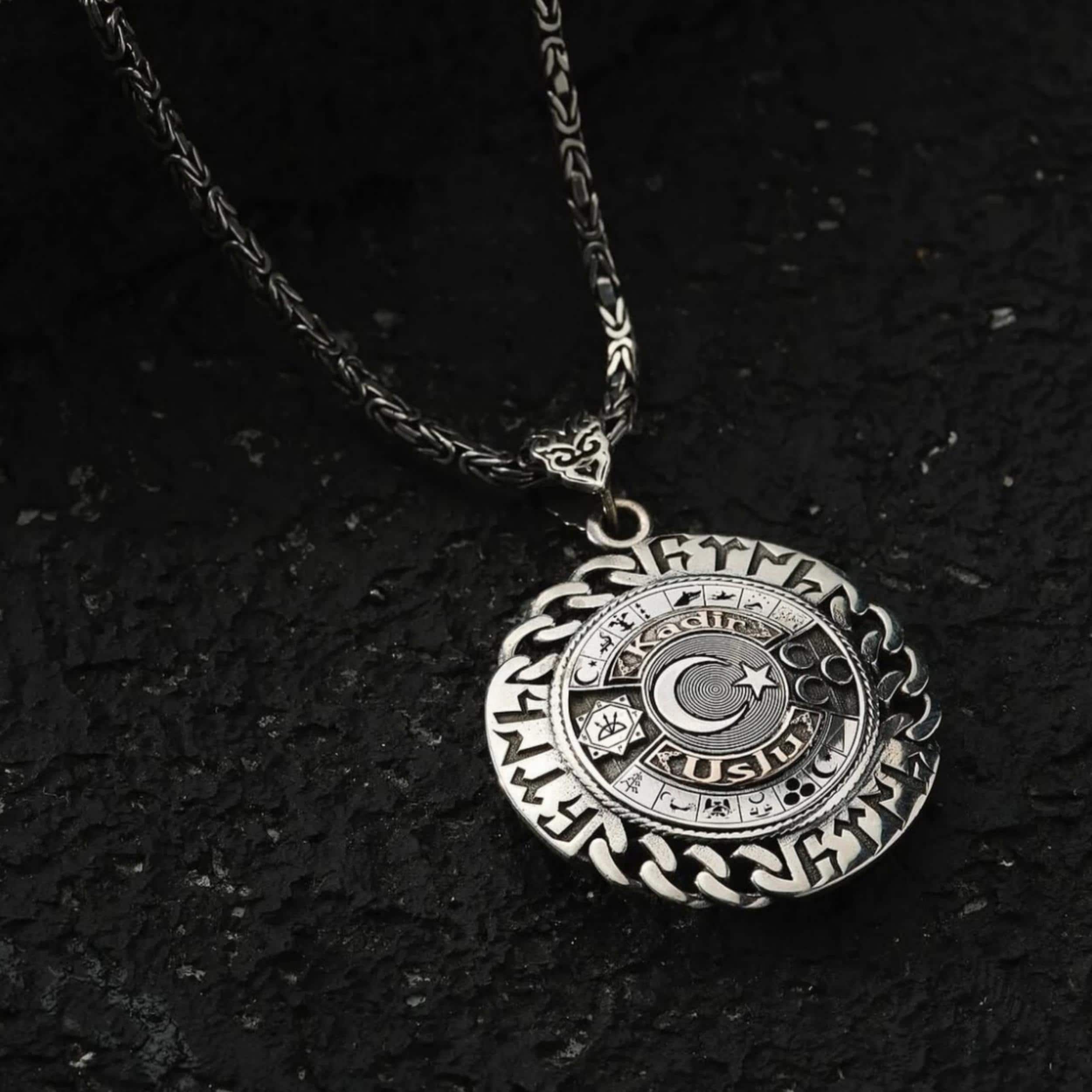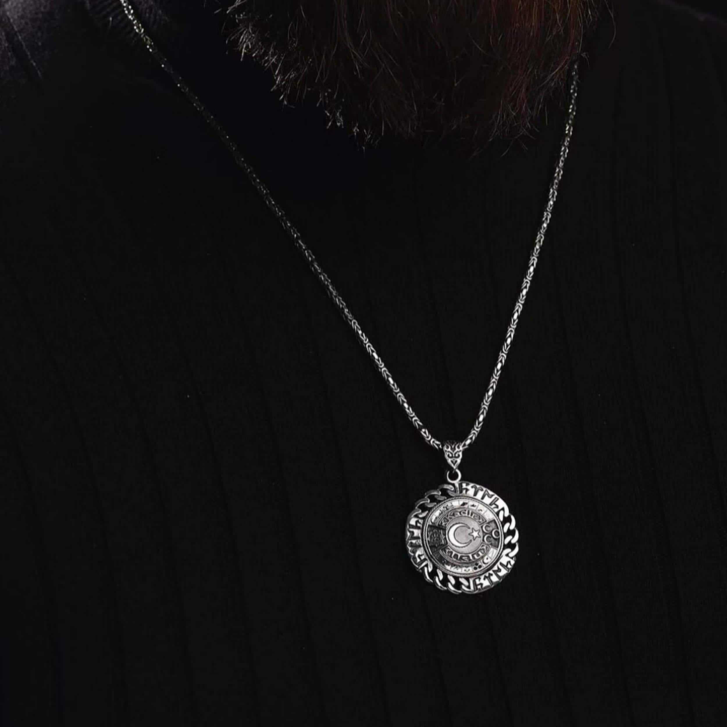 This handcrafted 925 sterling silver double-sided medallion necklace is a masterpiece inspired by Turkish heritage, warrior spirit, and ancient cultural symbols. Every detail reflects pride, identity, and strength — making this pendant not just a piece of jewelry, but a legacy.