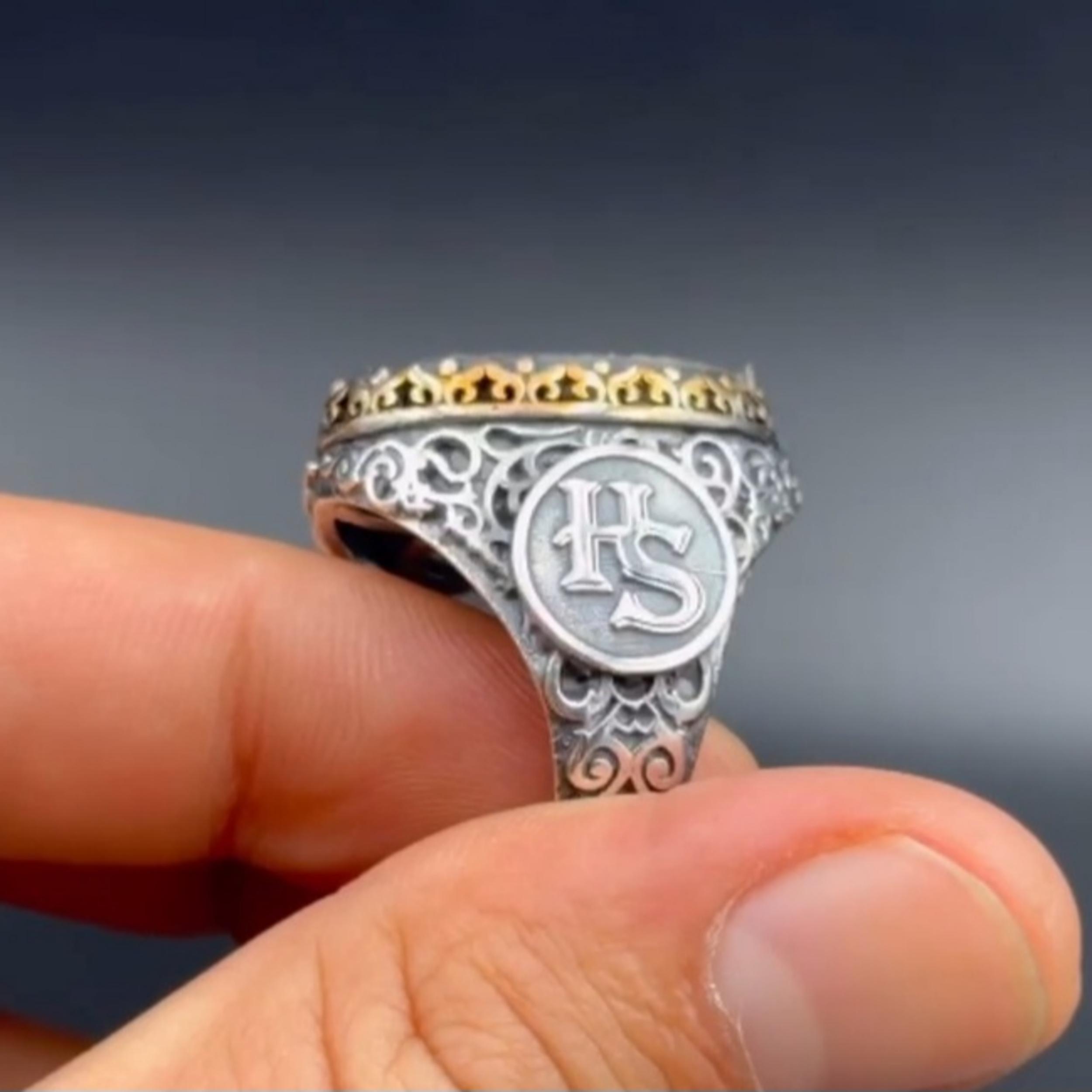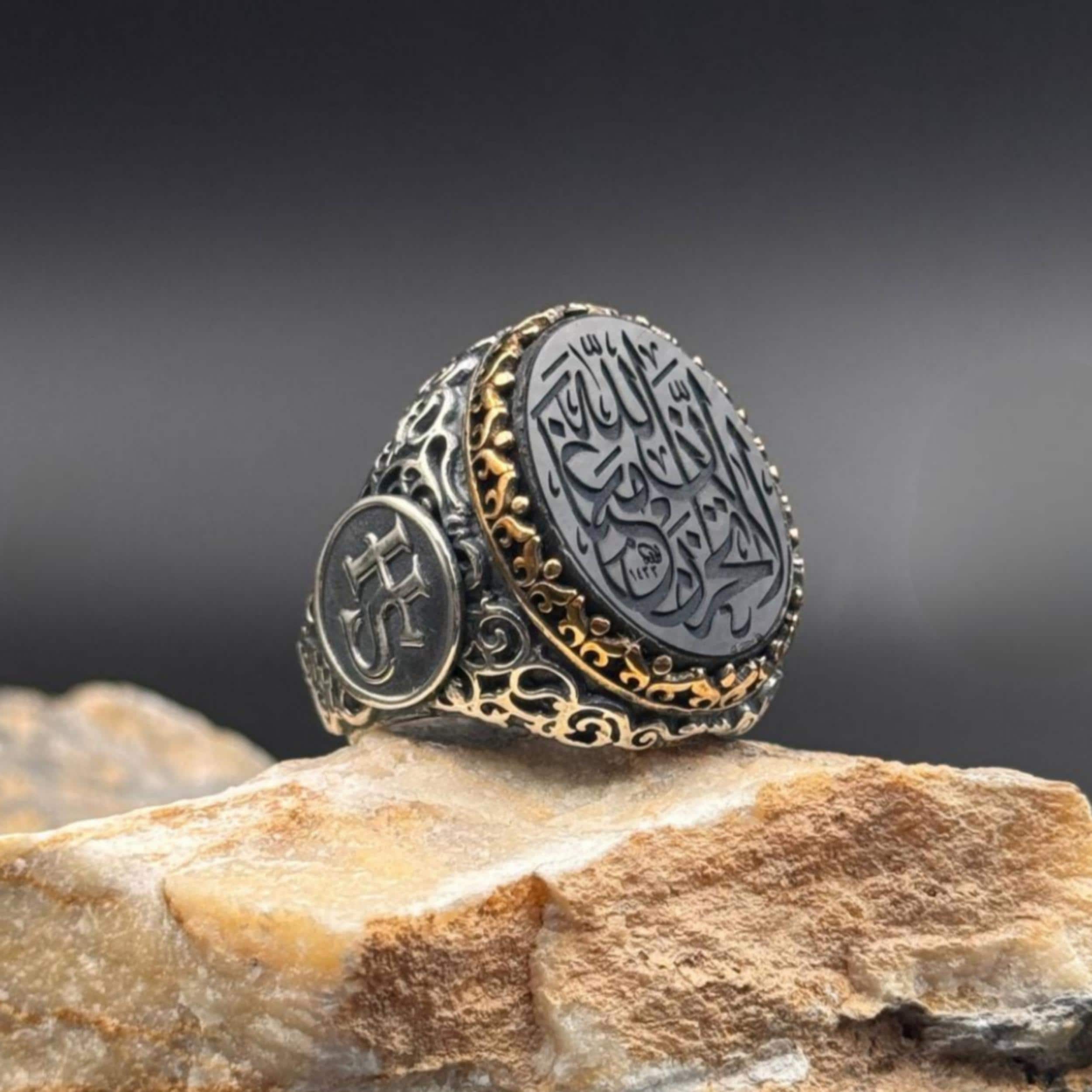The sides of the ring are engraved with your personalized initials, making it a uniquely yours piece. On the opposite side, the timeless phrase “Death is enough as an advisor” is inscribed—an ancient reminder of wisdom, discipline, and the deeper truth of life.