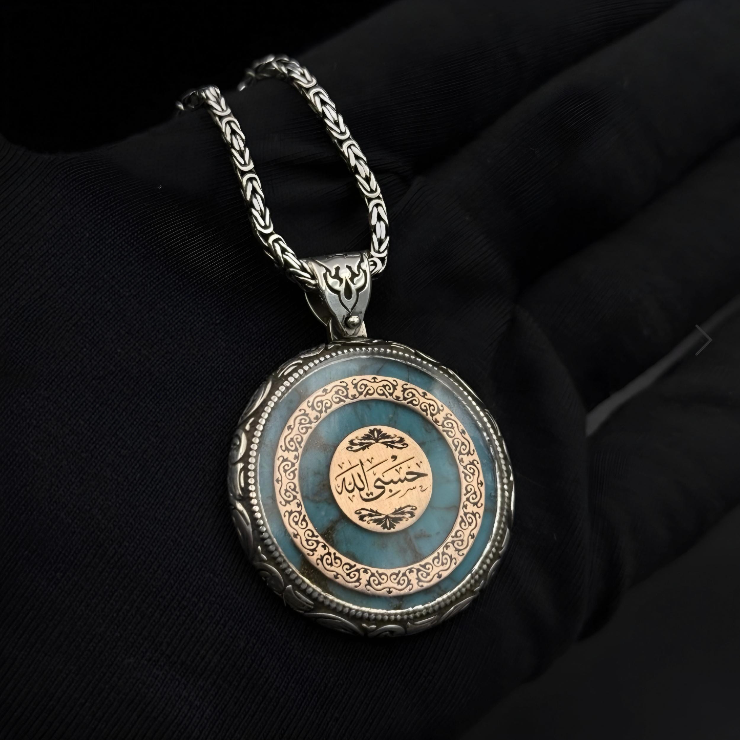 Crafted with care by master artisans in Konya, the capital of the Seljuks and the city of Mevlana Rumi, this special necklace offers both spiritual depth and artistic weight. Bearing the powerful message of the verse Hasbiyallah (Allah is sufficient for me), this unique piece of jewelry is a legacy that will be treasured for years to come thanks to its quality and craftsmanship.