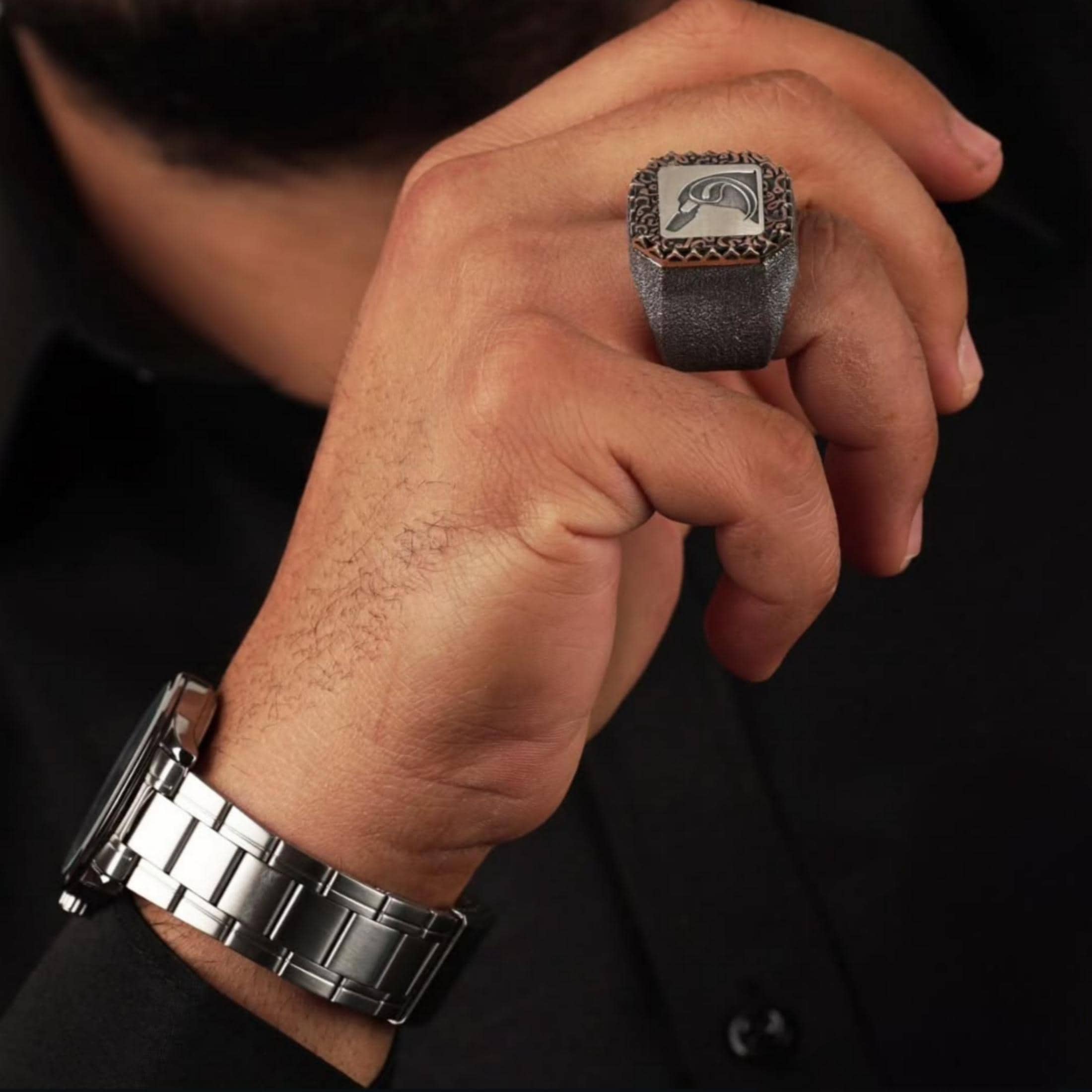 Craftsmanship: The body of the ring is specially crafted using the Hammered or Oxidized Matte Black silver technique, giving it a rough and authentic look.