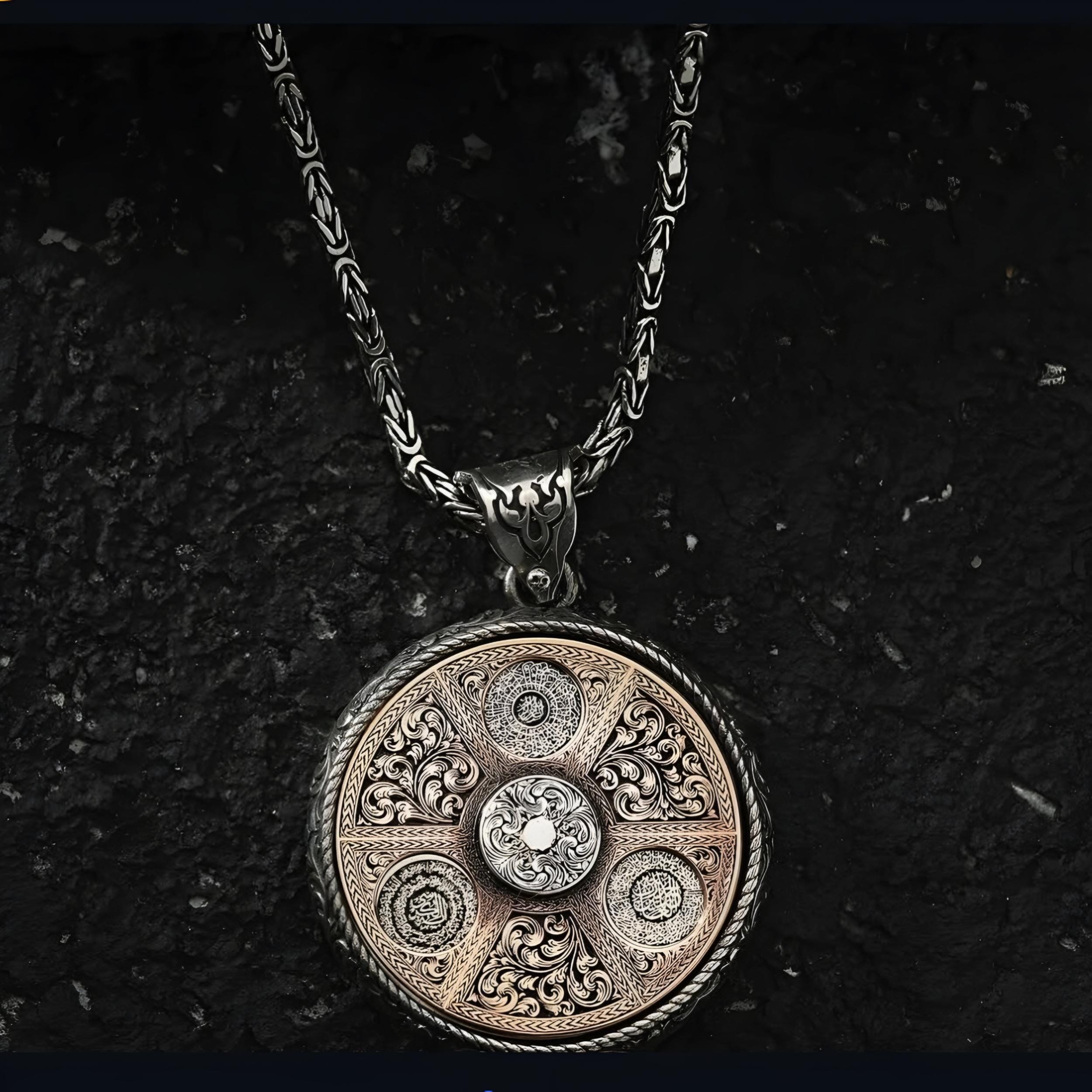 Rotating Mechanism: The medallion's rotating structure provides an aesthetic appearance and enhances the feeling of carrying sacred texts inside.