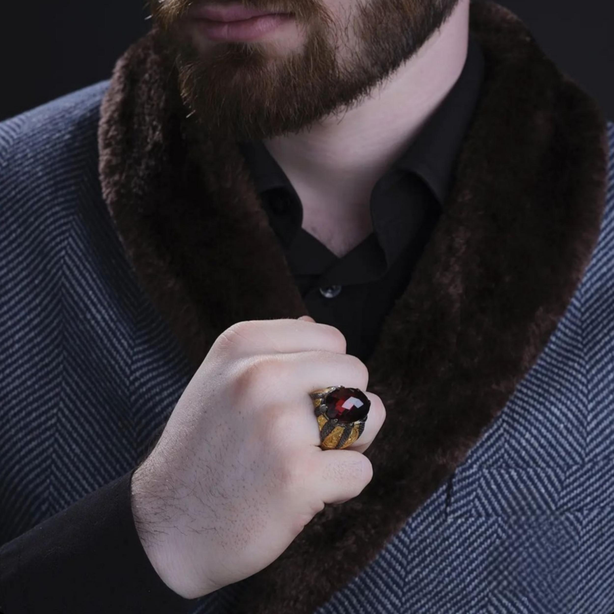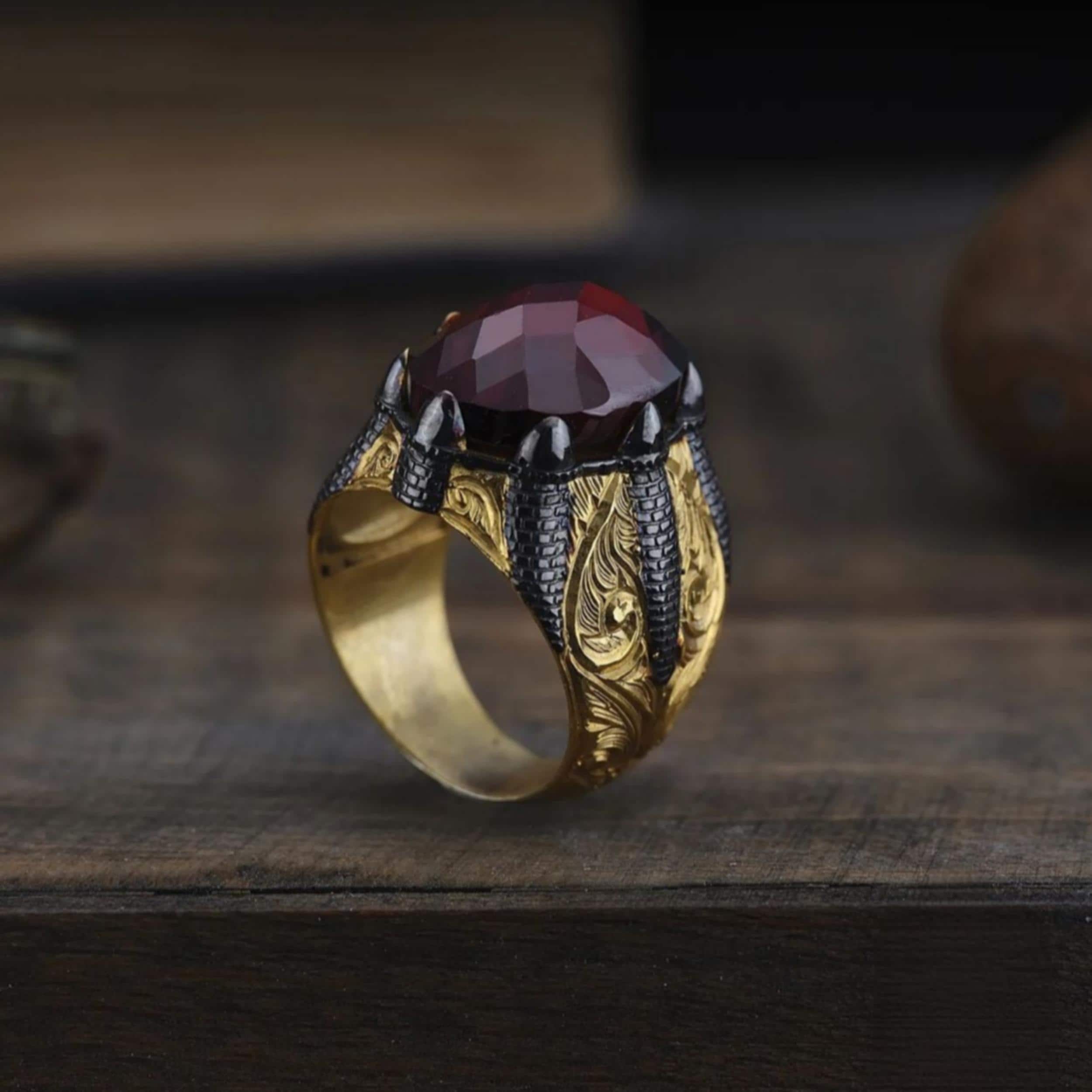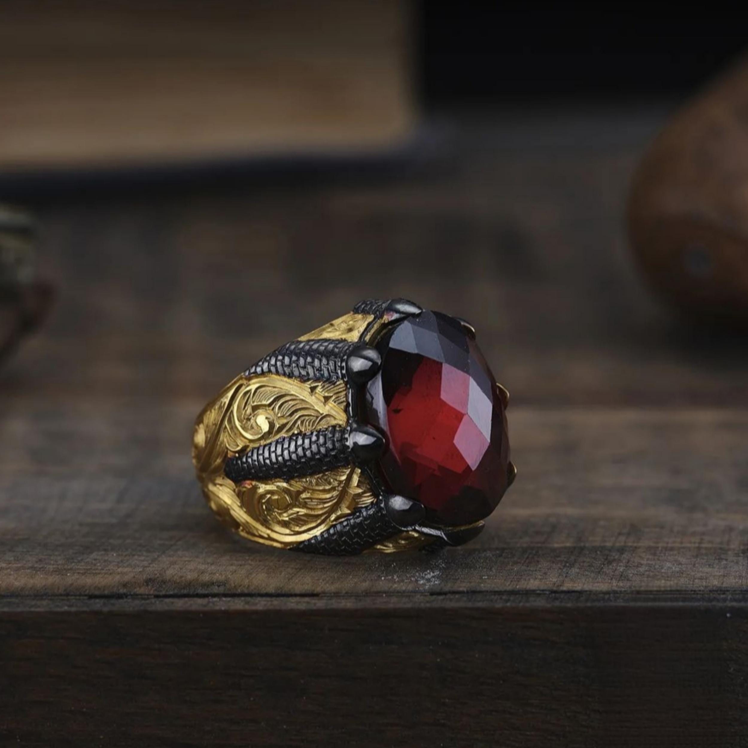 This handcrafted men’s ring is designed in a powerful claw setting, symbolizing strength, courage, and dominance.