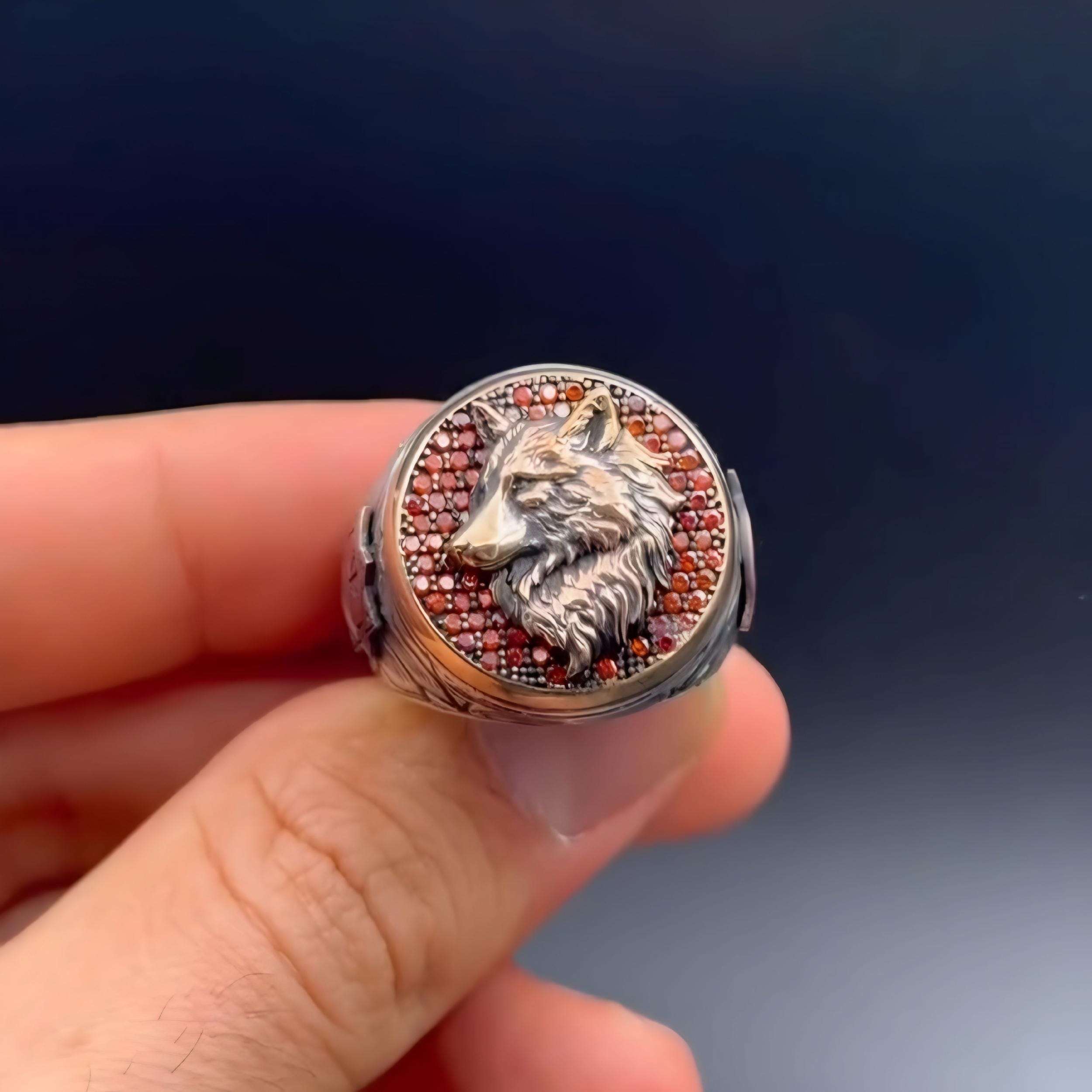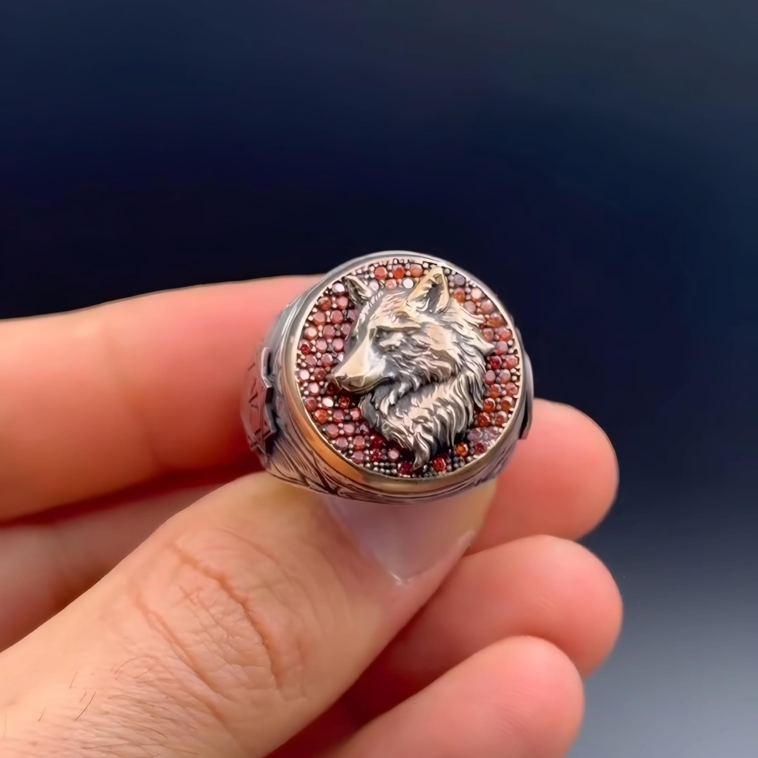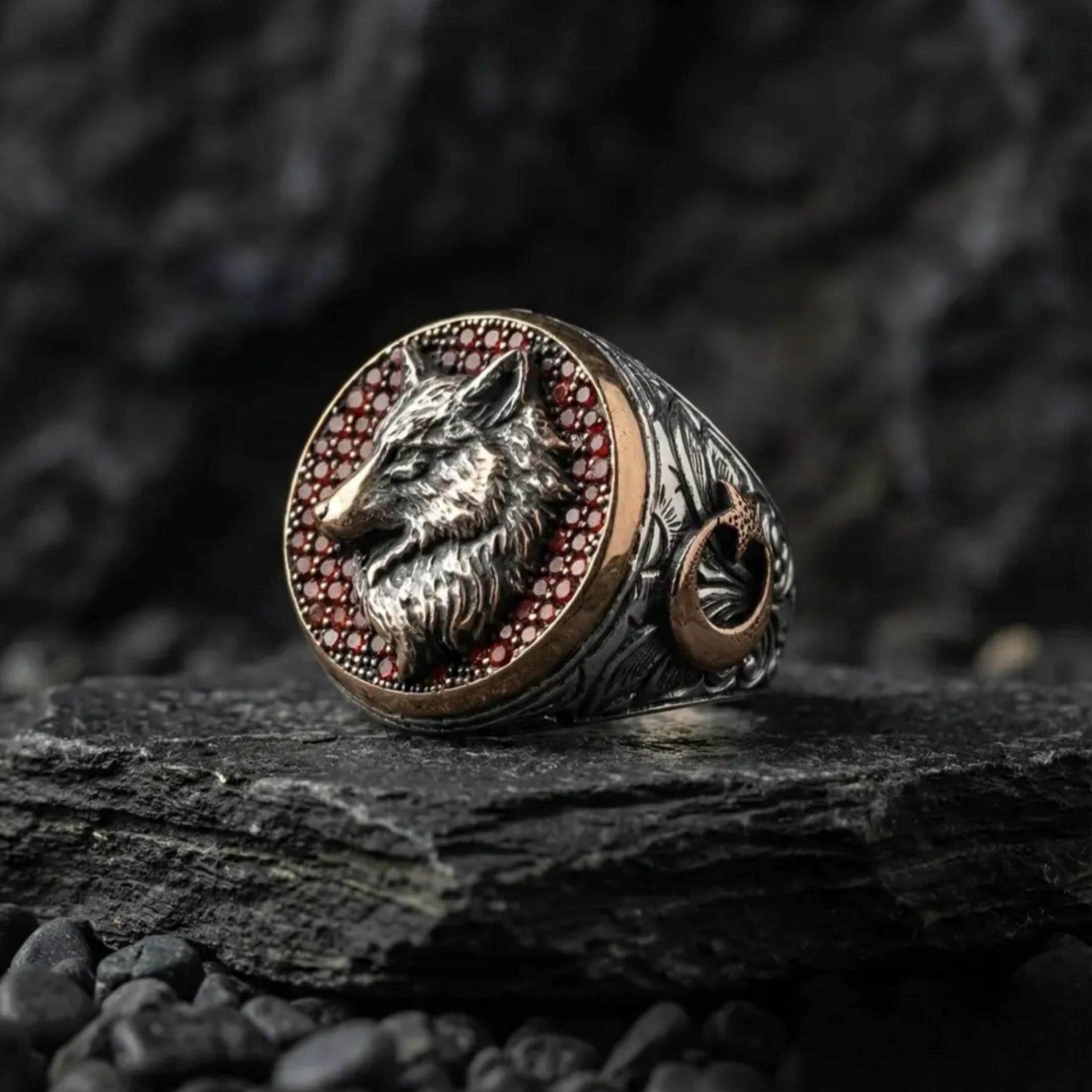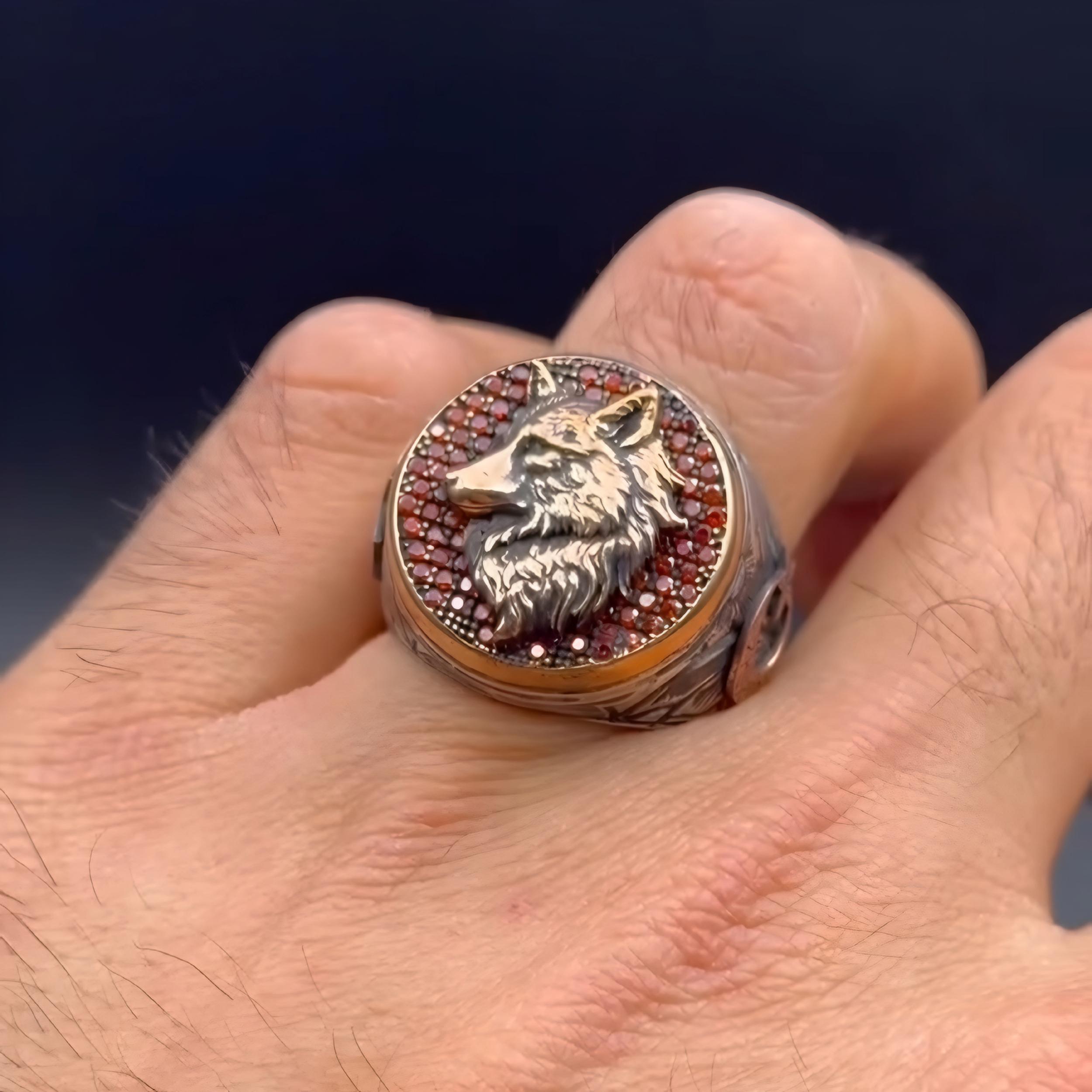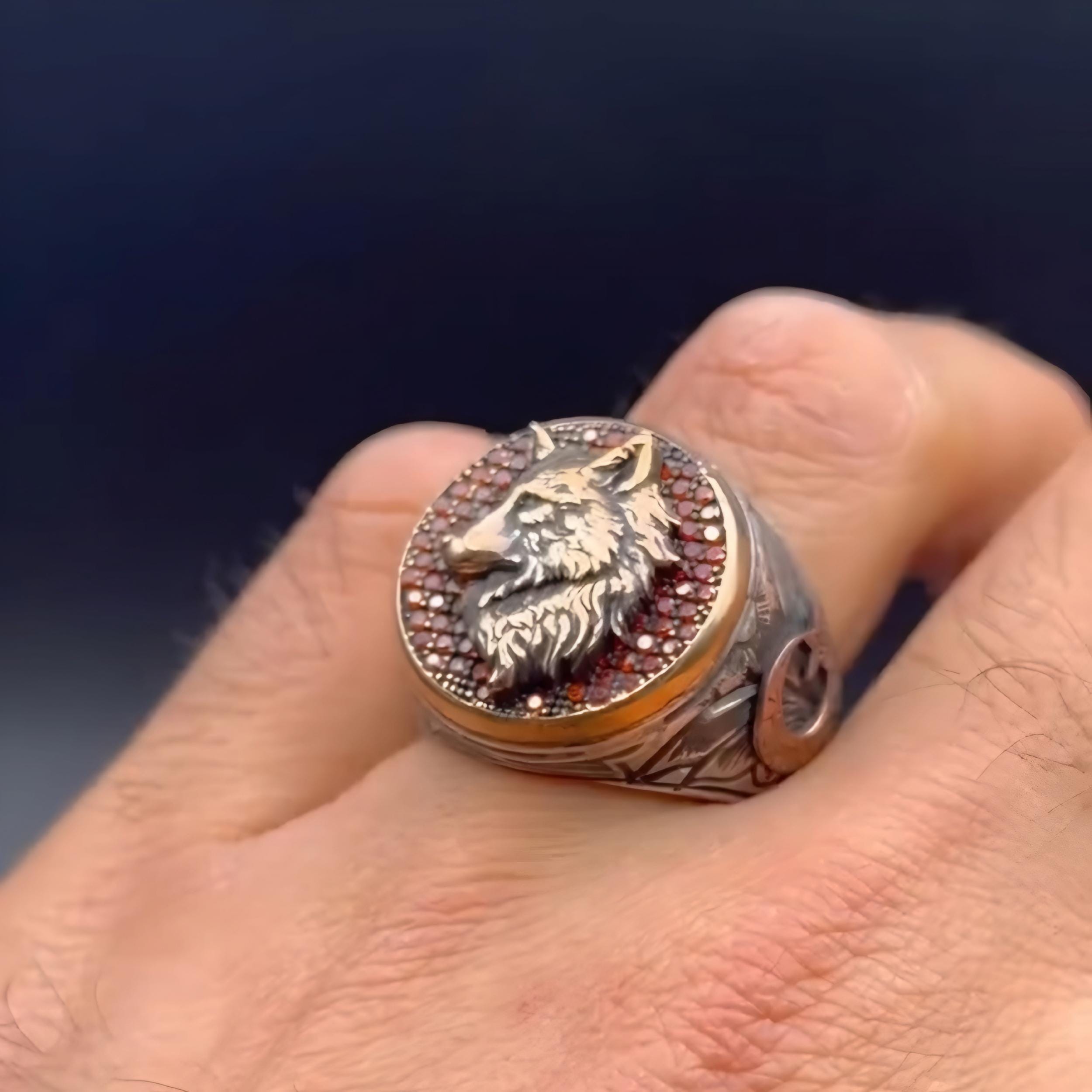 This powerful men’s ring is crafted from solid 925 sterling silver and features a striking wolf figure engraved over a micro garnet stone, symbolizing courage, leadership, and independence in Turkish mythology.
