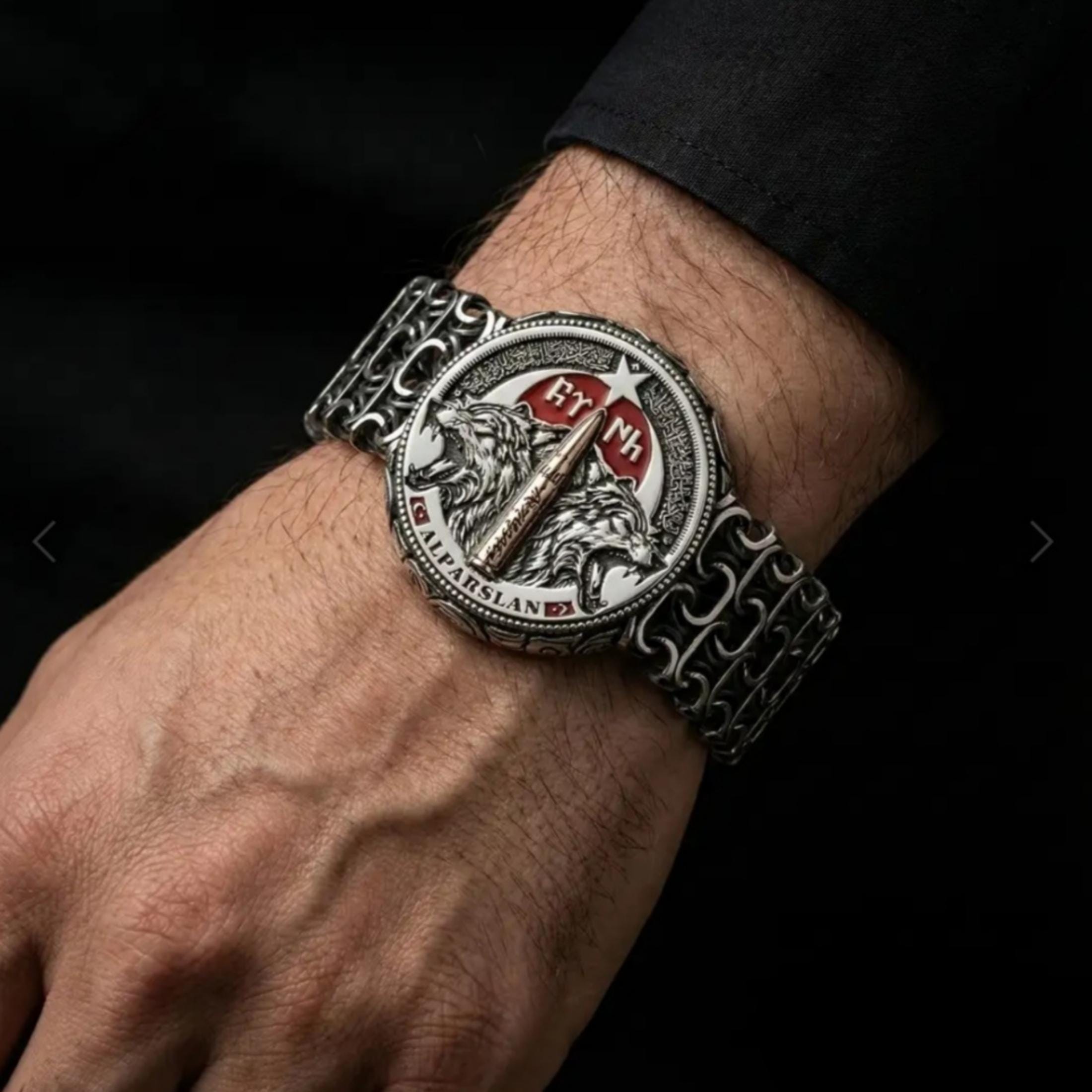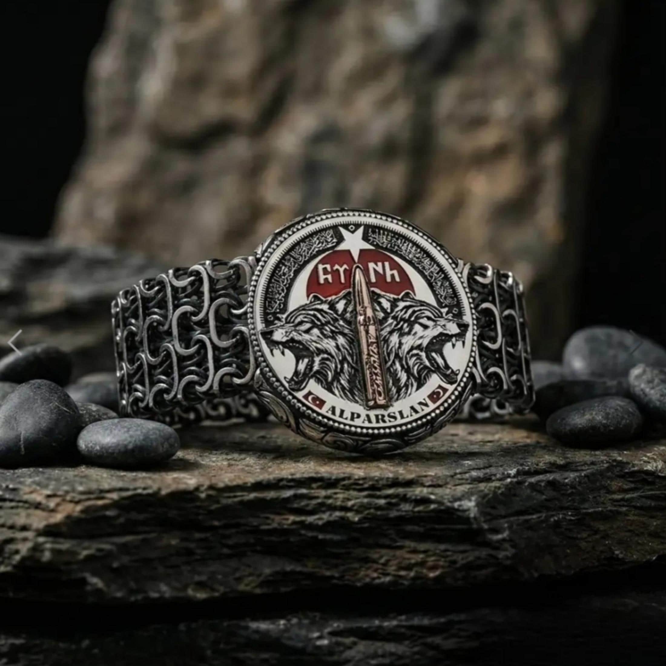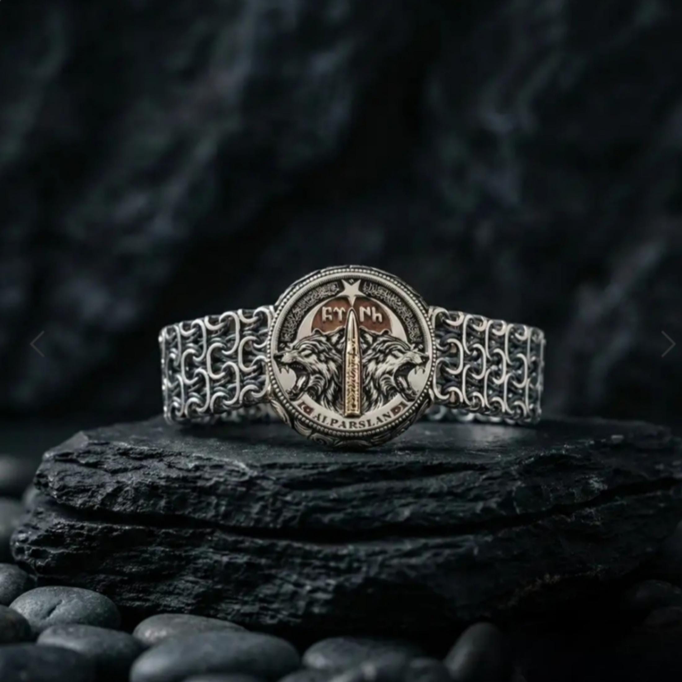 The Three Crescents and the Seal of Oğuz Khan on the right and left sides of the bracelet carry the deep heritage of Turkish-Islamic culture. Every line of this bracelet represents a connection to history, spirit, and nation.