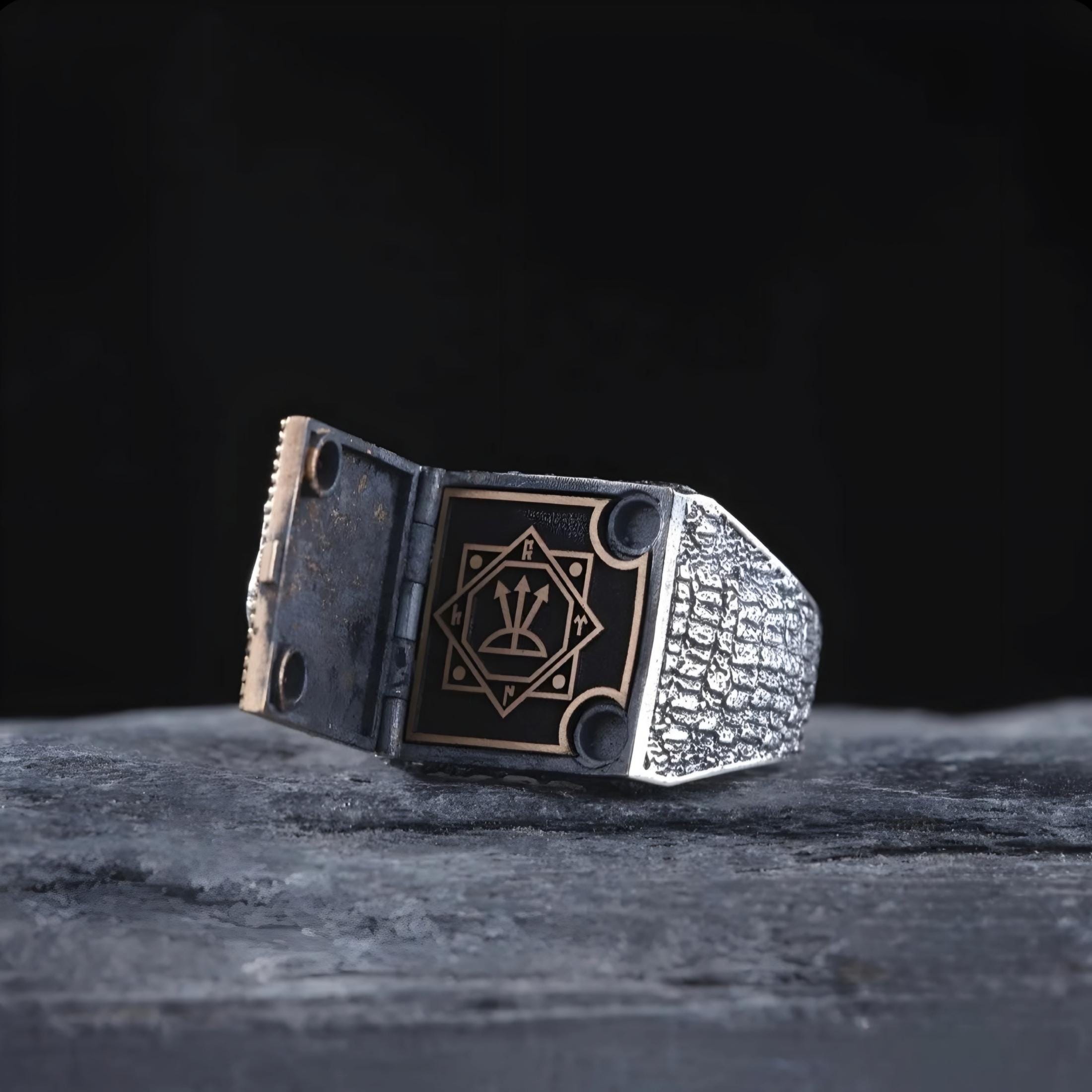 Hand-crafted from 925 sterling silver, this unique piece blends traditional artistry with modern masculine elegance.