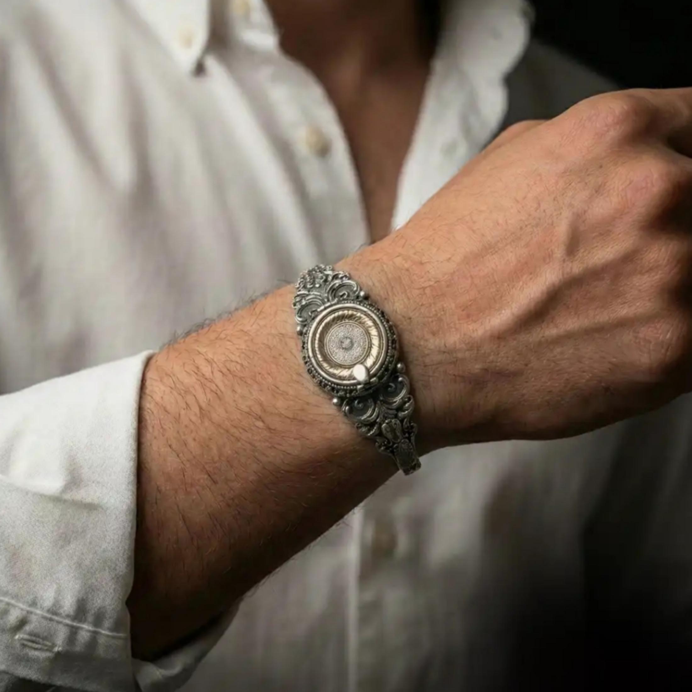 Hand-Woven Band: The bracelet features a sturdy, traditional woven silver chain (Kazaz/Tulip style) that ensures both comfort and durability for daily wear.
