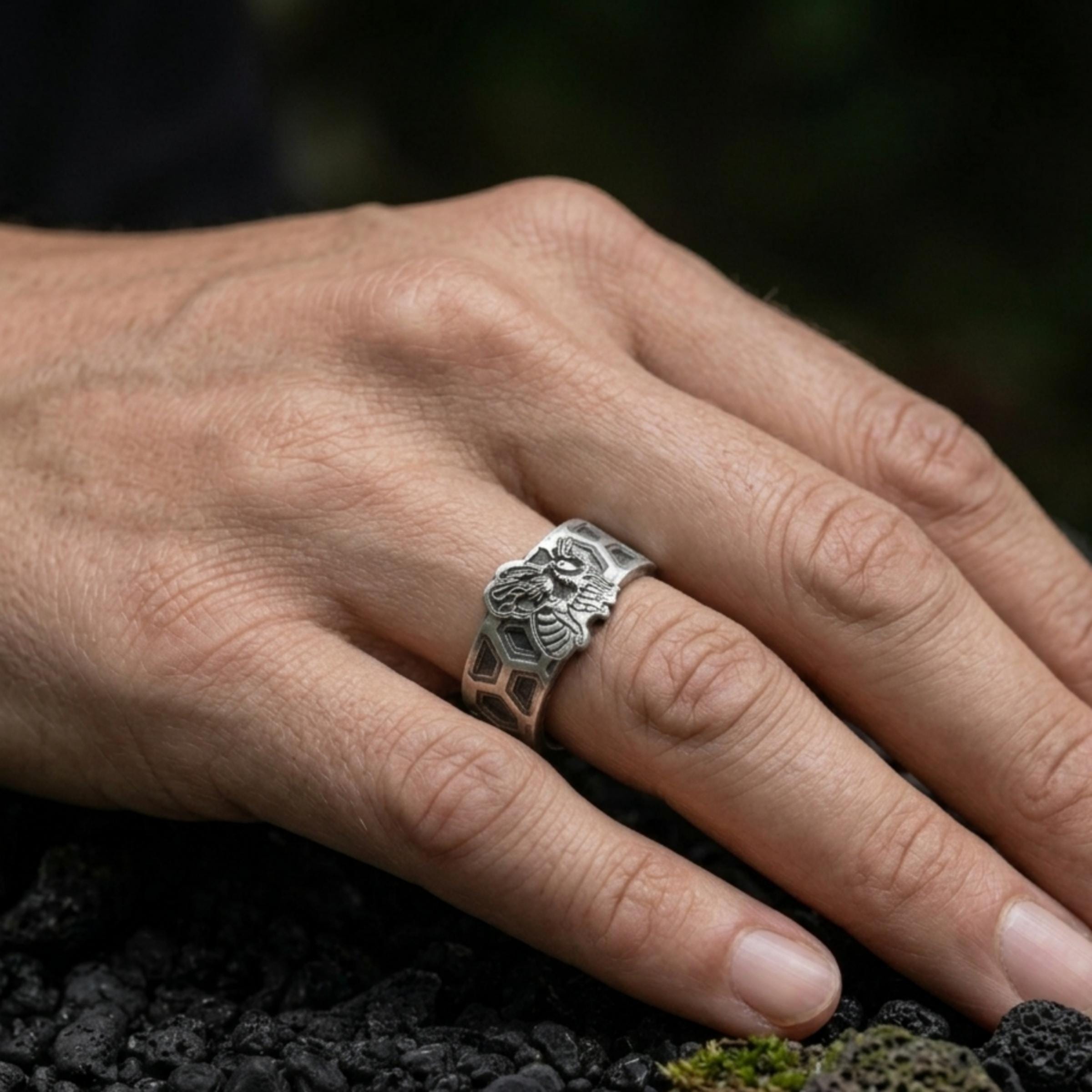 Designed with a detailed bee motif and honeycomb pattern, this ring creates a bold yet elegant look for both women and men. Its unisex style makes it perfect for everyday wear, stacking, gifting, or keeping as a personal talisman for luck, abundance, and positive energy.