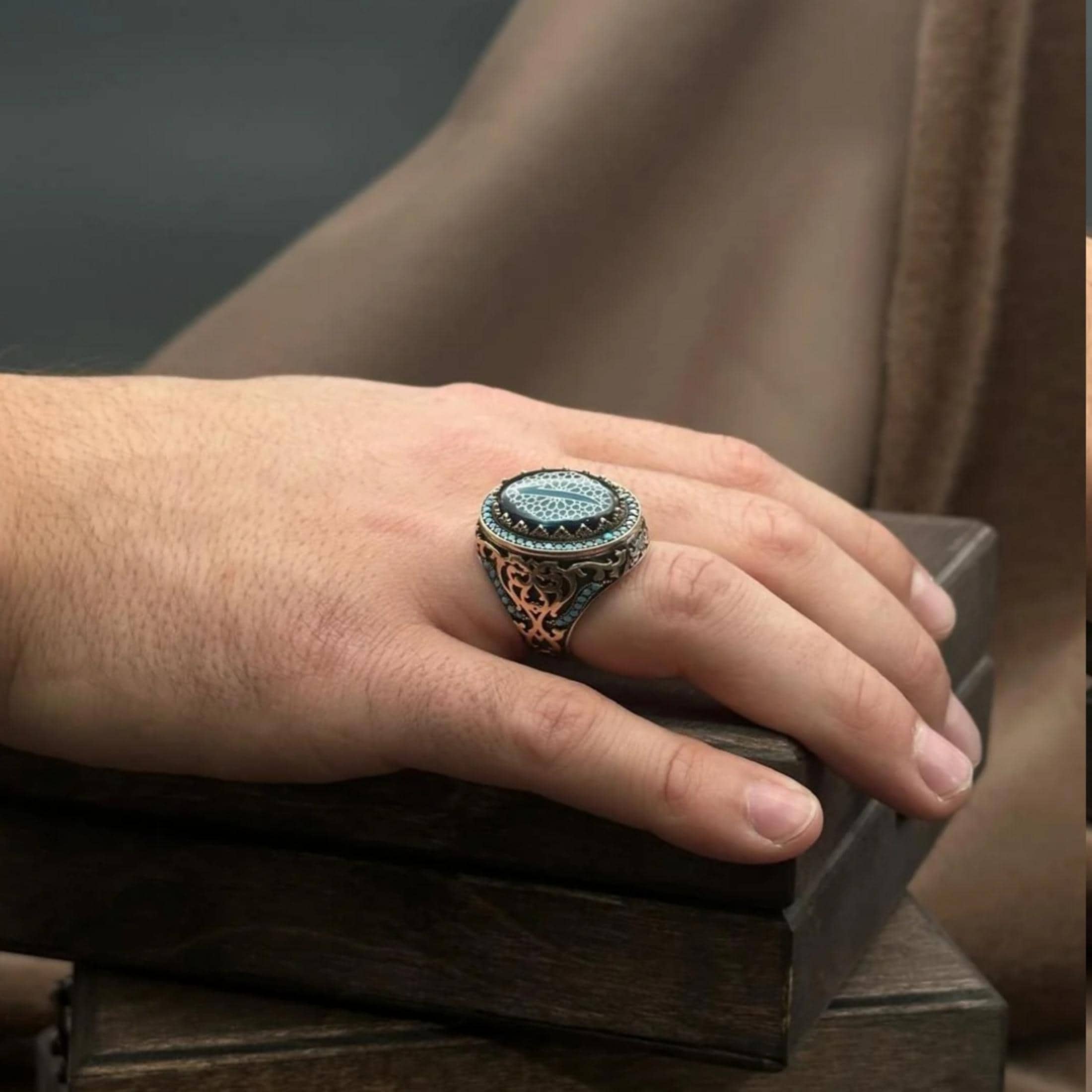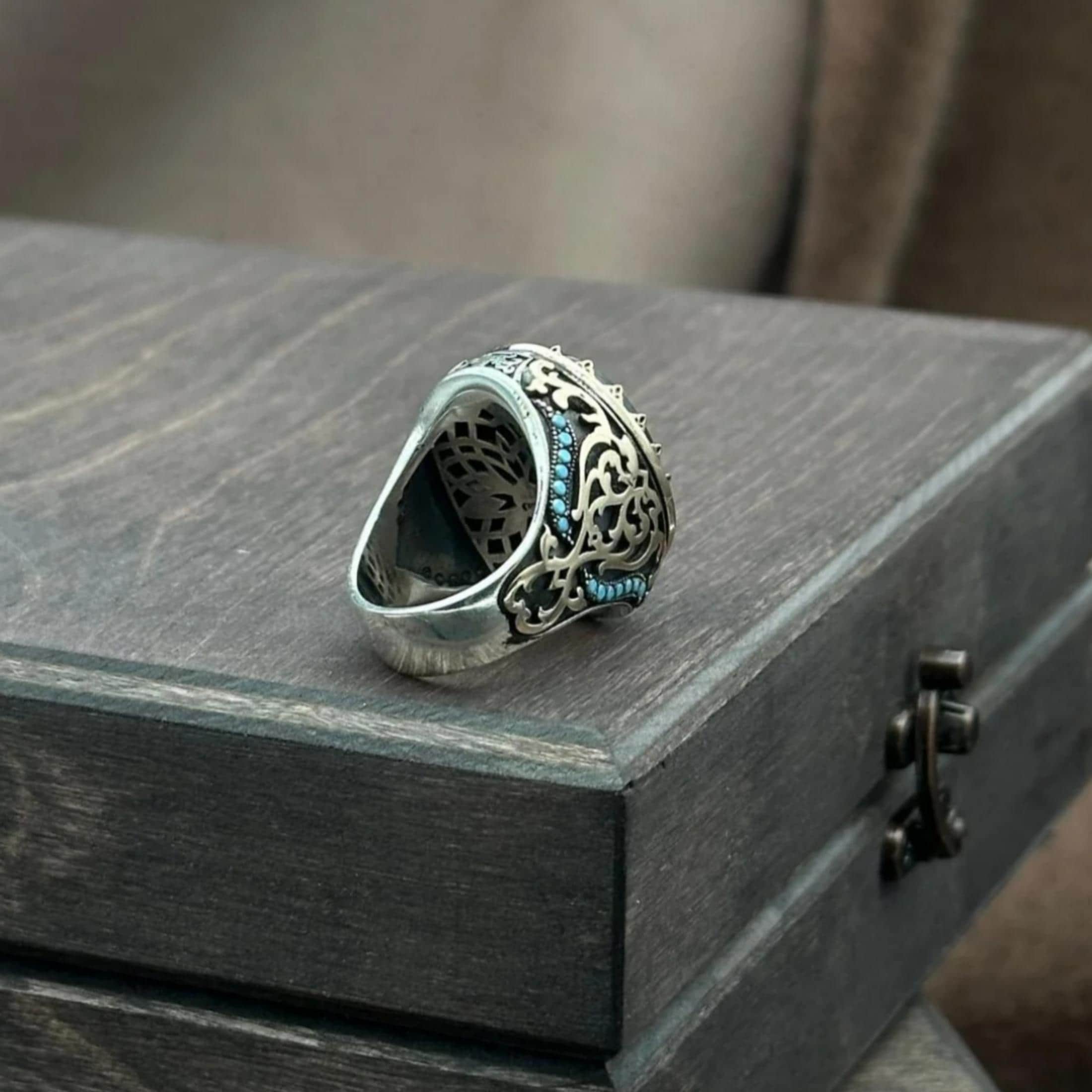 Enriched with Ottoman motifs, this ring is designed for both men who value cultural heritage and those looking for a remarkable, meaningful and charismatic piece of jewelry.