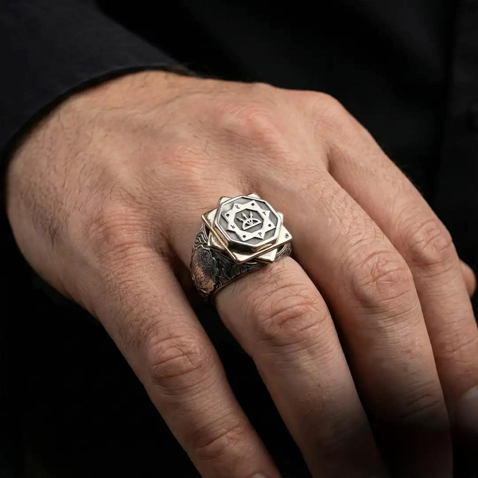 Bold and symbolic men’s statement ring
