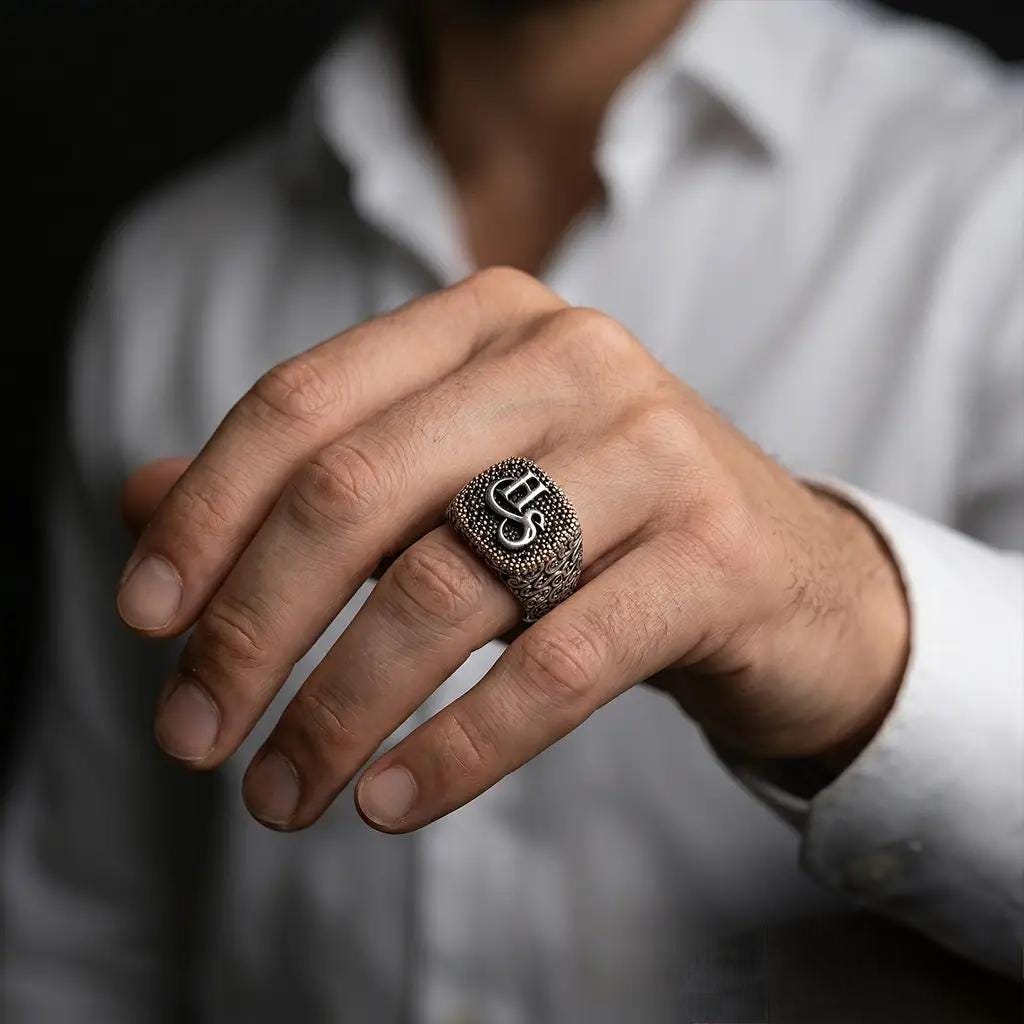 Whether you choose it as a meaningful gift or a signature piece for yourself, this ring turns a single letter into a powerful symbol. It is ideal for men who appreciate personalized jewelry with character, depth, and lasting value.