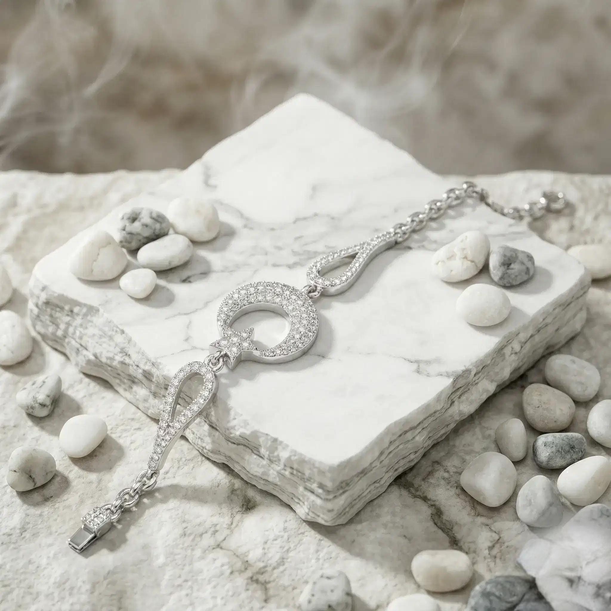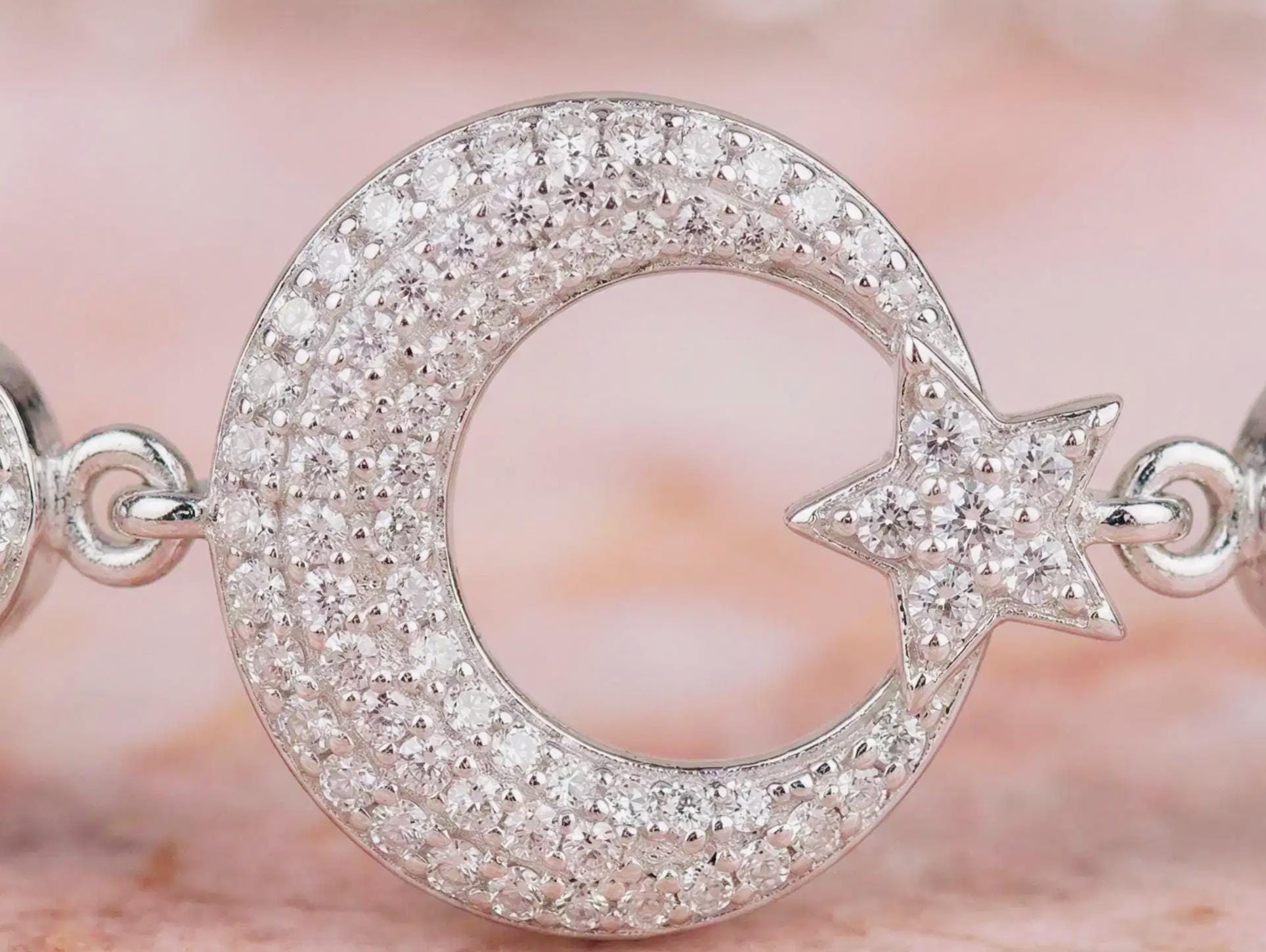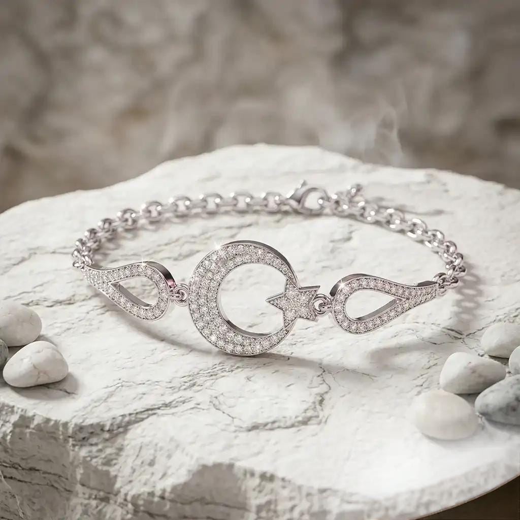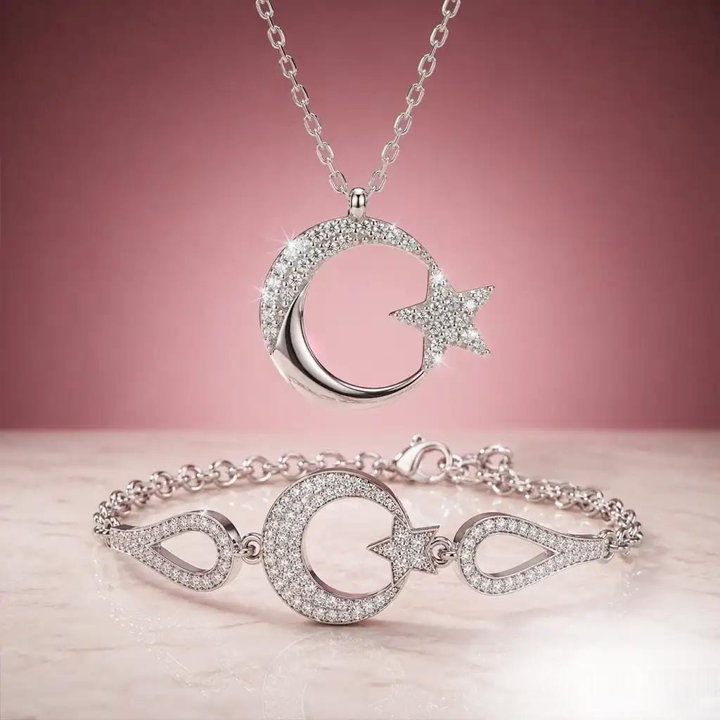Celebrate elegance and national pride with this 925 sterling silver Moon Star necklace and bracelet set. Designed with sparkling stones and a lightweight 6.27 gram feel, this meaningful jewelry set is perfect for daily wear or special occasions.
