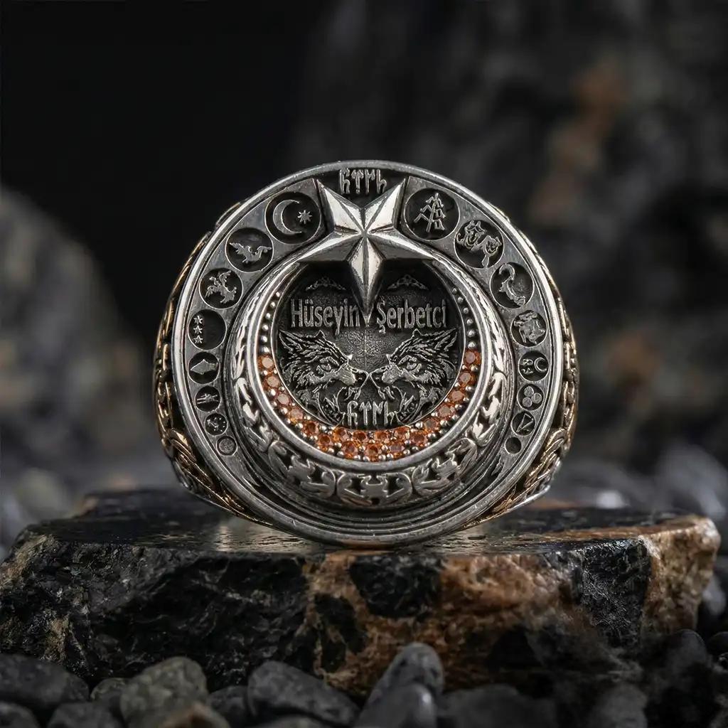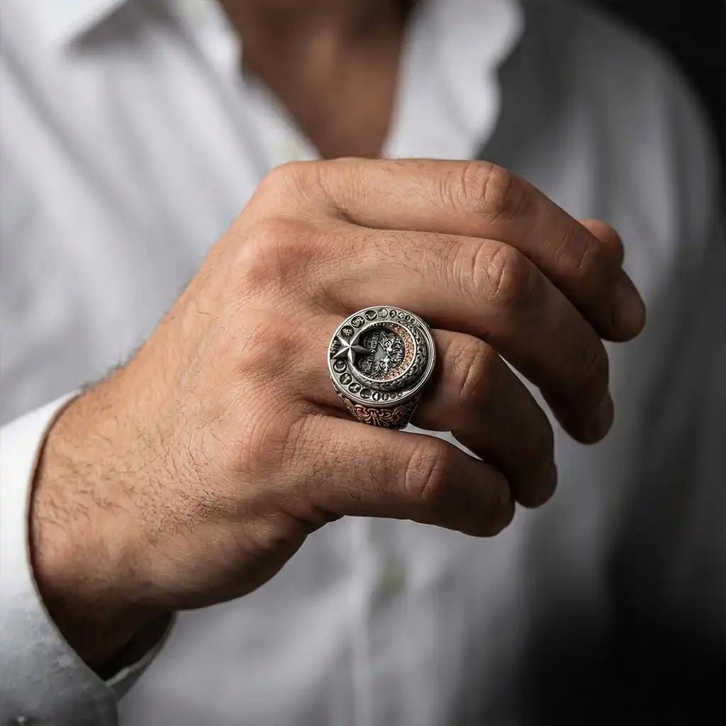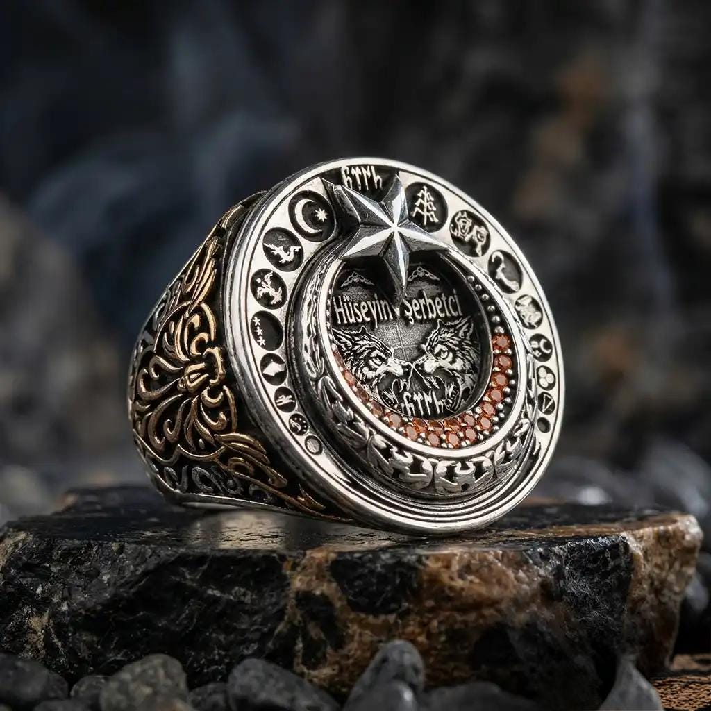 Perfect for men who love Turkish-inspired jewelry, symbolic rings, warrior-style designs, wolf motifs, crescent star details, and personalized accessories.